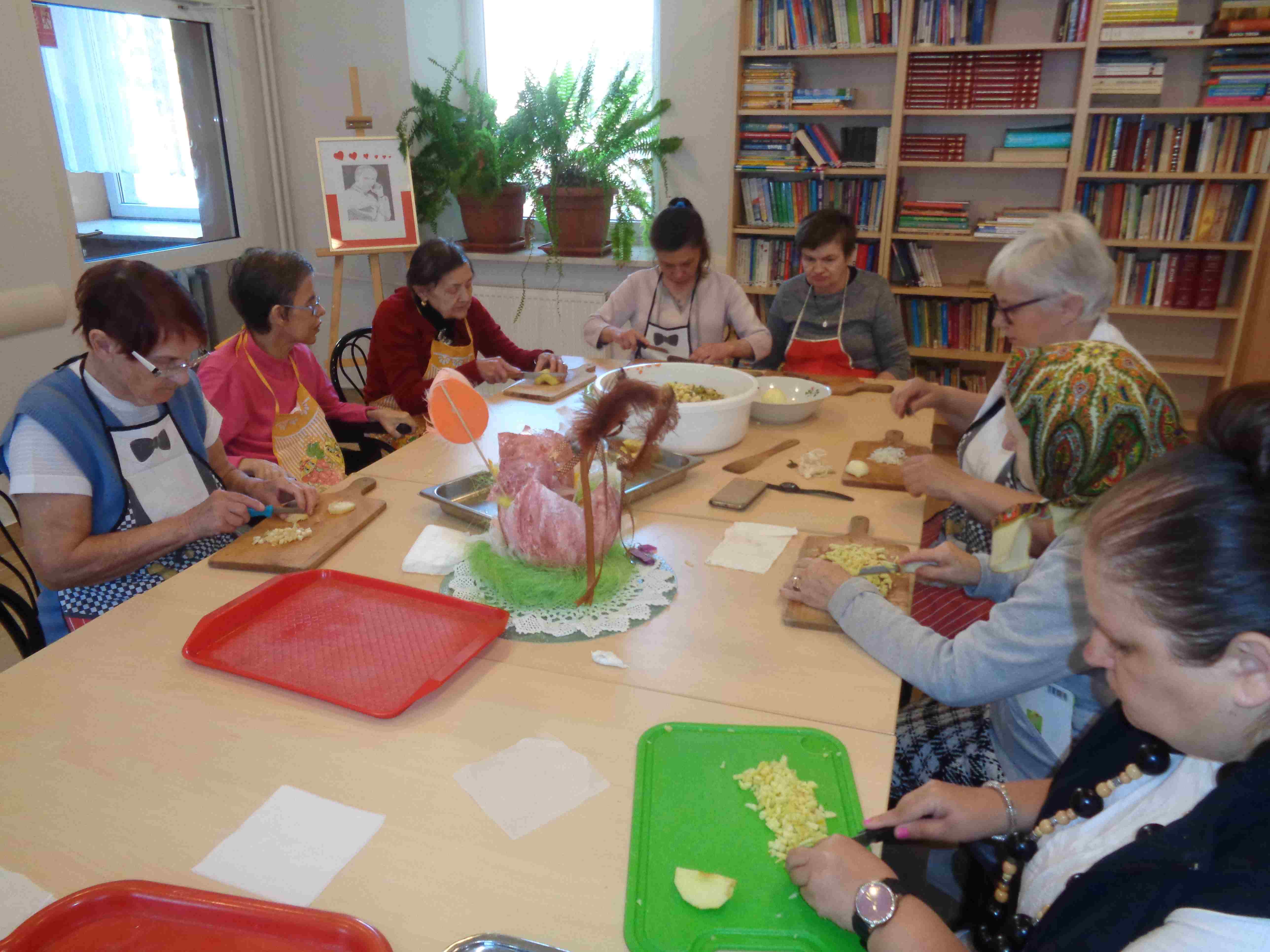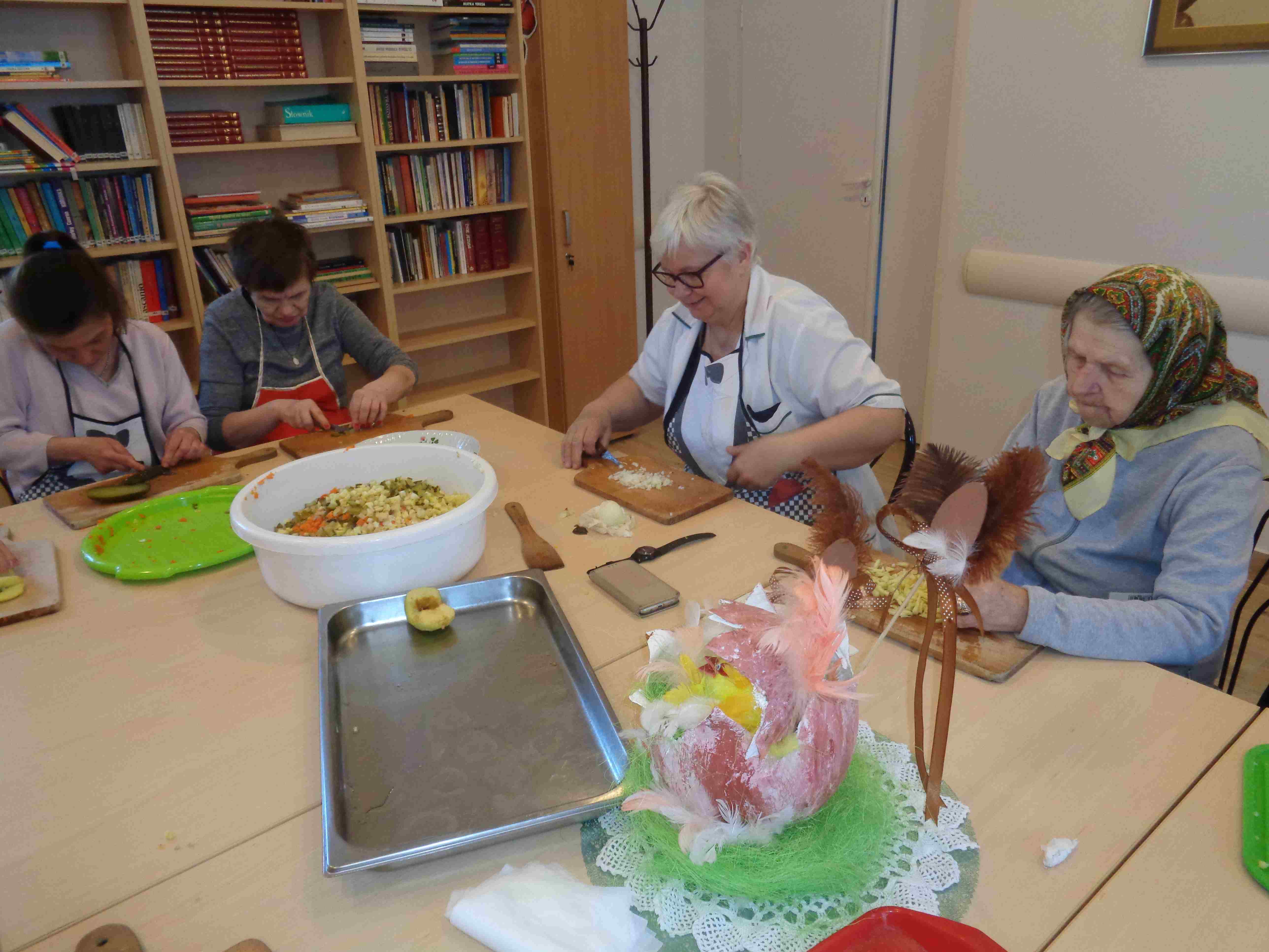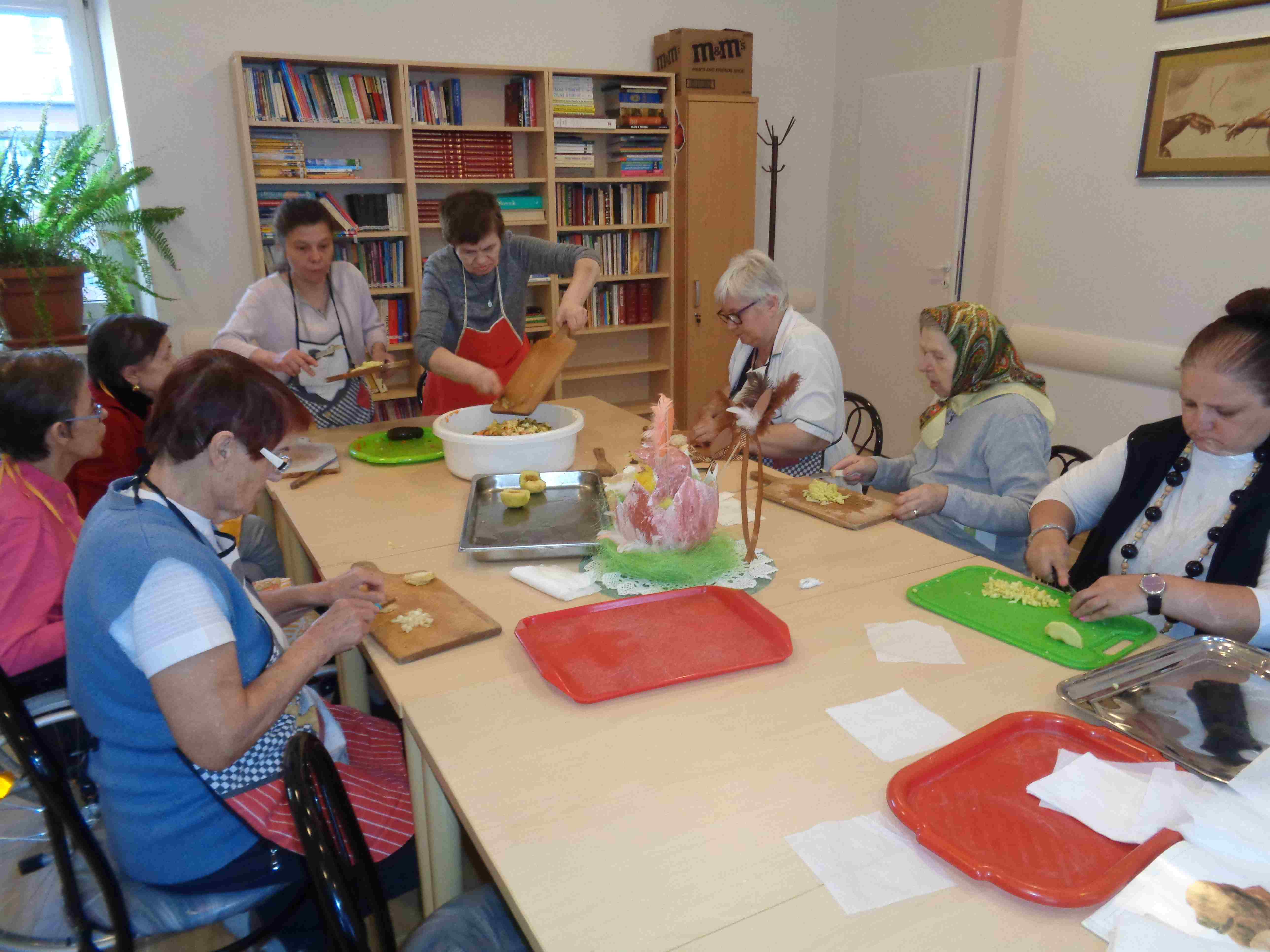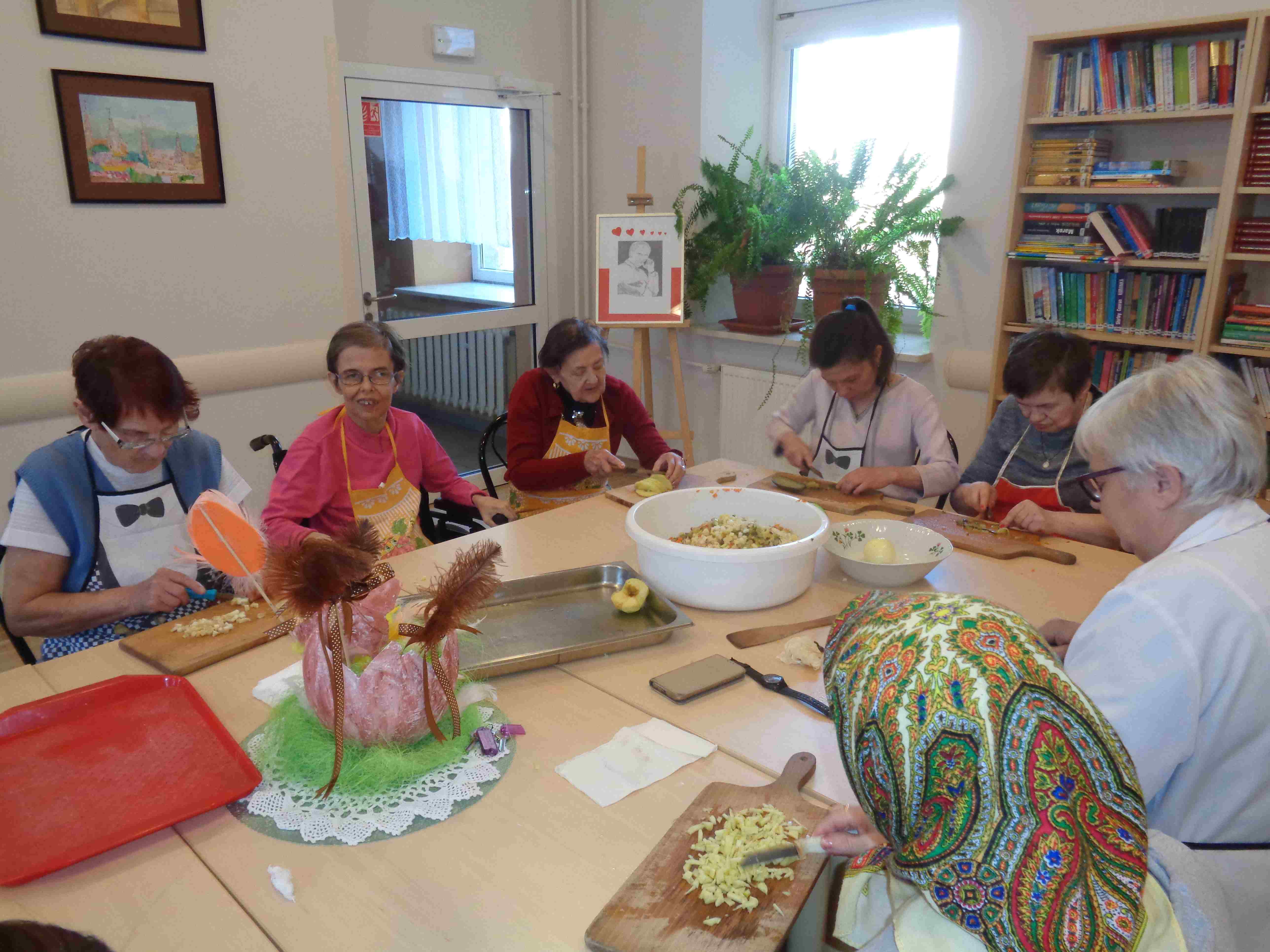 Zajęcia kulinarne w kwietniu 24 kwietnia, 2019 Mieszkanki w ramach zajęć kulinarnych przygotowują m.in. sałatkę jarzynową. ← 23.04.2019 Zajęcia integracyjno-edukacyjne w Ośrodku Myśli Patriotycznej i Obywatelskiej 25.04.2019 Recital pani Zofii Dulęby →