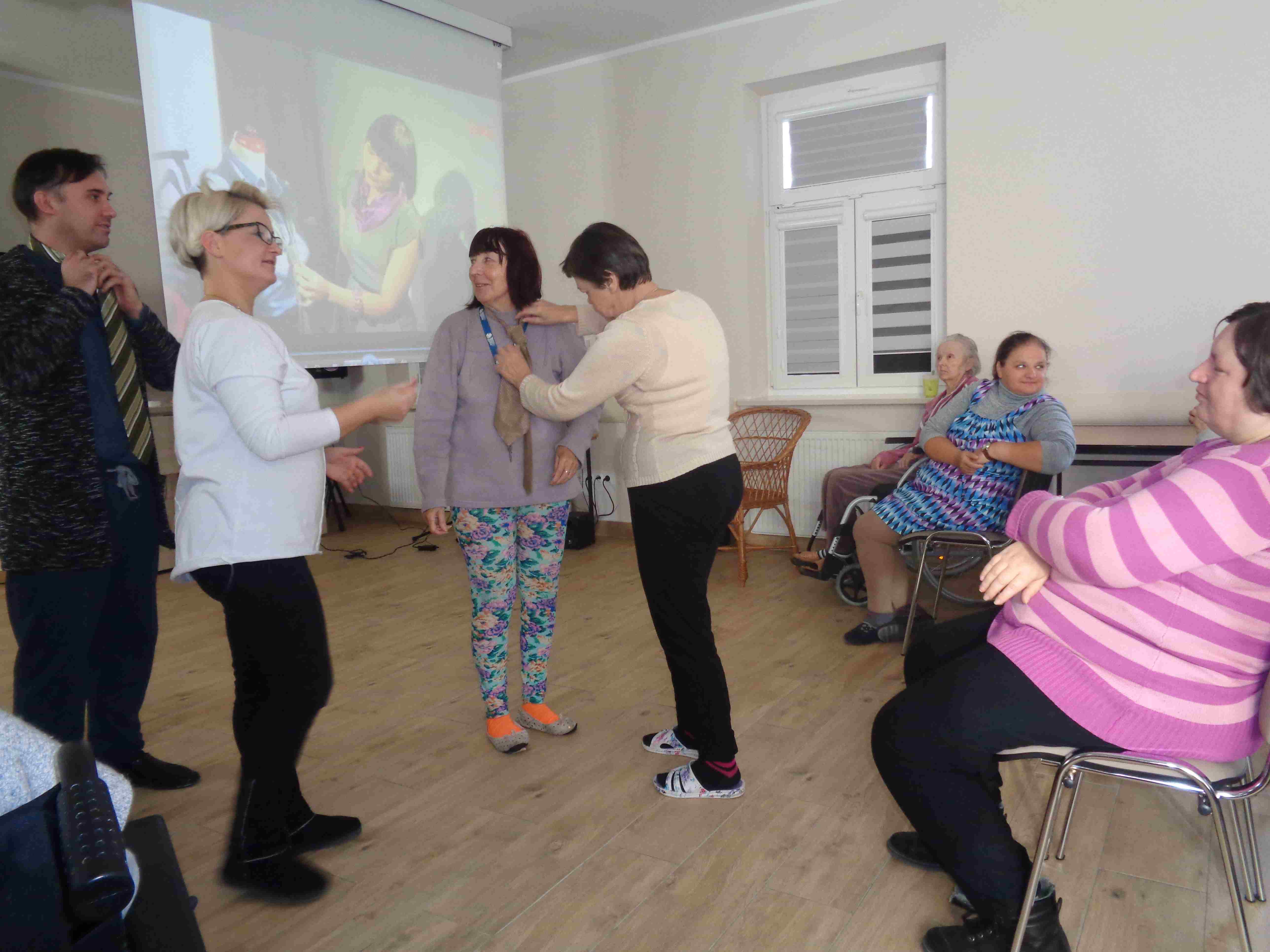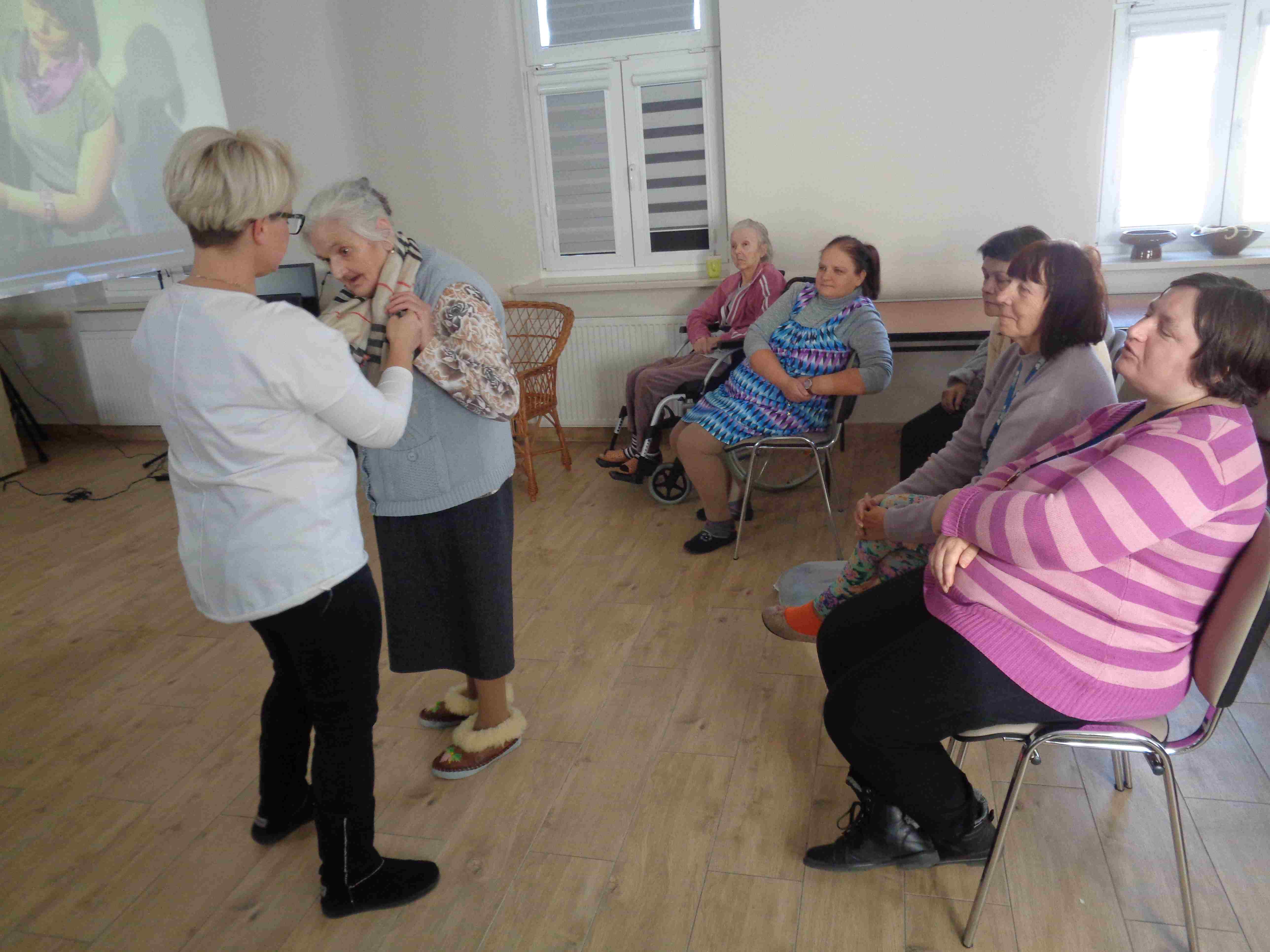 W listopadzie mieszkanki brały udział w zajęciach na temat zasad dobierania biżuterii i apaszek, torebek i dodatków do różnych strojów i okazji. To kontynuacja zajęć nt. dress codu połączona z projekcjami filmów.
