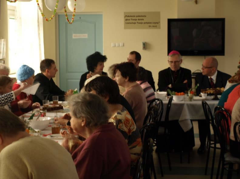 23.12.2011 o godz. 14.00 odbyło się spotkanie opłatkowe, któremu przewodniczył ks. Bp. Kazimierz Gurda. Zaproszeni goście, przyjaciele naszego Domu, spotkali się przy wspólnym stole z podopiecznymi i pracownikami zakładu. Wszyscy uczestnicy spotkania dzielili się opłatkiem, składając życzenia wszelkiej pomyślności. Wigilijna kolacja zakończyła się wspólnym kolędowaniem.