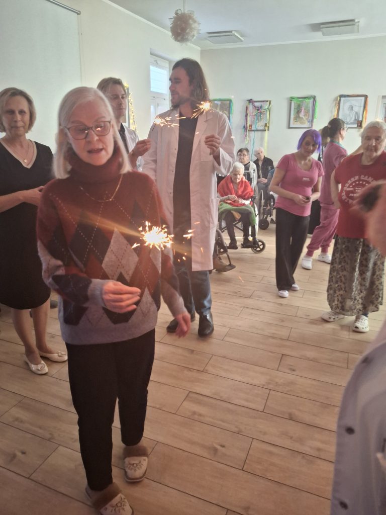 Zabawa sylwestrowa w domu pomocy społecznej była pełna radości i serdecznej atmosfery. Mieszkanki wspólnie spędzili czas przy muzyce, rozmowach i drobnym poczęstunku, witając nadchodzący Nowy Rok. Nie zabrakło uśmiechów, tańców oraz życzeń zdrowia i pomyślności. To wyjątkowe spotkanie pozwoliło wszystkim poczuć wspólnotę i ciepło mimo zimowej pory.