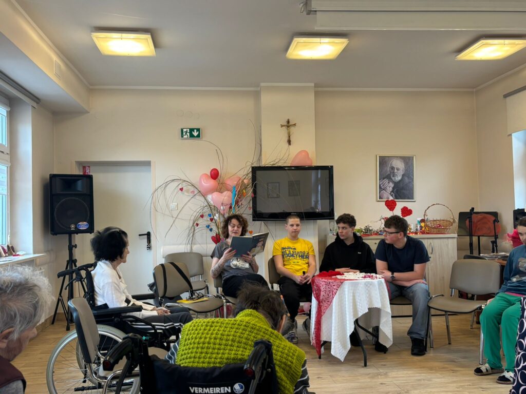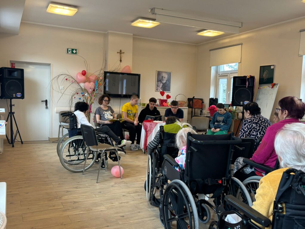 Czytanie książek przez dzieci ze Szkoły Podstawowej nr 2 im. M. Konopnickiej w Kielcach dla mieszkanek naszego Domu to piękna i wartościowa inicjatywa, która buduje empatię oraz wrażliwość społeczną już od najmłodszych lat. Dzięki takim spotkaniom dzieci uczą się otwartości, cierpliwości i szacunku wobec innych, a jednocześnie sprawiają radość słuchaczom. Dla mieszkanek jest to często wyjątkowa okazja do kontaktu z drugim człowiekiem oraz wspólnego przeżywania emocji płynących z opowieści. Takie działania integrują społeczność i pokazują, że każdy, niezależnie od swoich ograniczeń, może być częścią wspólnego świata.