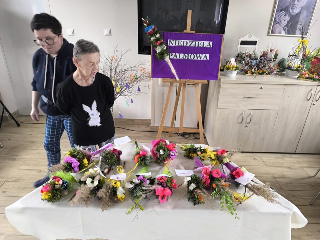 Konkurs na najpiękniejszą palmę wielkanocną wykonaną własnoręcznie przez mieszkanki Domu Pomocy Społecznej był wyjątkowym wydarzeniem pełnym kreatywności i zaangażowania. Uczestniczki z ogromną starannością przygotowały swoje prace, wykorzystując różnorodne materiały i techniki plastyczne. Każda palma była niepowtarzalna i odzwierciedlała indywidualny styl oraz pomysłowość autorek. Konkurs dostarczył wiele radości, a także sprzyjał integracji i wspólnemu spędzaniu czasu. To piękna inicjatywa, która pozwala pielęgnować tradycje oraz rozwijać zdolności manualne mieszkanek.