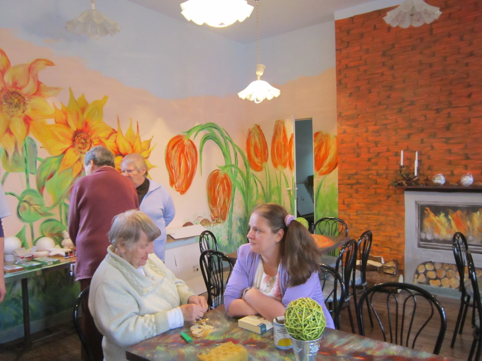 Z radością informujemy, że w dniu 26 listopada b.r. została udostępniona dla Pensjonariuszek Domu Pomocy Społecznej im. Św. Brata Alberta kolejna sala terapeutyczna, która została zaprojektowana z myślą zapewnienia naszym mieszkankom miłego spędzania czasu, podczas odbywających się tam zajęć terapeutycznych. Projekt został wykonany oraz przeniesiony na ściany przez pracownika terapii zajęciowej i niezwykle uzdolnioną plastycznie mieszkankę naszej placówki Annę Król. Mamy nadzieję, że nowa sala zapewni naszym Pensjonariuszkom możliwość rozwoju swoich nie odkrytych dotąd zdolności manualnych, a nowa aranżacja przyczyni się do oddania klimatycznej i ciepłej atmosfery. Podczas warsztatów terapii zajęciowej, które odbyły się w nowej sali, Podopieczne naszego Domu przygotowywały ozdoby świąteczne.