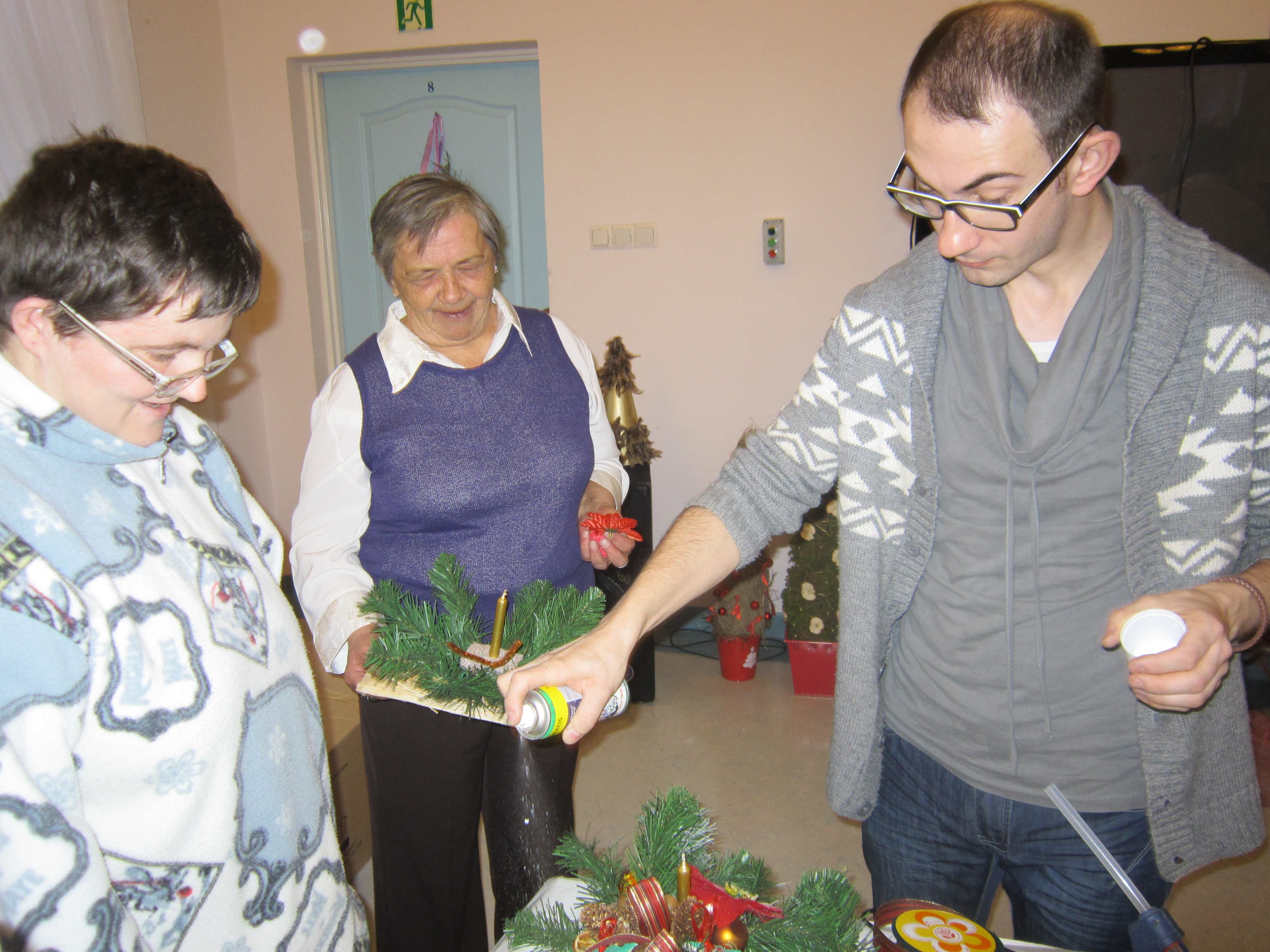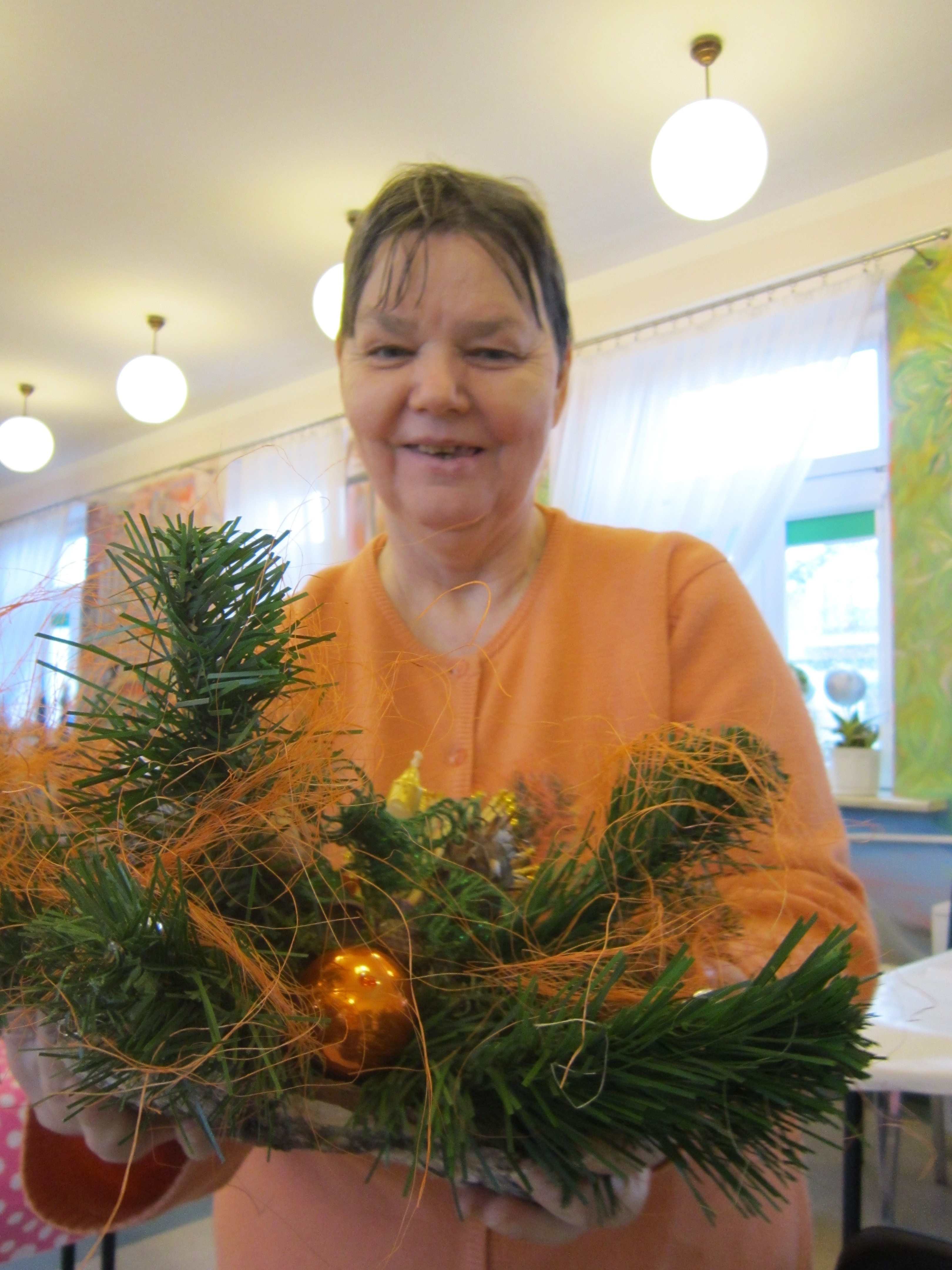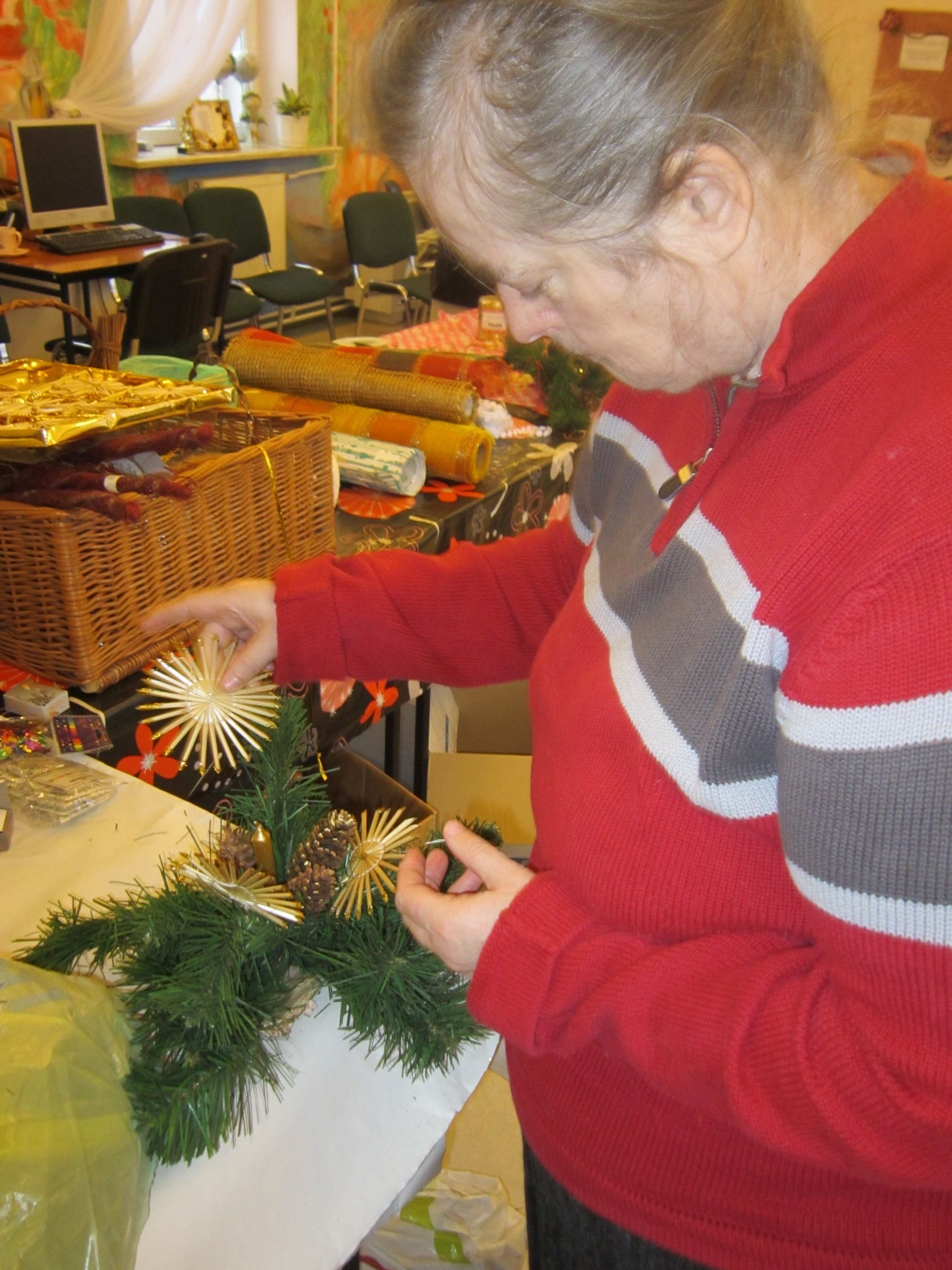 W poniedziałek Mieszkanki uczestniczyły w warsztatach florystycznych prowadzonych przez Mistrza Florystyki. Radość była ogromna. Panie wykonywały kompozycje świąteczne do swoich mieszkań, miedzy innymi: stroiki, choinki, wianki.