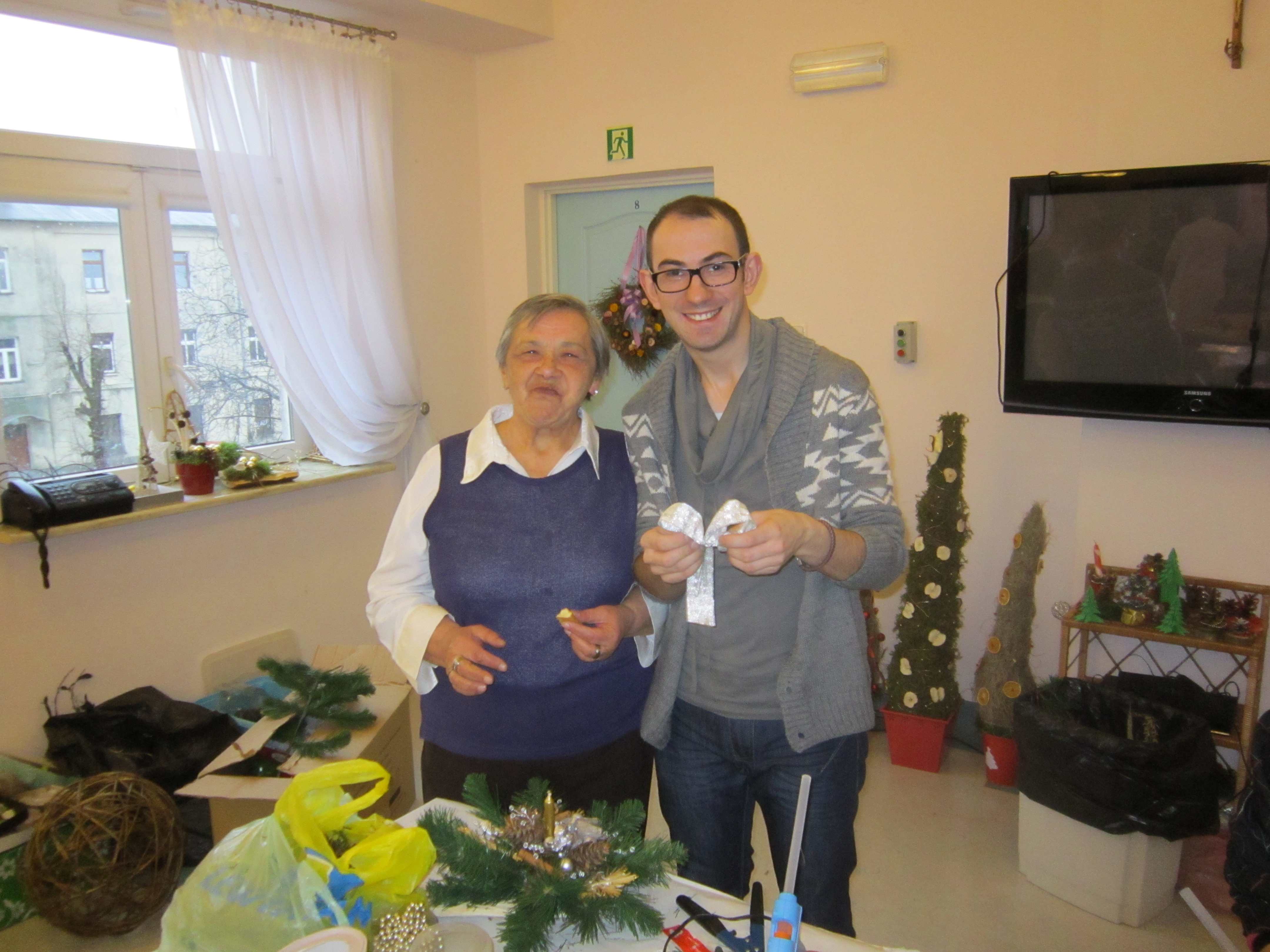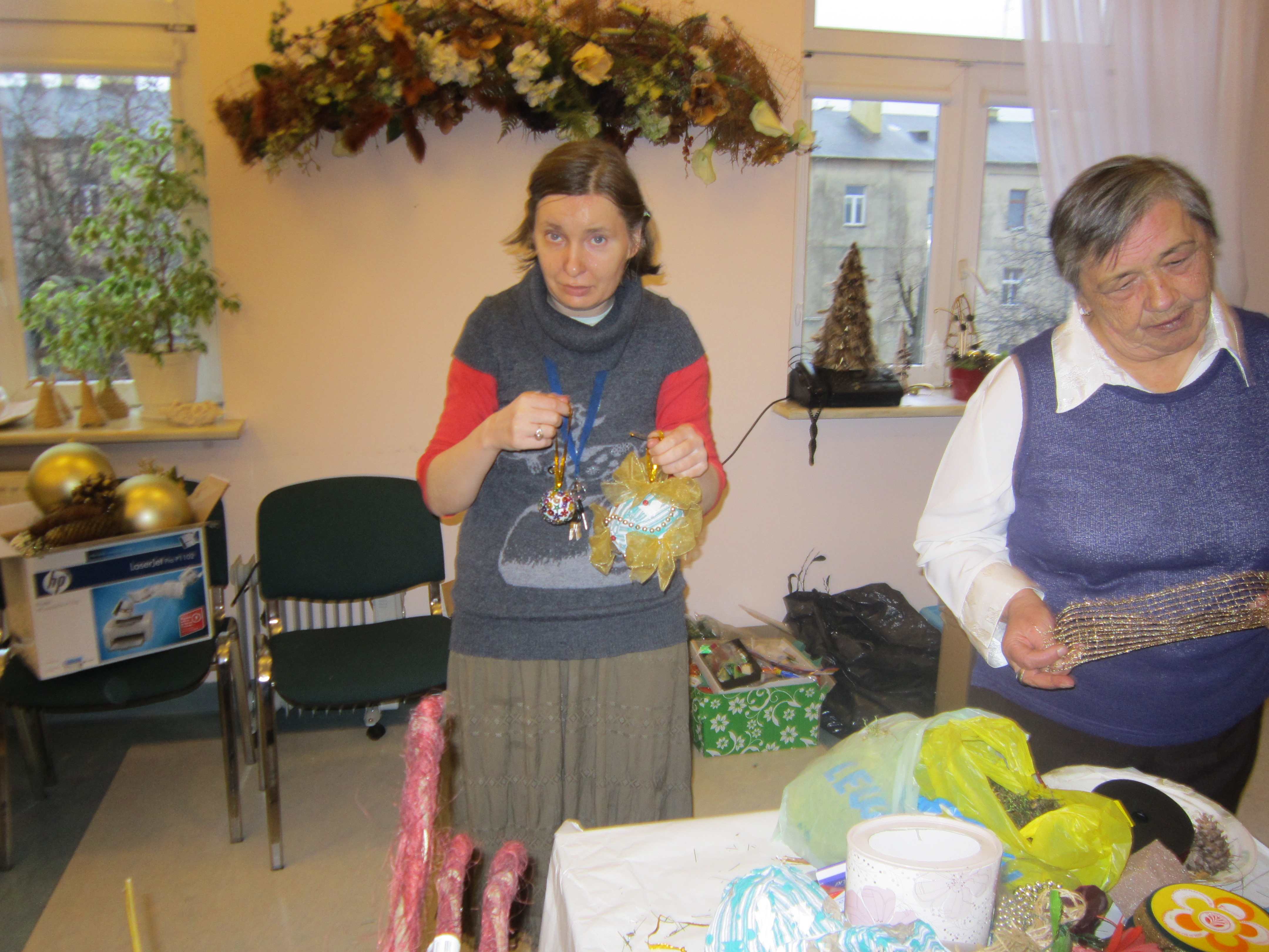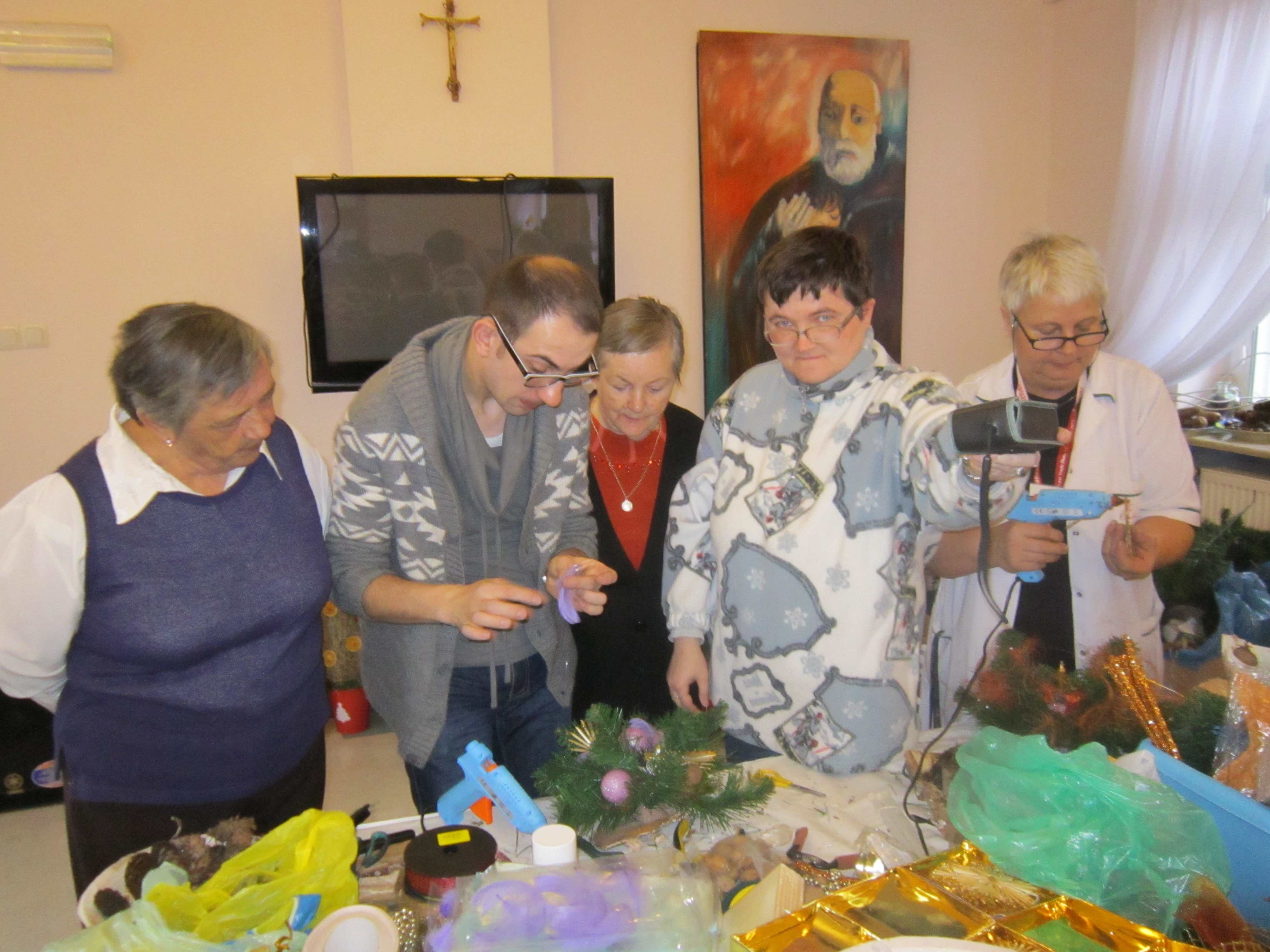 W poniedziałek Mieszkanki uczestniczyły w warsztatach florystycznych prowadzonych przez Mistrza Florystyki. Radość była ogromna. Panie wykonywały kompozycje świąteczne do swoich mieszkań, miedzy innymi: stroiki, choinki, wianki.