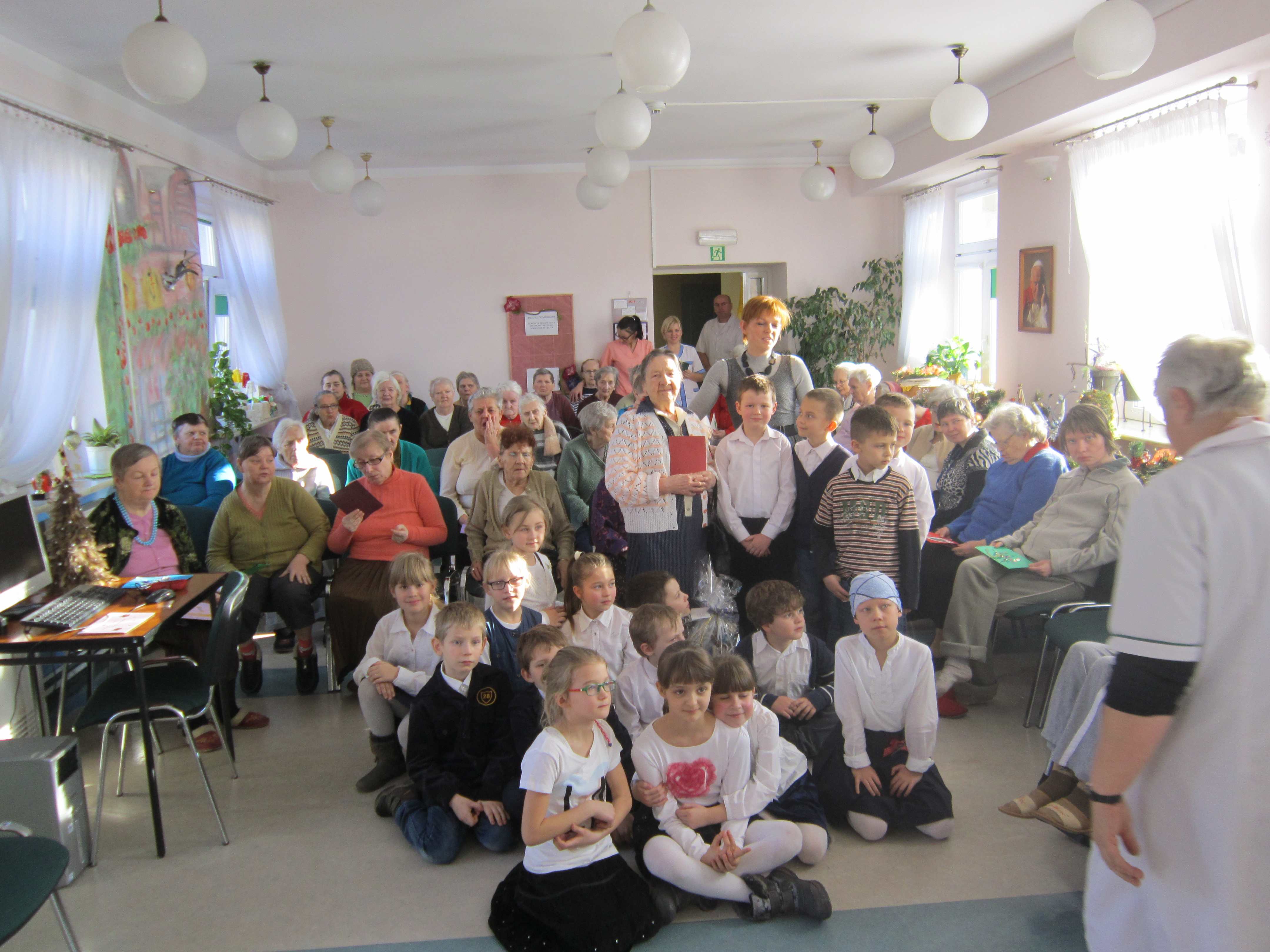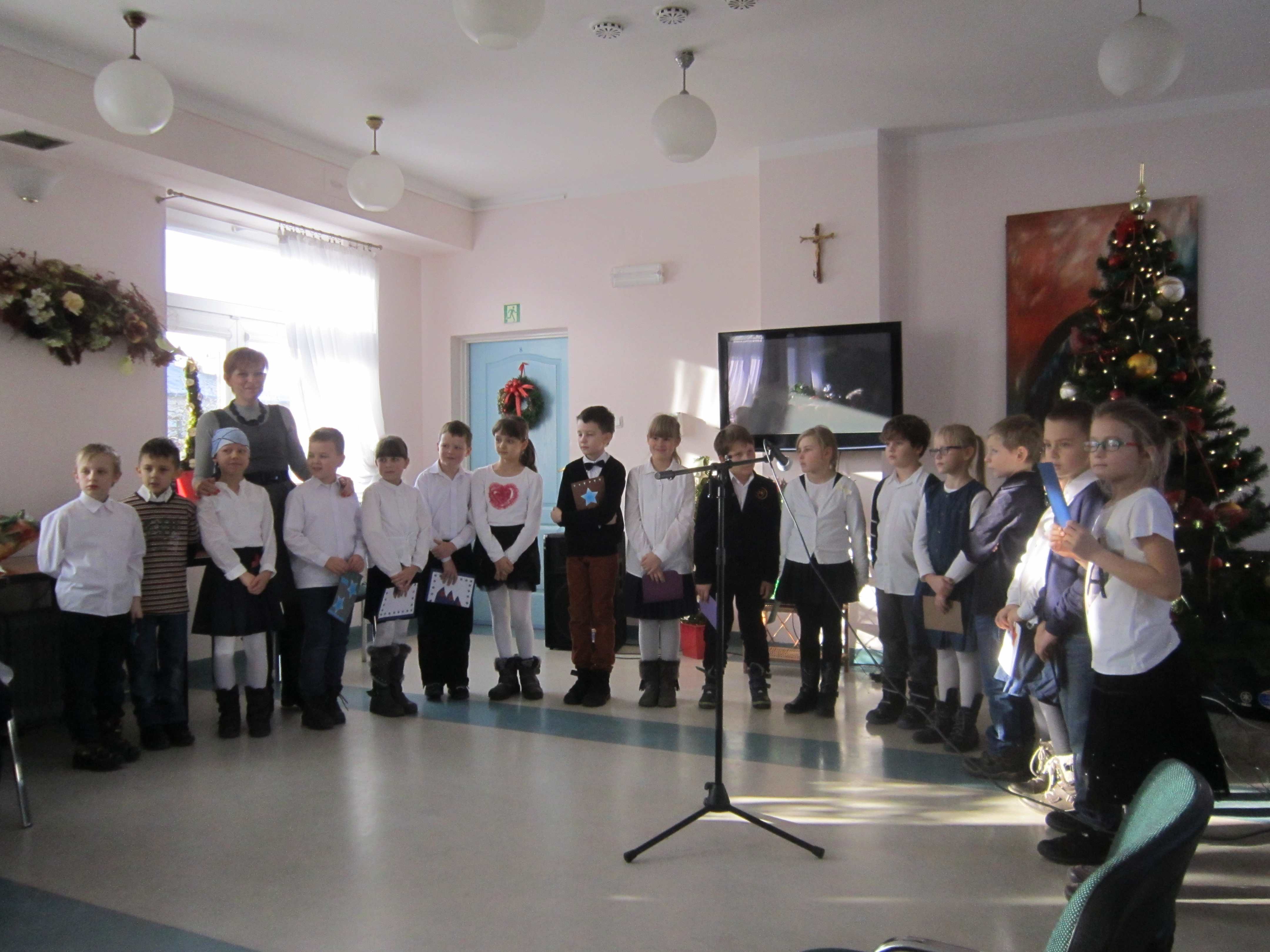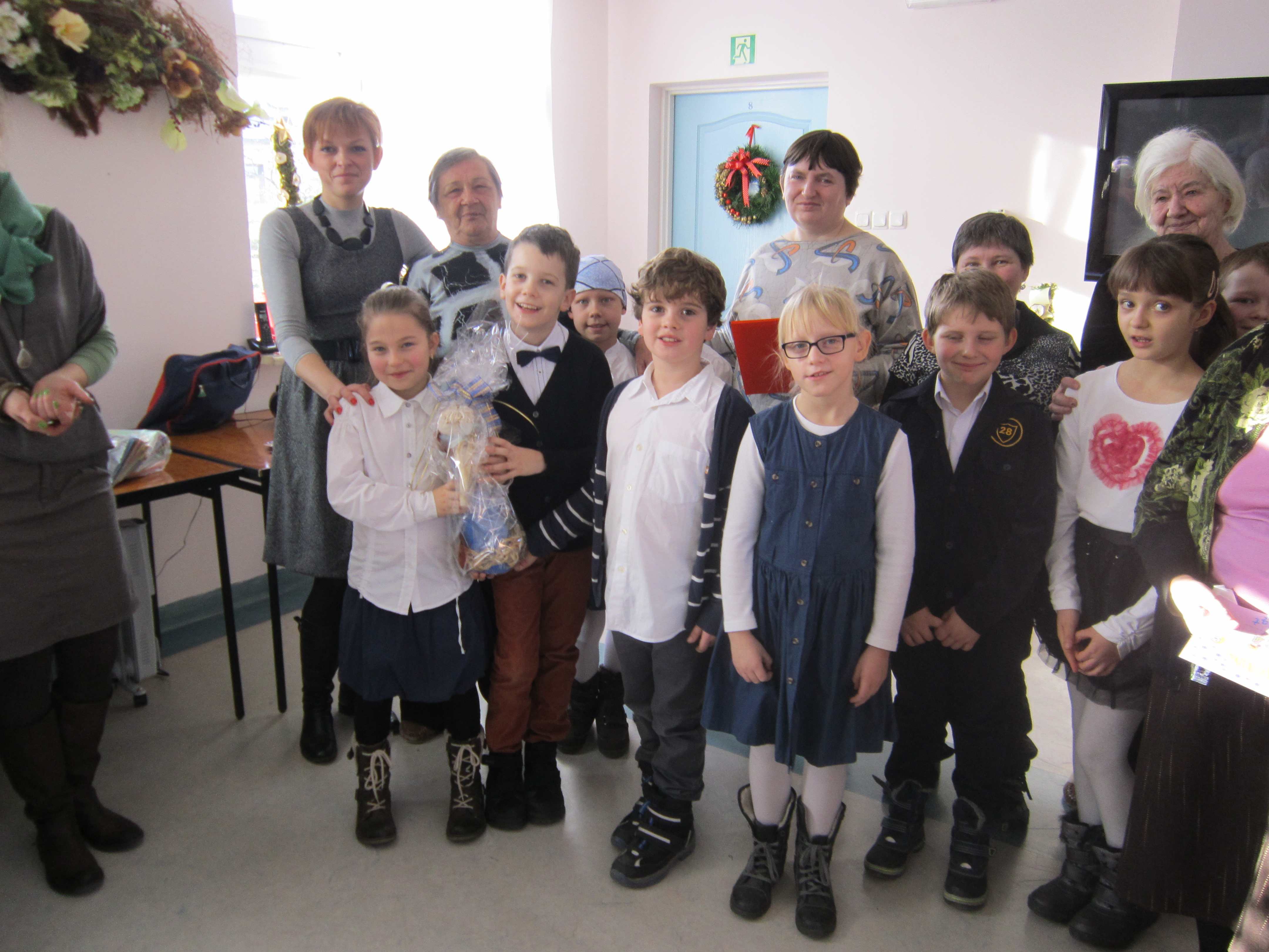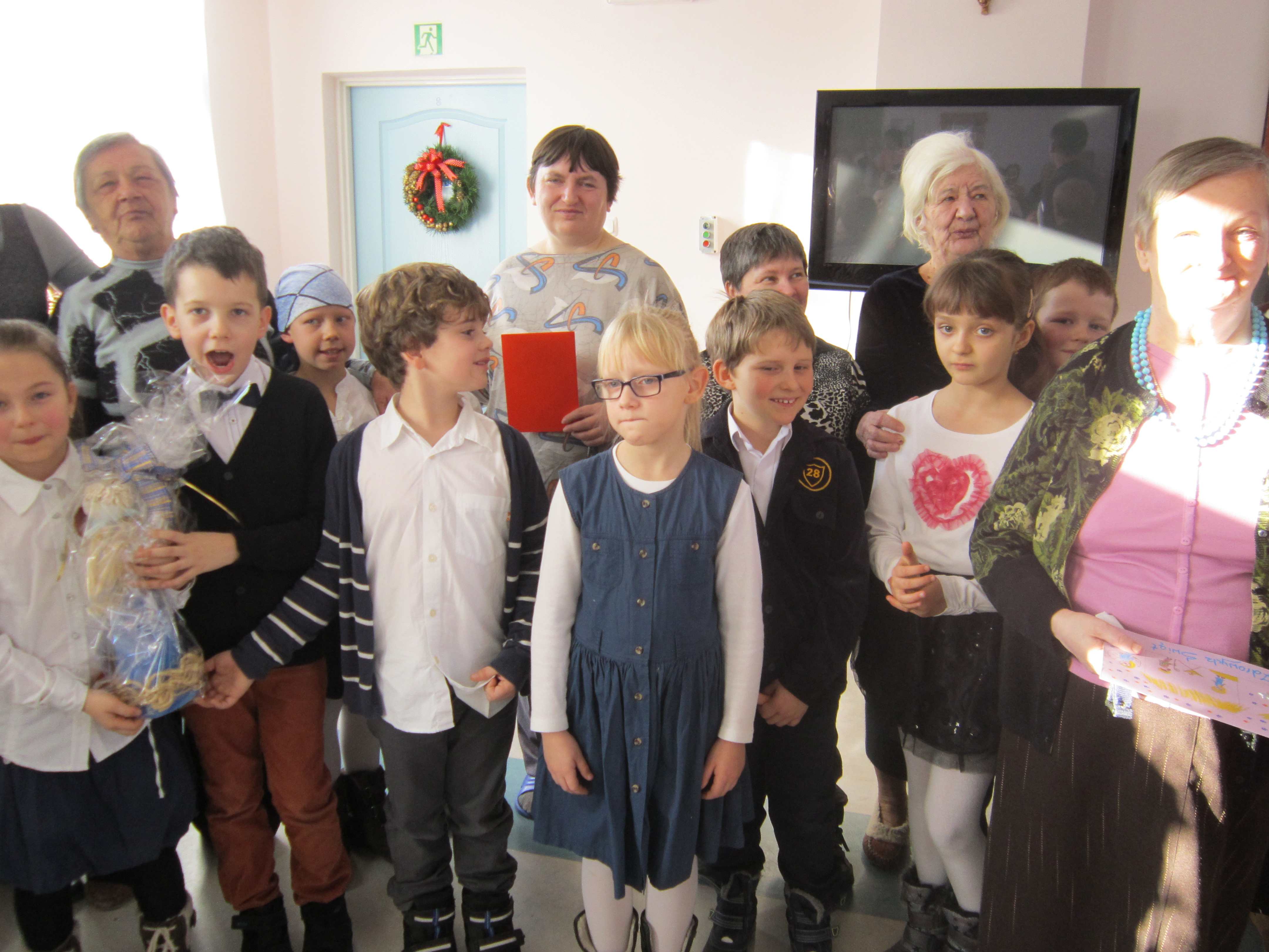 Gościliśmy uczniów drugiej klasy Szkoły Podstawowej nr 28 z Kielc, którzy zaprezentowali świąteczne przedstawienie. Uczniowie wręczyli mieszkankom i pracownikom naszego Domu własnoręcznie robione na zajęciach kartki z takimi oto życzeniami: Gdy nadejdzie czas Wigilii, opłatek weźmiecie w ręce, choć będziemy gdzieś w oddali – z Wami będą nasze serca. Przełamując ten opłatek, wspomnijcie nas na ostatek. My życzenia ślemy stąd i wesołych życzymy Świąt.