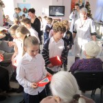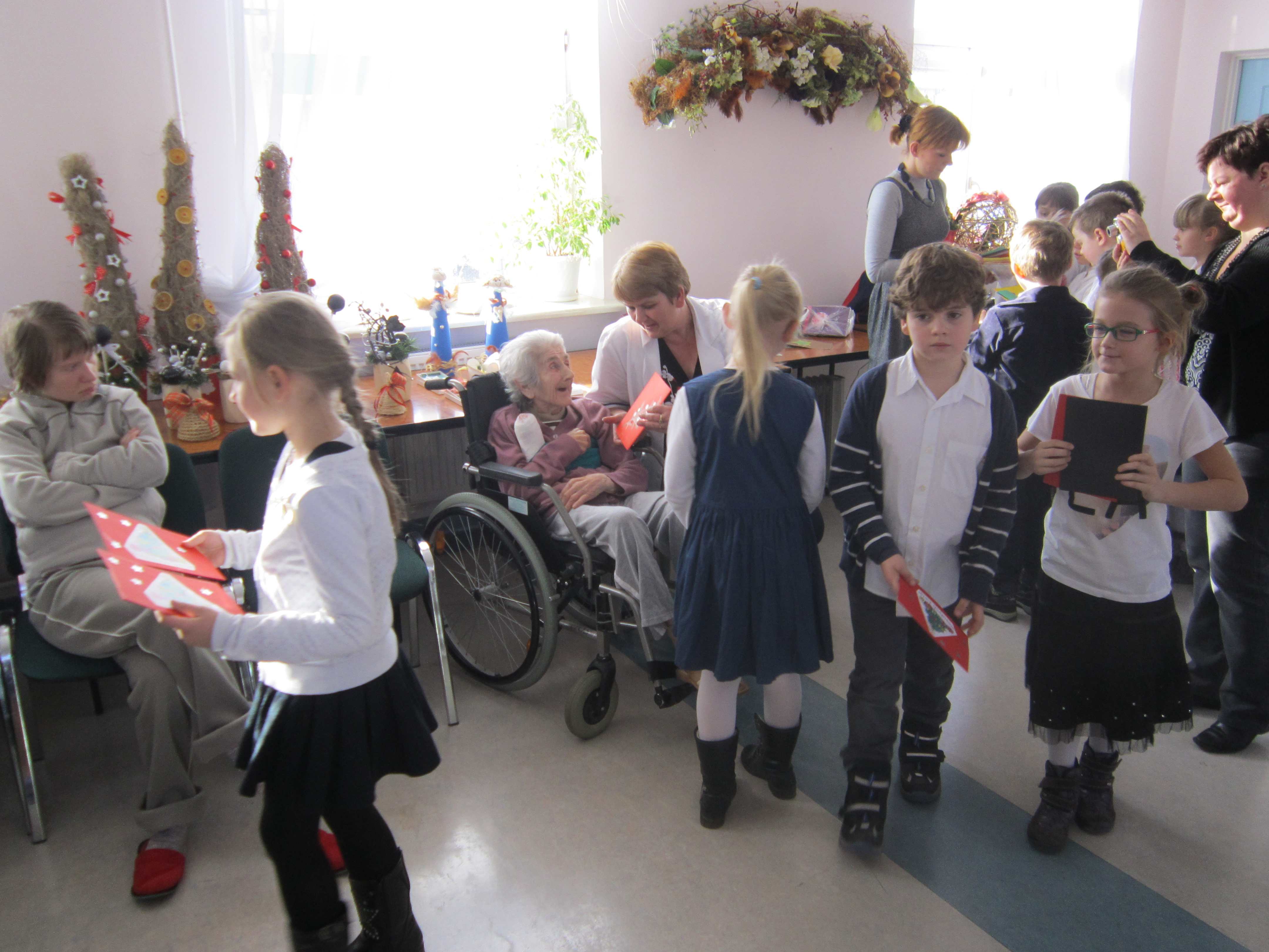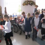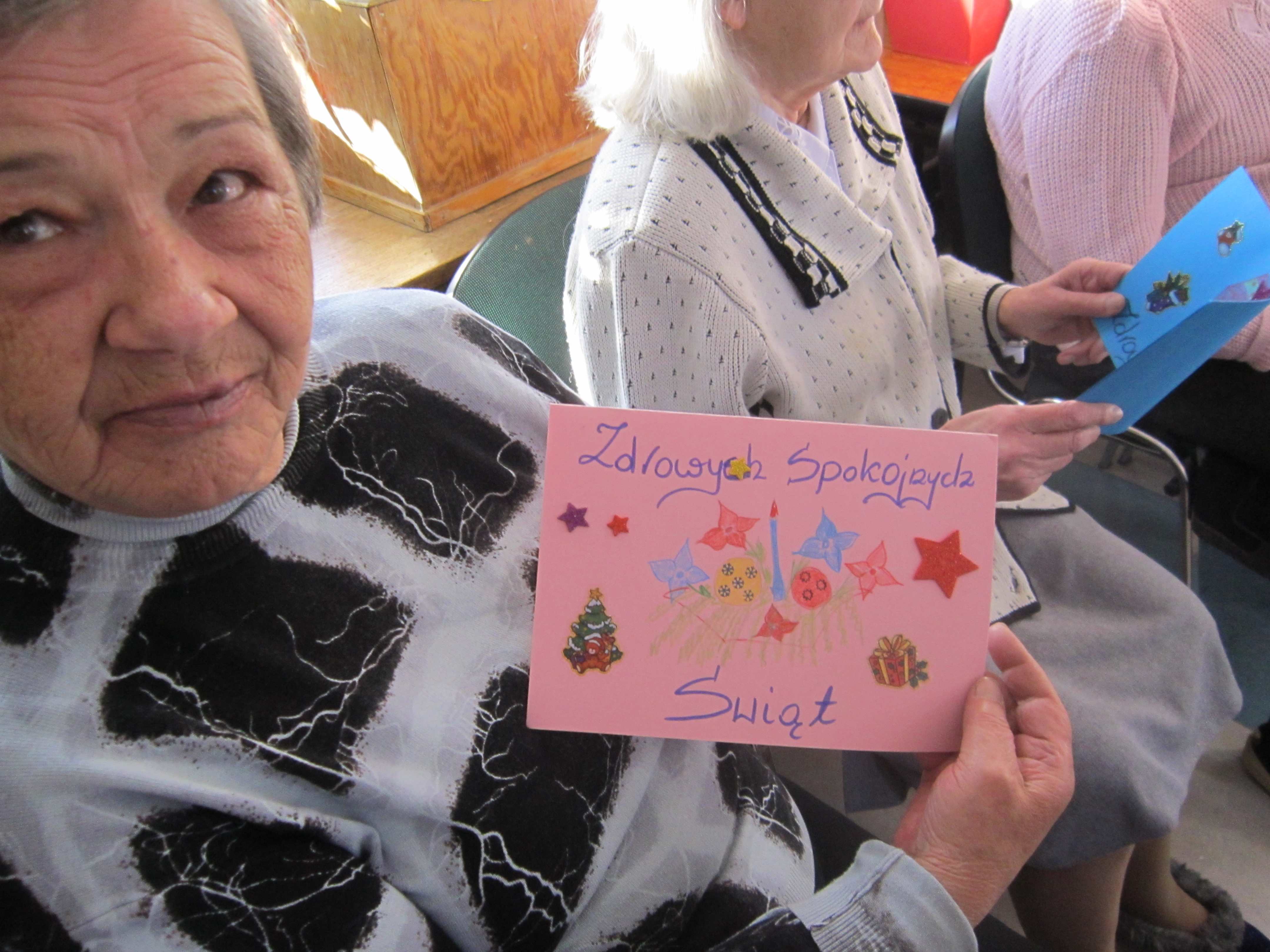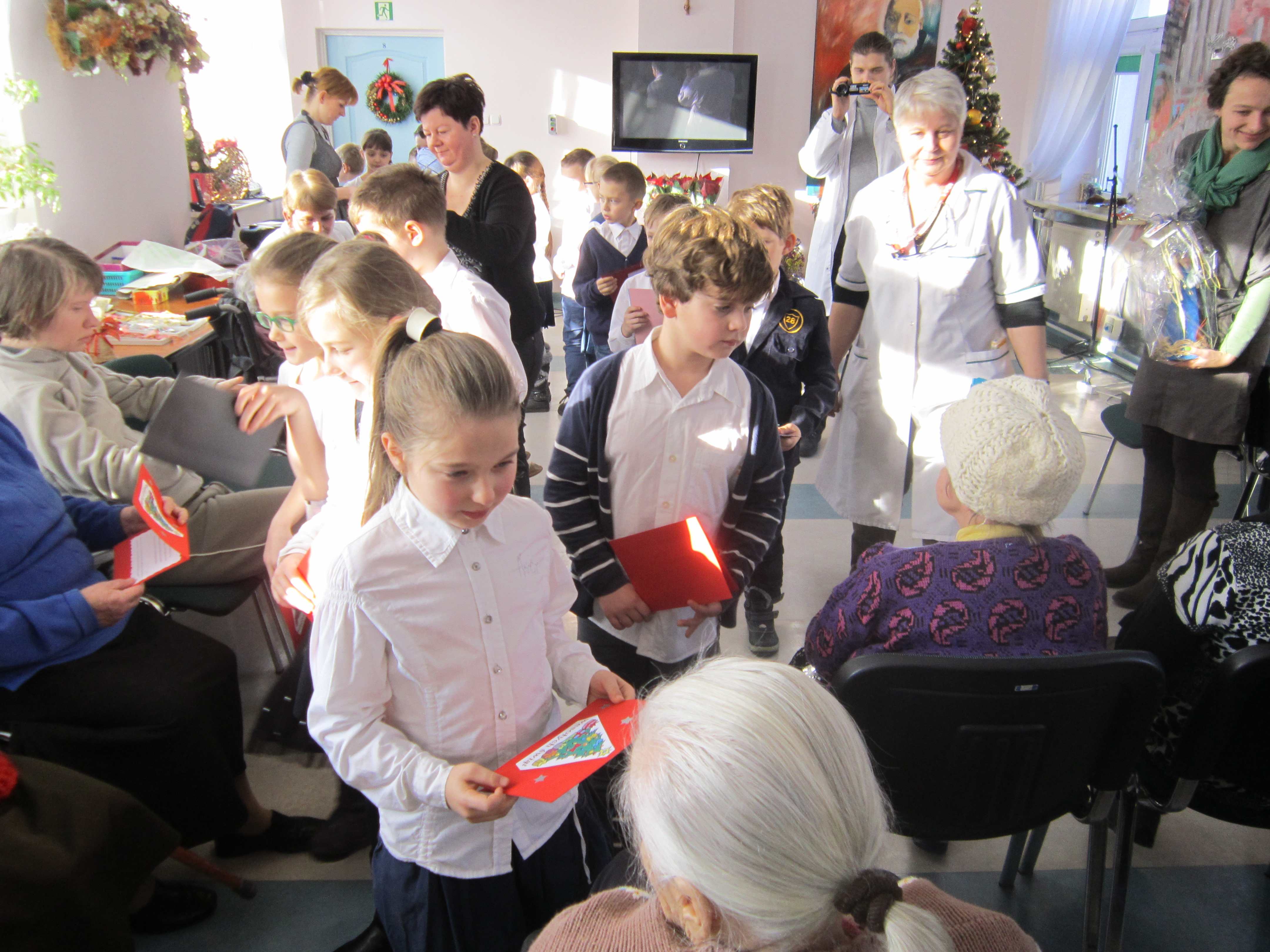Gościliśmy uczniów drugiej klasy Szkoły Podstawowej nr 28 z Kielc, którzy zaprezentowali świąteczne przedstawienie. Uczniowie wręczyli mieszkankom i pracownikom naszego Domu własnoręcznie robione na zajęciach kartki z takimi oto życzeniami: Gdy nadejdzie czas Wigilii, opłatek weźmiecie w ręce, choć będziemy gdzieś w oddali – z Wami będą nasze serca. Przełamując ten opłatek, wspomnijcie nas na ostatek. My życzenia ślemy stąd i wesołych życzymy Świąt.