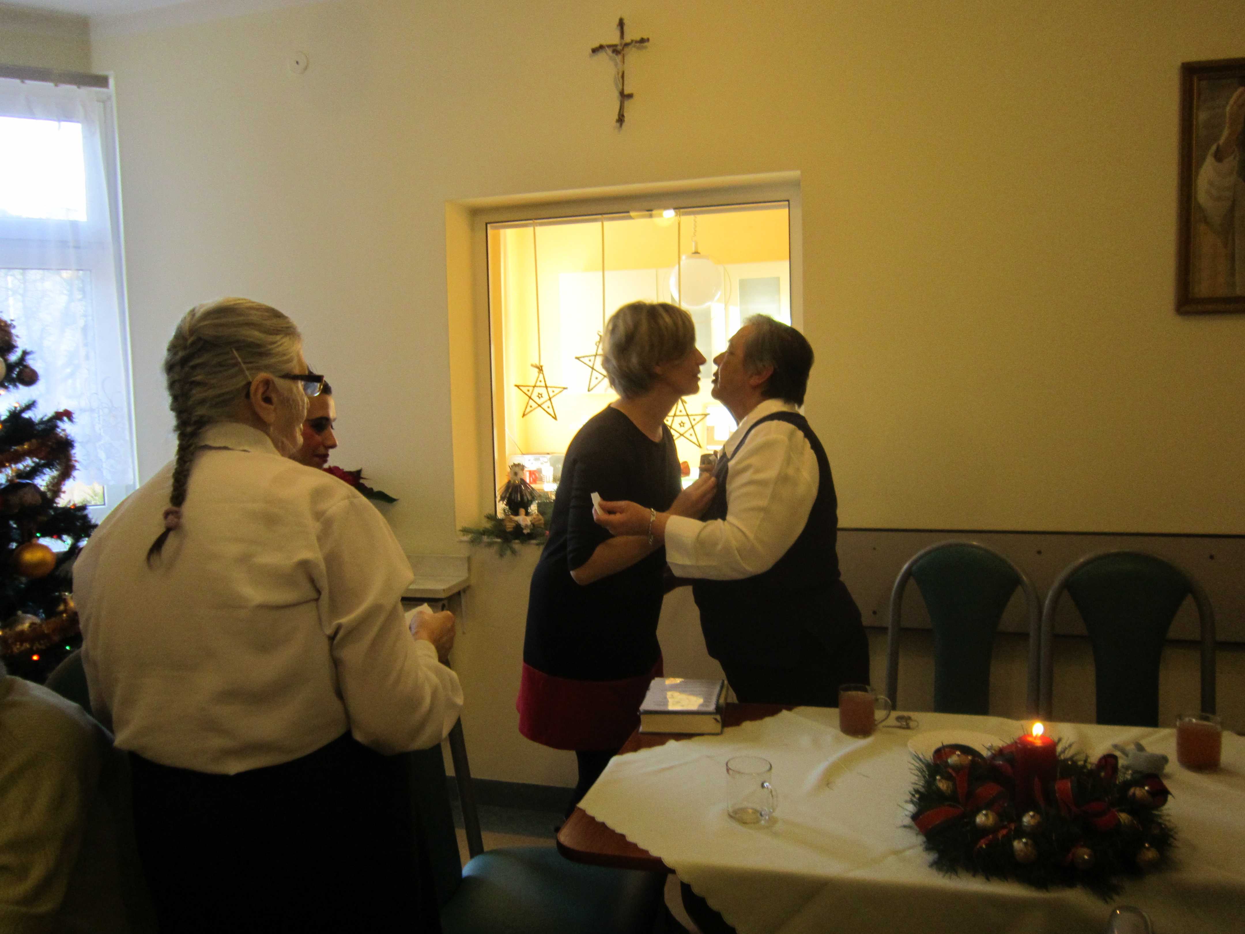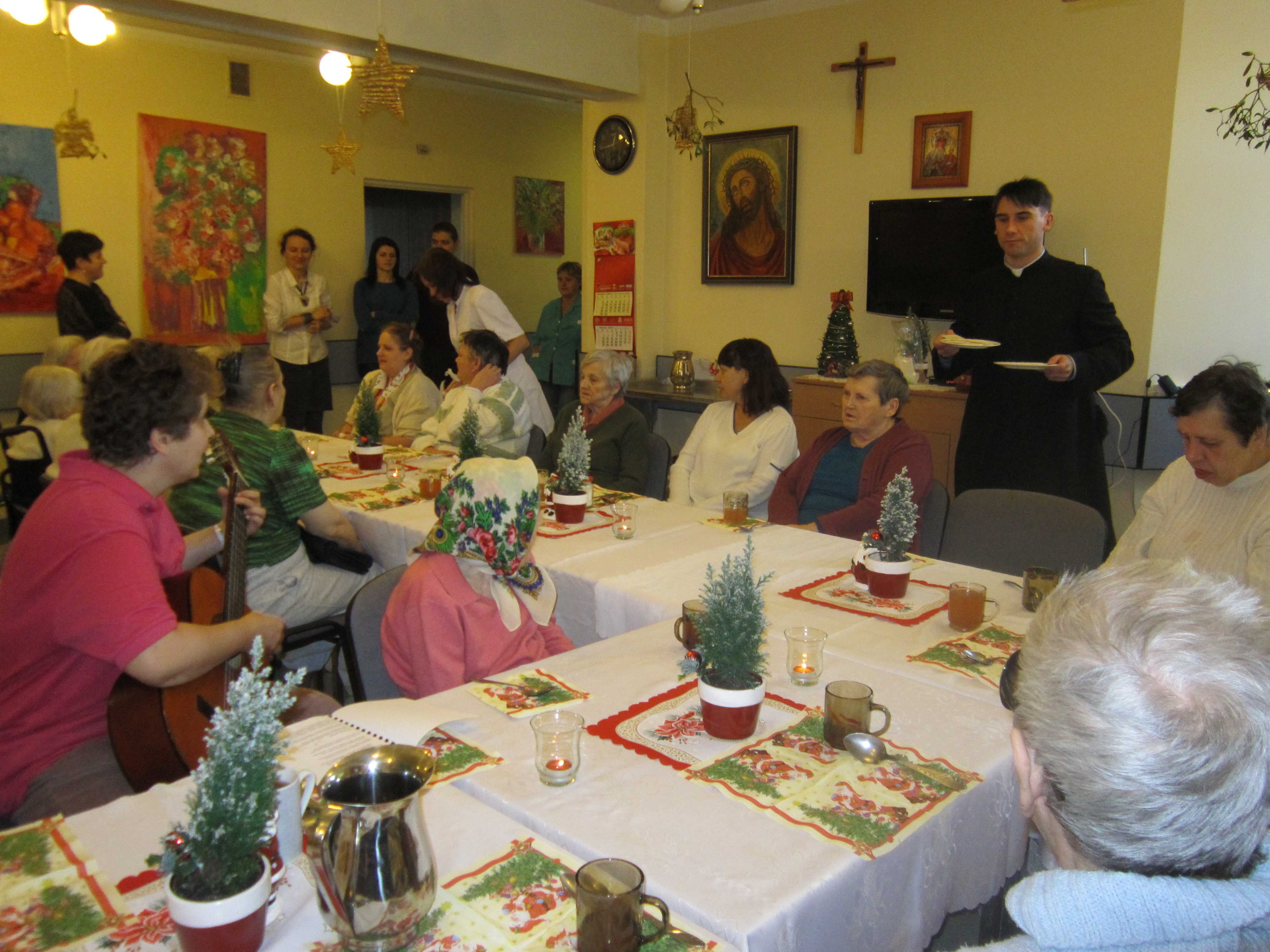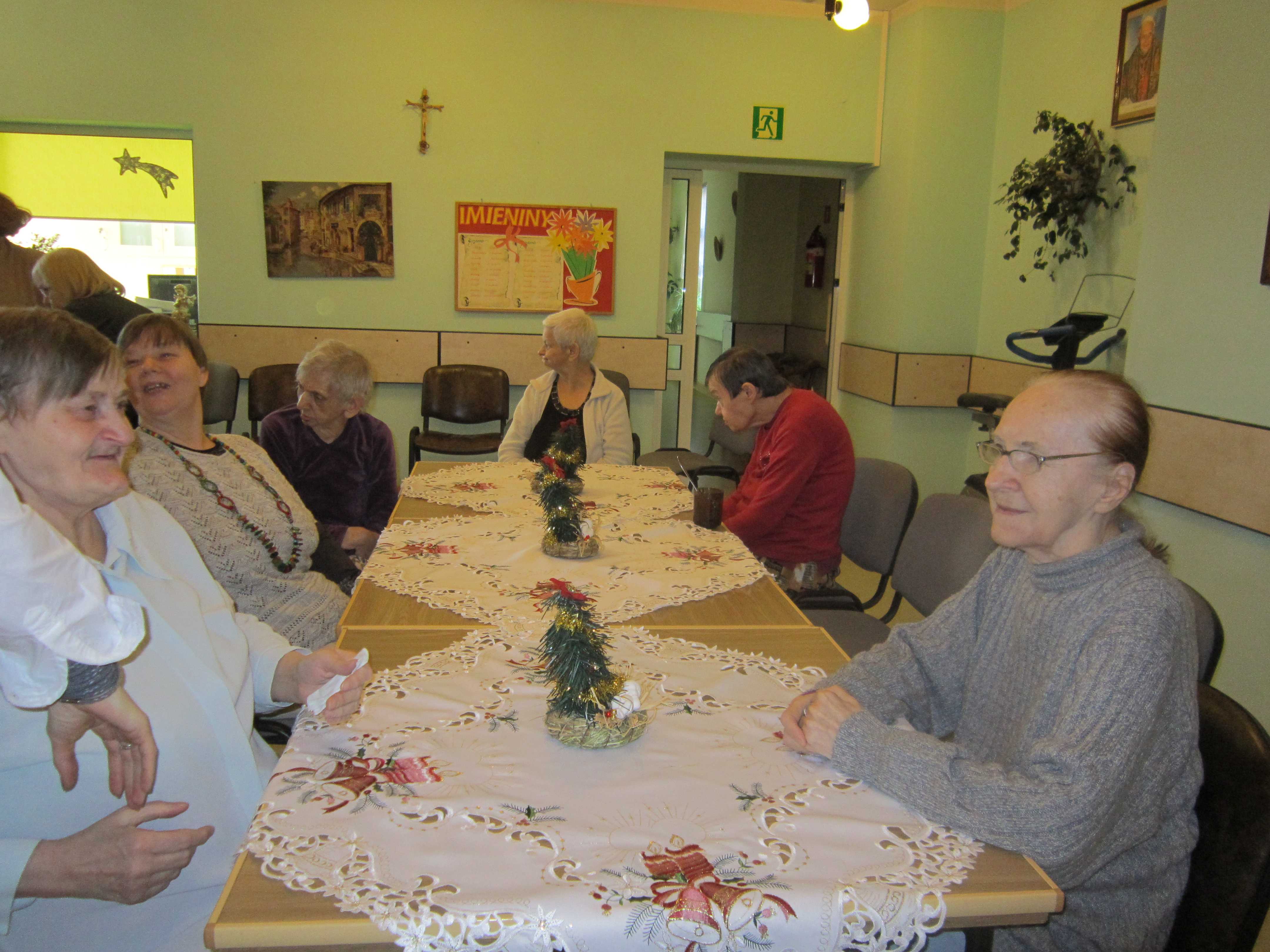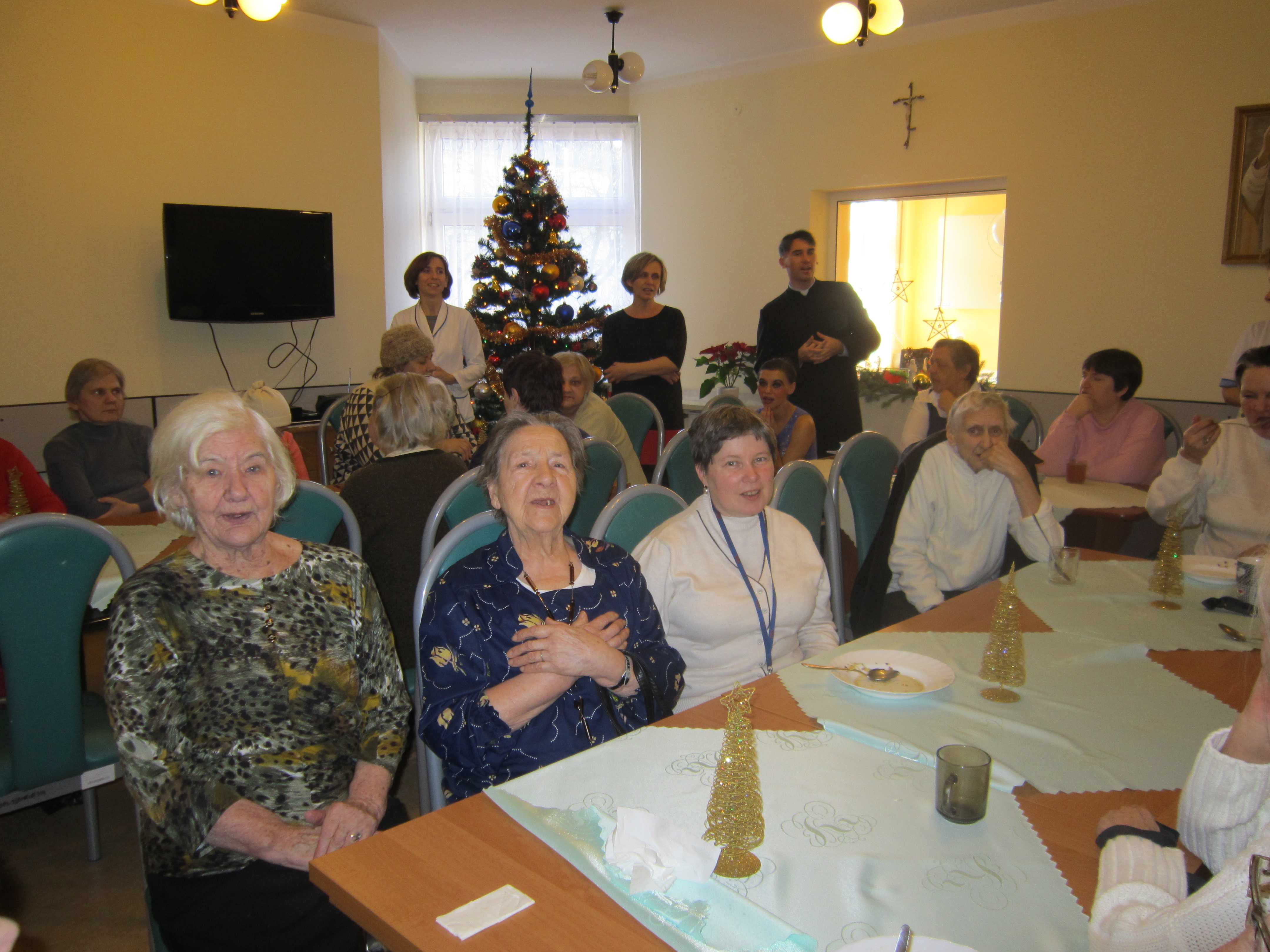 Wieczerzę wigilijną w naszym Domu rozpoczęliśmy od zapalenia świecy i wspólnej modlitwy, następnie przełamaliśmy się opłatkiem – chlebem miłości składając sobie życzenia. I zaczęło się wspólne kolędowanie a następnie przyszedł czas na Wieczerzę na której nie mogło zabraknąć tradycyjnych potraw wigilijnych: zupy grzybowej, kompotu z suszu, czerwonego barszczyku, pasztecików z kapustą i grzybami, śledzi, kapusty z grochem , smażonego karpia oraz przepysznych ciast pieczonych w naszej kuchni. Mieszkanki otrzymały także gwiazdkowe prezenty. Radości nie było końca a uśmiech sam rysował się na ich twarzach. Życzymy wszystkim Błogosławionych czyli Szczęśliwych Świąt, oby w naszych sercach Boże narodzenie trwało codziennie!