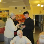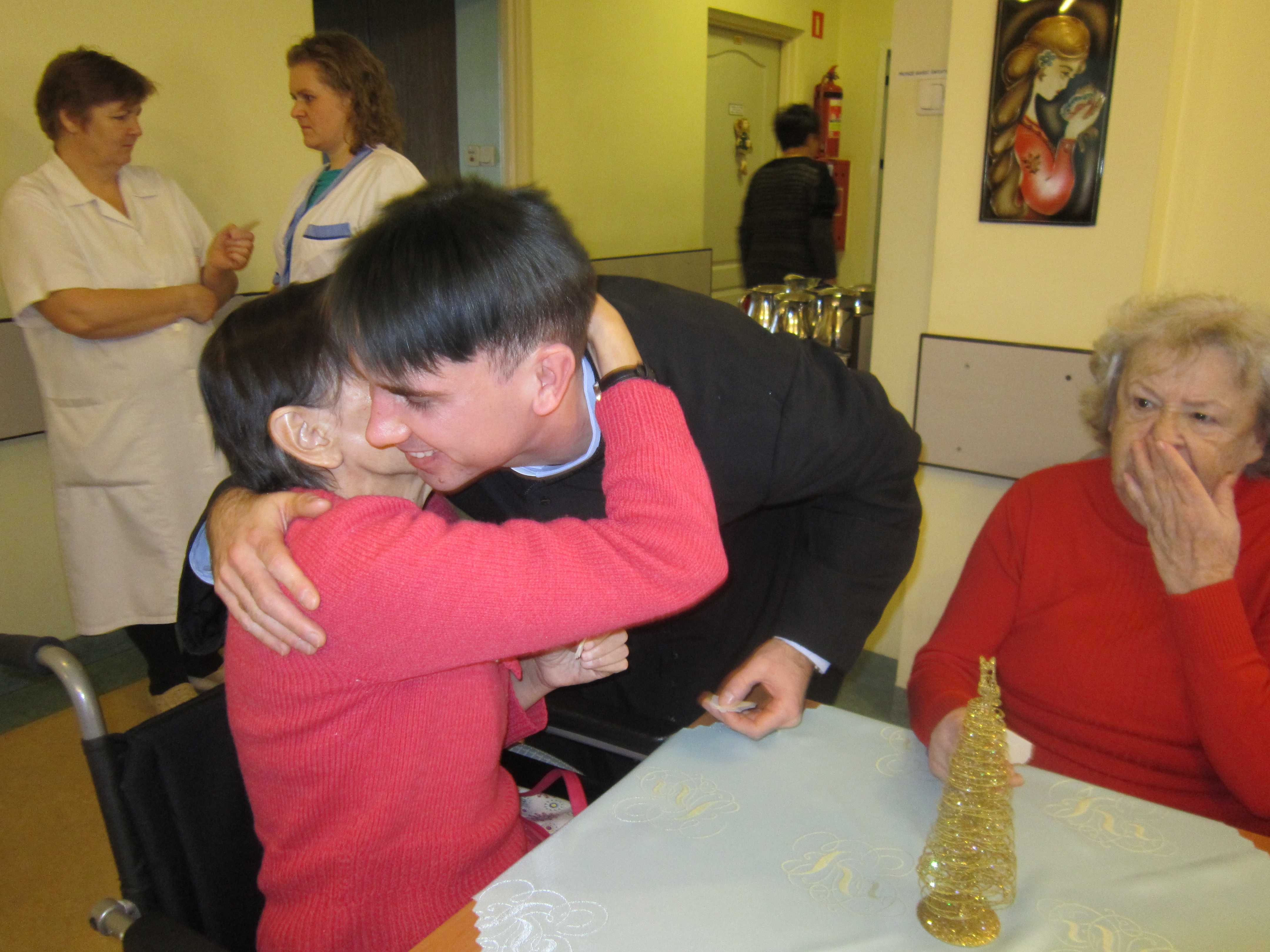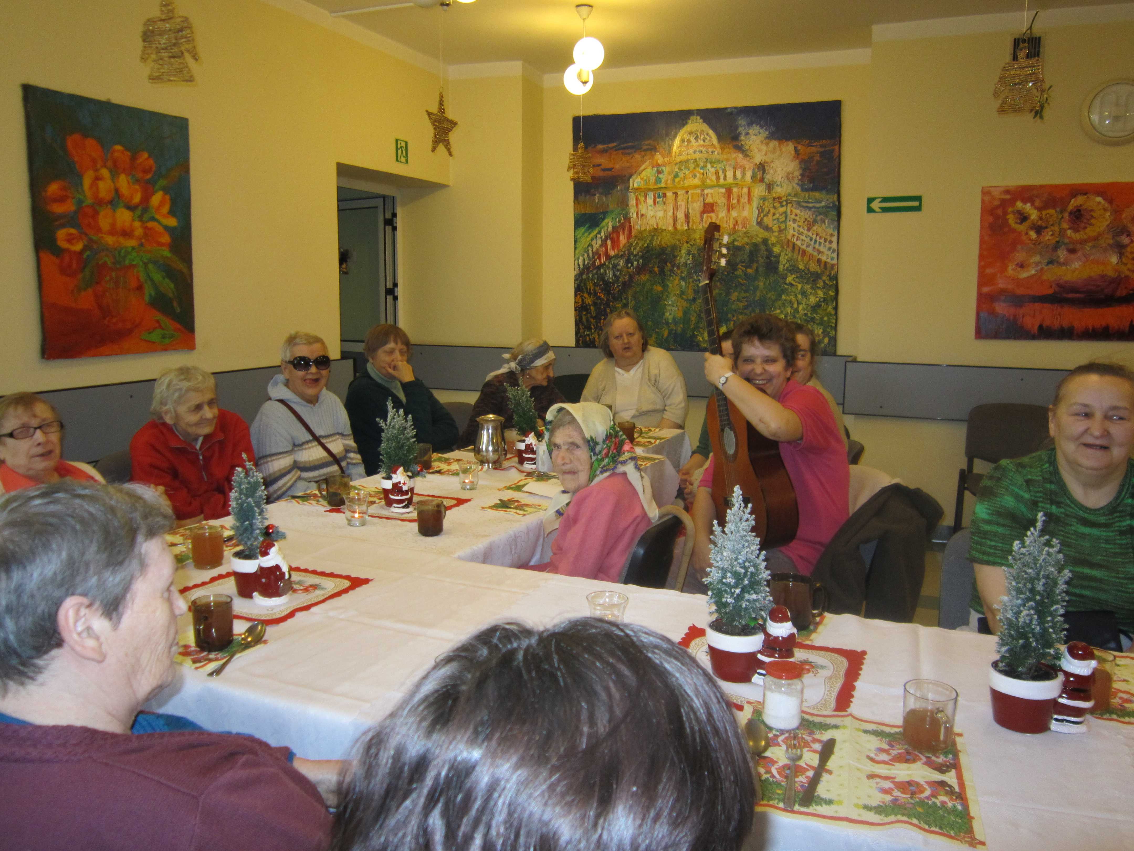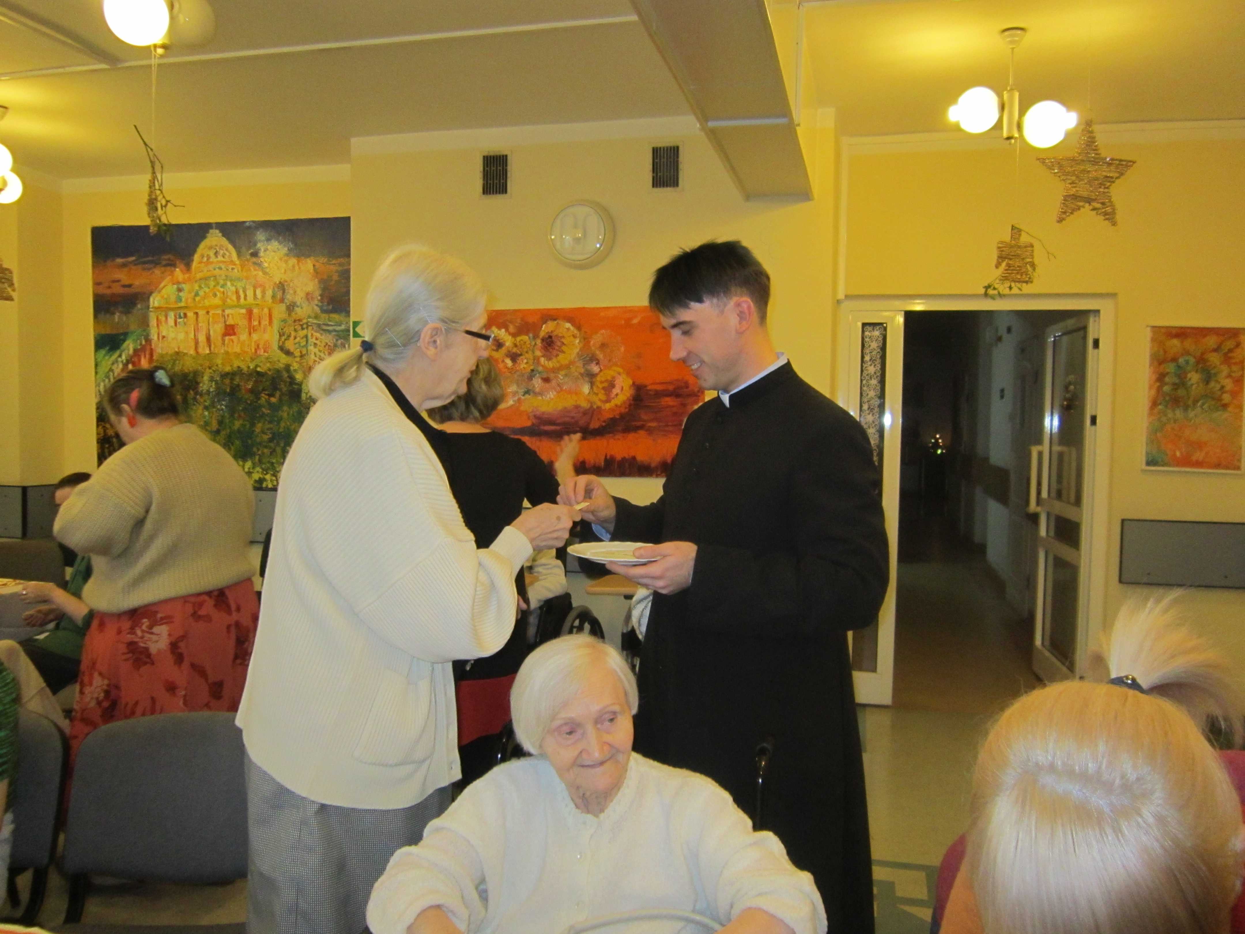Wieczerzę wigilijną w naszym Domu rozpoczęliśmy od zapalenia świecy i wspólnej modlitwy, następnie przełamaliśmy się opłatkiem – chlebem miłości składając sobie życzenia. I zaczęło się wspólne kolędowanie a następnie przyszedł czas na Wieczerzę na której nie mogło zabraknąć tradycyjnych potraw wigilijnych: zupy grzybowej, kompotu z suszu, czerwonego barszczyku, pasztecików z kapustą i grzybami, śledzi, kapusty z grochem , smażonego karpia oraz przepysznych ciast pieczonych w naszej kuchni. Mieszkanki otrzymały także gwiazdkowe prezenty. Radości nie było końca a uśmiech sam rysował się na ich twarzach. Życzymy wszystkim Błogosławionych czyli Szczęśliwych Świąt, oby w naszych sercach Boże narodzenie trwało codziennie!