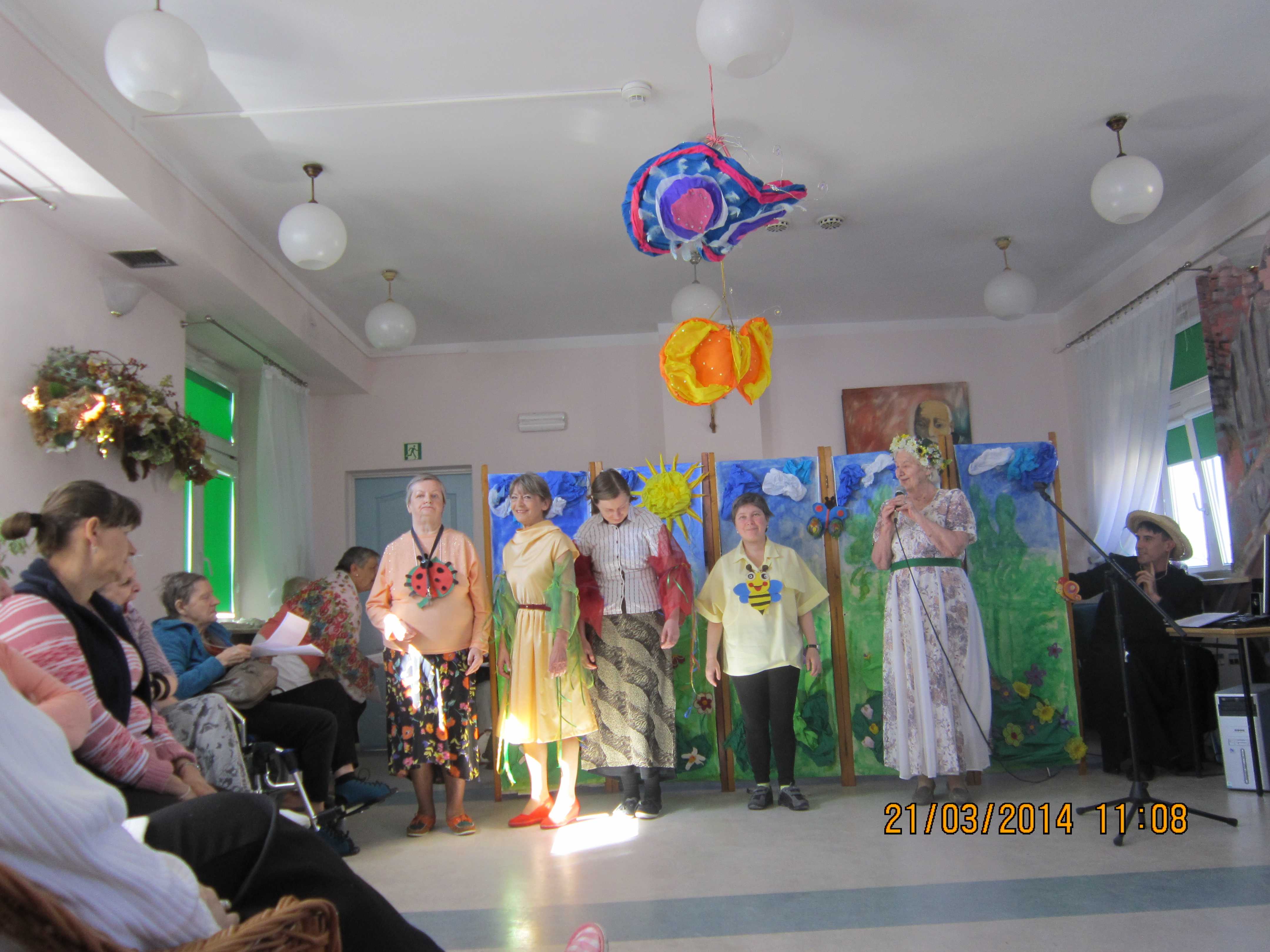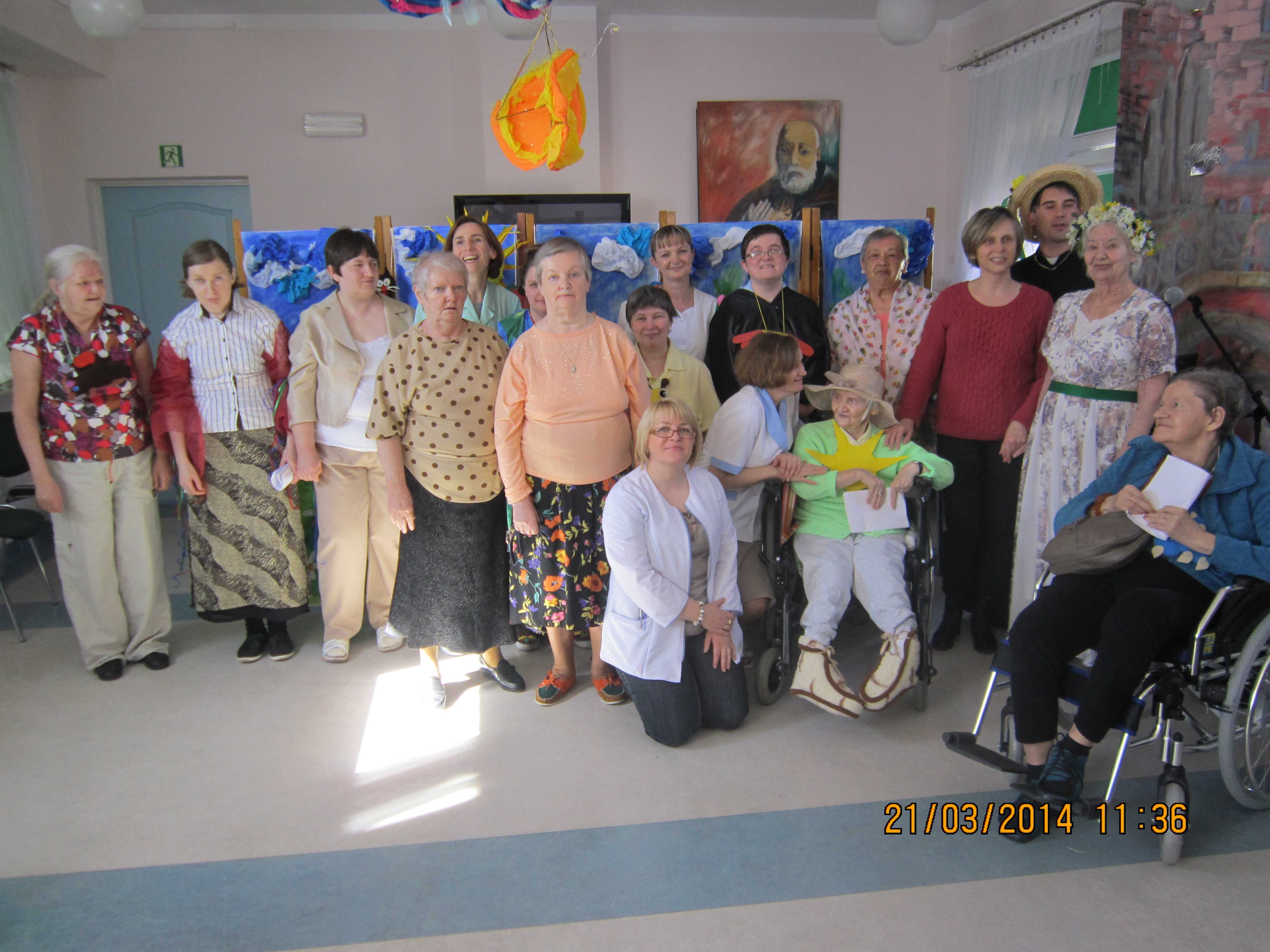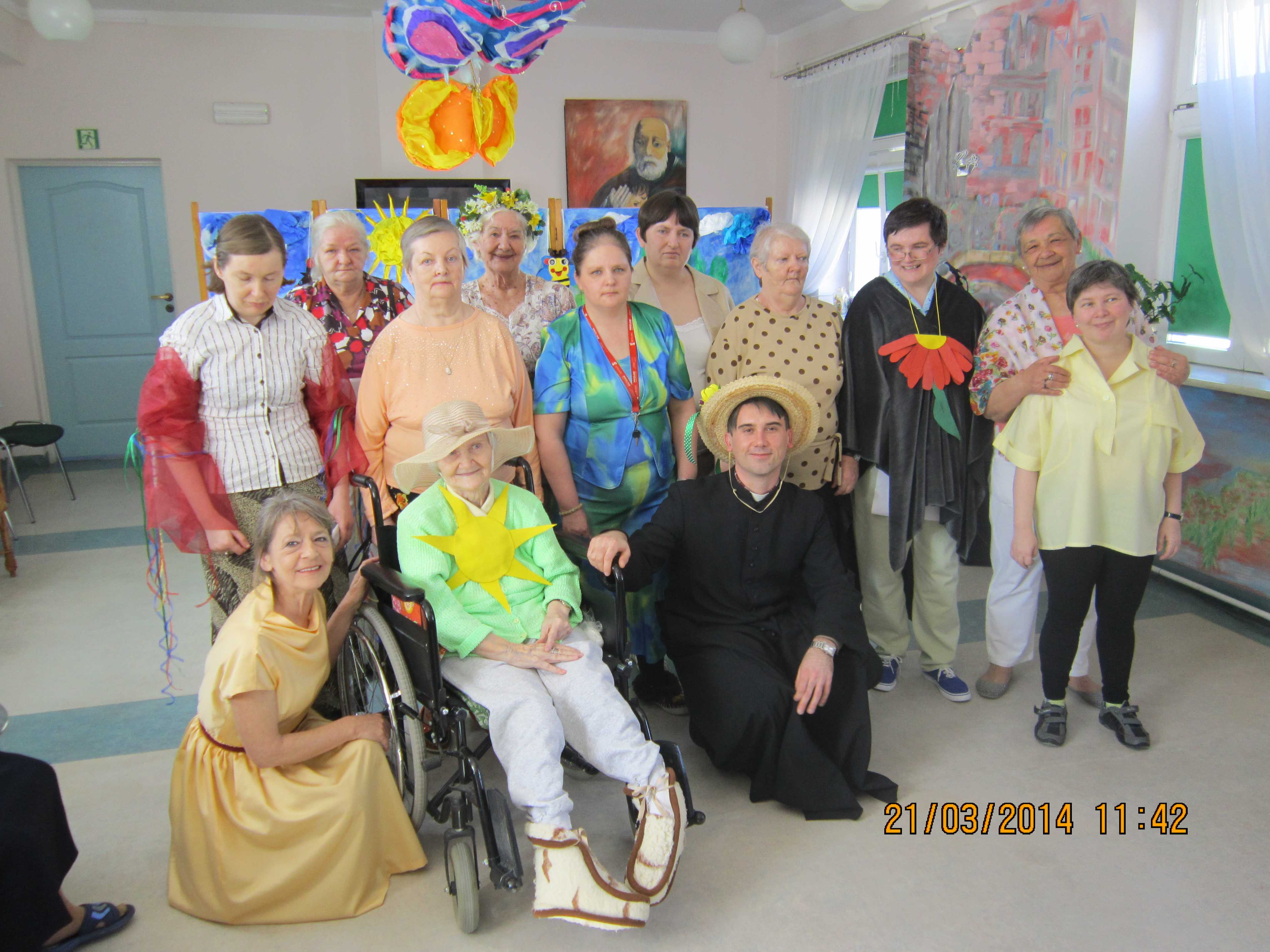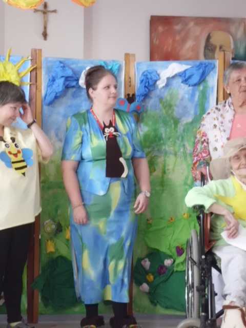 21 marca w naszym Domu odbyła się premiera przedstawienia pt. „Witaj wiosno” . Mieszkanki z Koła teatralnego „Albercik” zaprezentowały już kolejny raz swoje zdolności. Tym razem panie wcieliły się w role zwierząt: wiewiórki, kota, jeża, pszczółki, biedronki, motyli, oraz zjawisk przyrodniczych: słońca, wiatru i deszczu. Duży wkład w przygotowanie scenografii i kostiumów włożyły same mieszkanki pod opieką instruktora terapii zajęciowej Pani Kingi- Groszczyńskiej – Mazur. Nad całością inscenizacji czuwał opiekun Koła teatralnego ks. Sebastian Lewczuk. Wszystkim zaproszonym bardzo podobało się przedstawienie, czego wyrazem były gromkie brawa i dwukrotny bis.