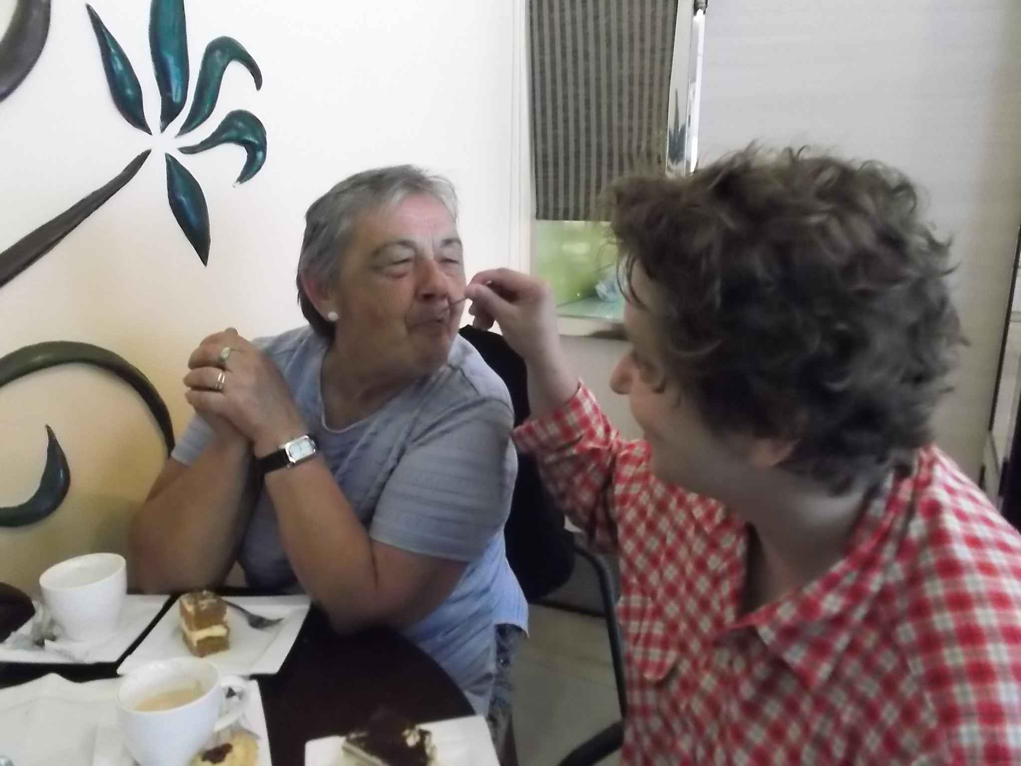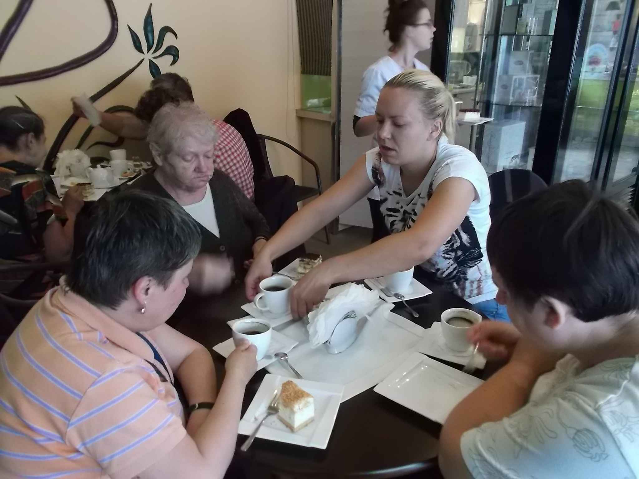 W dn. 24 lipca członkowie Kieleckiego Domu pod Fontanną zaprosili mieszkanki DPS do kawiarni „Szarlotka”, każdy wybrał dla siebie kawę i ciastko, była okazja do wspólnych rozmów. Dziękujemy za zaproszenie, czekamy na kolejne spotkania. Wspólne wyjście zorganizowano w ramach projektu „Starsi – aktywni – równi” realizowanego przez Świętokrzyski Zespół Regionalny Koalicji na rzecz Zdrowia Psychicznego ze środków samorządu Województwa Świętokrzyskiego.