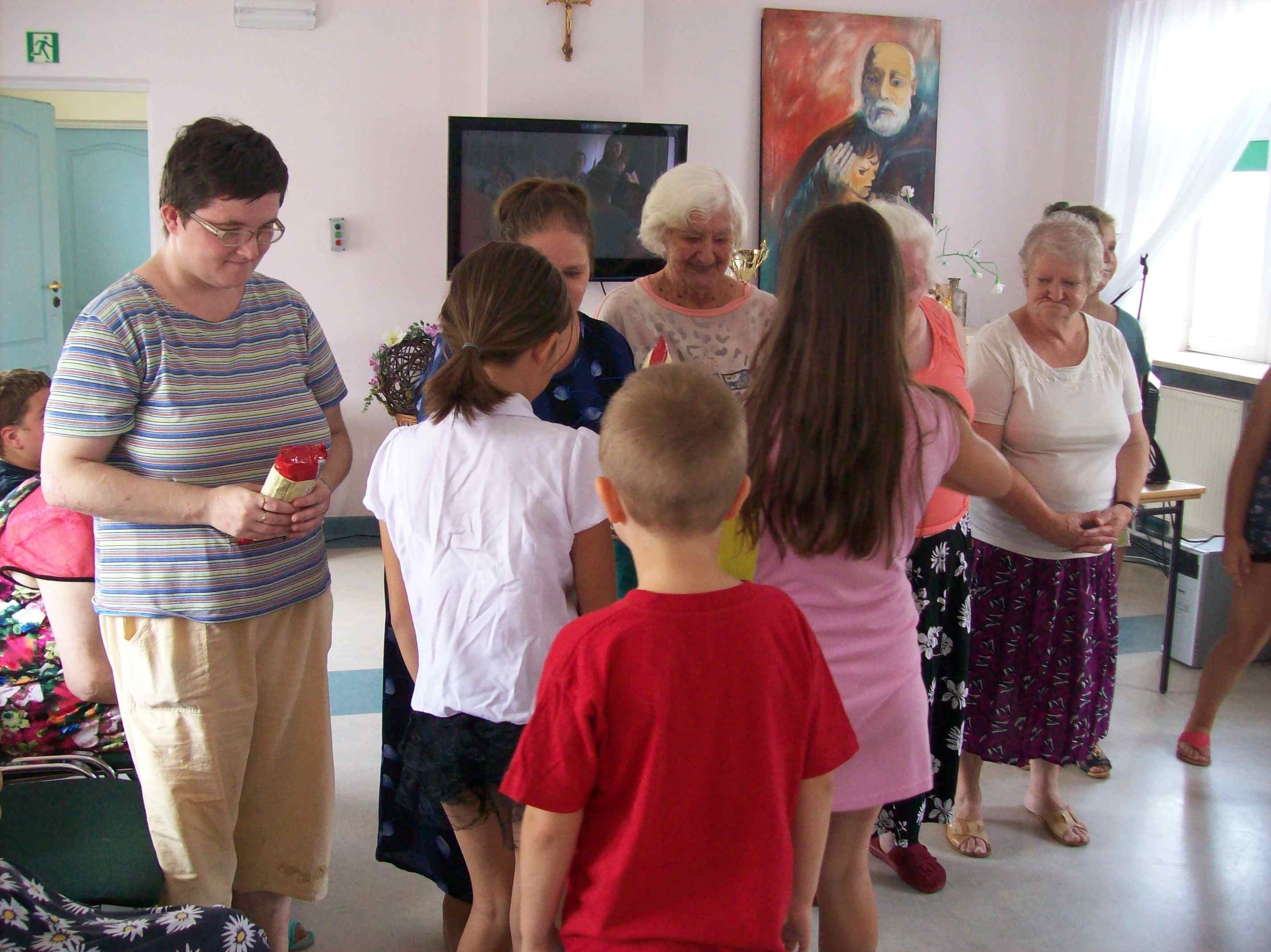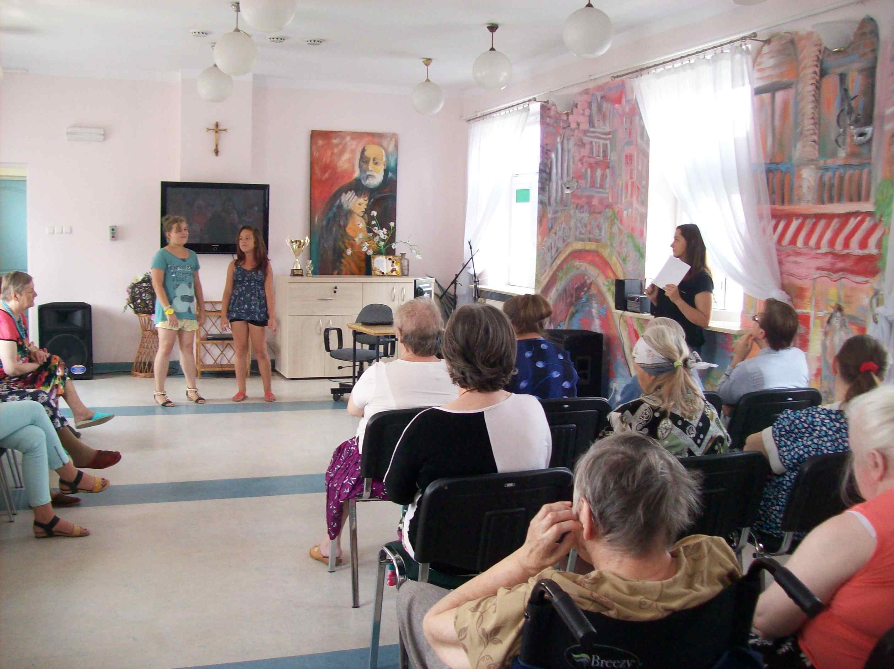 7 sierpnia gościliśmy w naszym Domu grupę teatralną „Nierealni” z Klubu Młodzieżowego „Wolna Strefa”. Mieszkanki przyjęły oklaskami wokalne i kabaretowe popisy młodych artystów i podziękowały im słodyczami. Dziękujemy gościom za świetny występ!