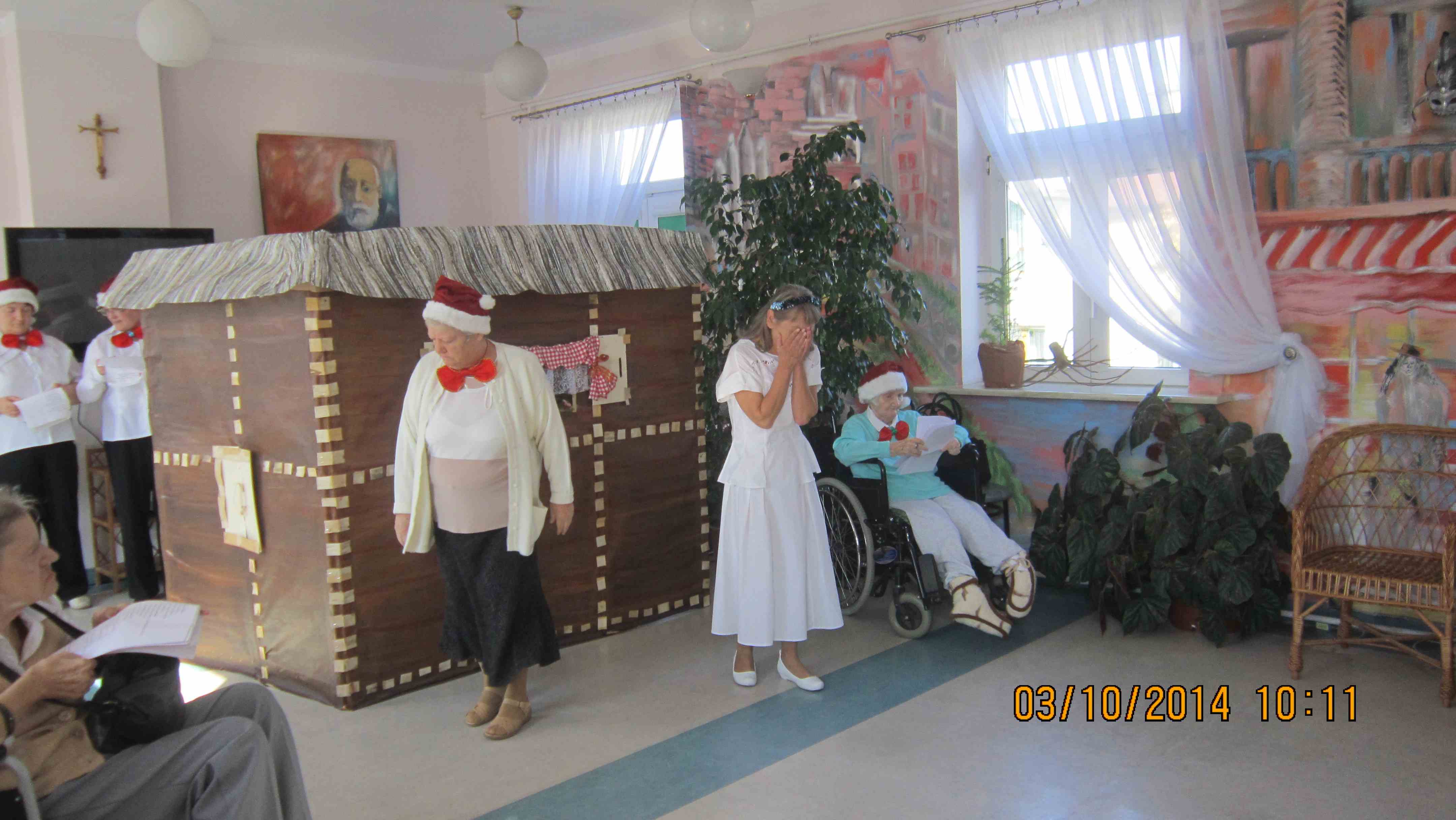 3 października Grupa Teatralna „Albercik” zaprosiła mieszkanki na premierę przygotowywanej w wakacje sztuki „Królewna Śnieżka i siedmiu krasnoludków”. Tradycyjnie mieszkanki w ramach terapii zajęciowej przygotowały swoje stroje i scenografię do spektaklu. W przedstawieniu wystąpiło 13 pań – dla jednej z mieszkanek był to debiut w naszej Grupie. Dziękujemy i gratulujemy udanej premiery!