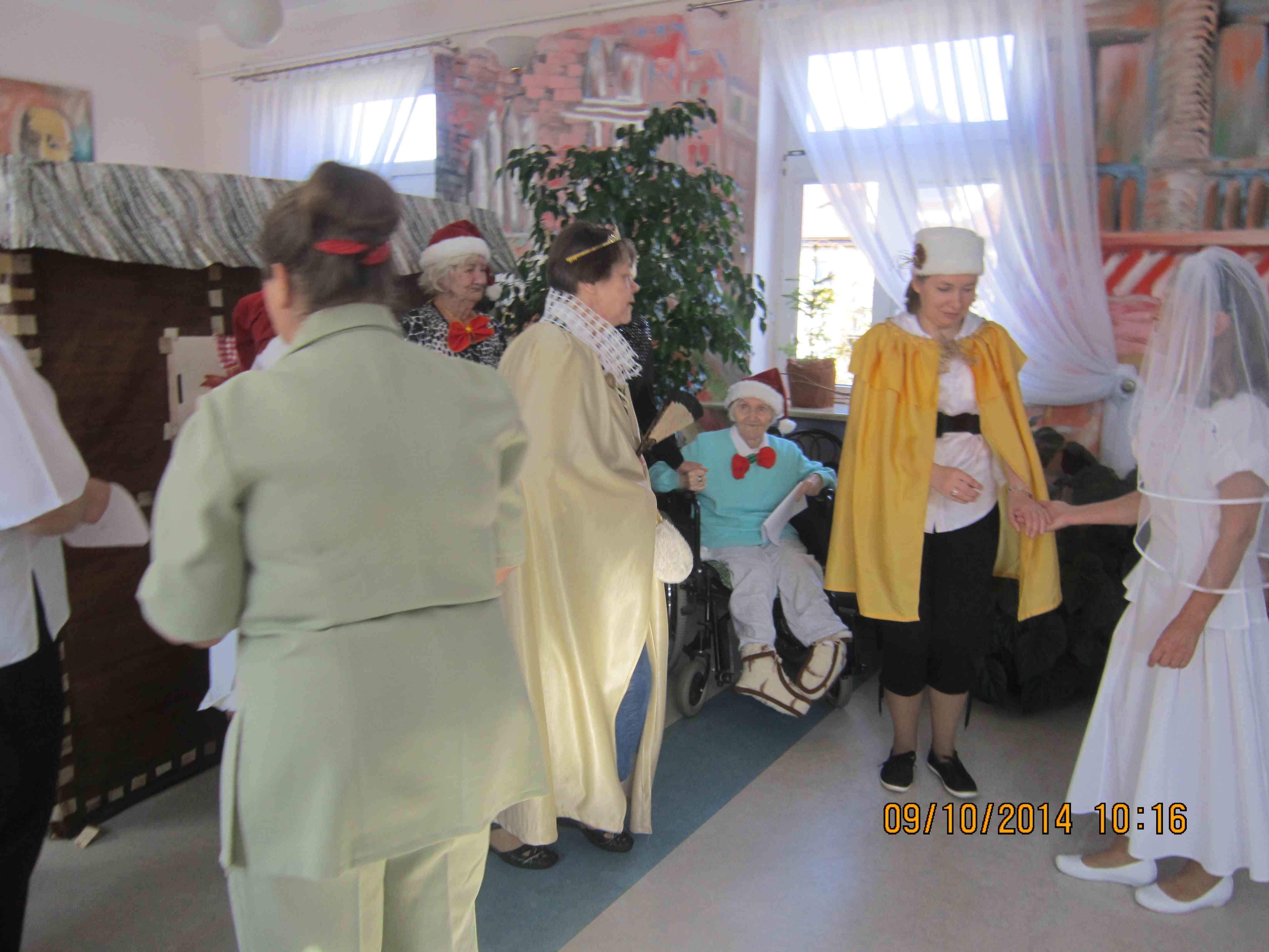 W dn. 9 października, w ramach projektu „Starsi – aktywni – równi”, mieszkanki Domu Pomocy Społecznej im. Św. Brata Alberta zaprosiły członków Kieleckiego Domu pod Fontanną na spotkanie integracyjne połączone z prezentacją spektaklu „Królewna Śnieżka i siedmiu krasnoludków”. Sztuka została owacyjnie przyjęta, po występie mieszkanki przyjmowały gratulacje w kawiarence. Kolejne spotkania mieszkanek i członków Kieleckiego Domu pod Fontanną w ramach realizacji projektu będą miały miejsce przy okazji wspólnych wyjść do Teatru im. S. Żeromskiego – 10 października grupa wybiera się na spektakl „Hemar poeta przeklęty”, a 15 października na „Antygonę”.