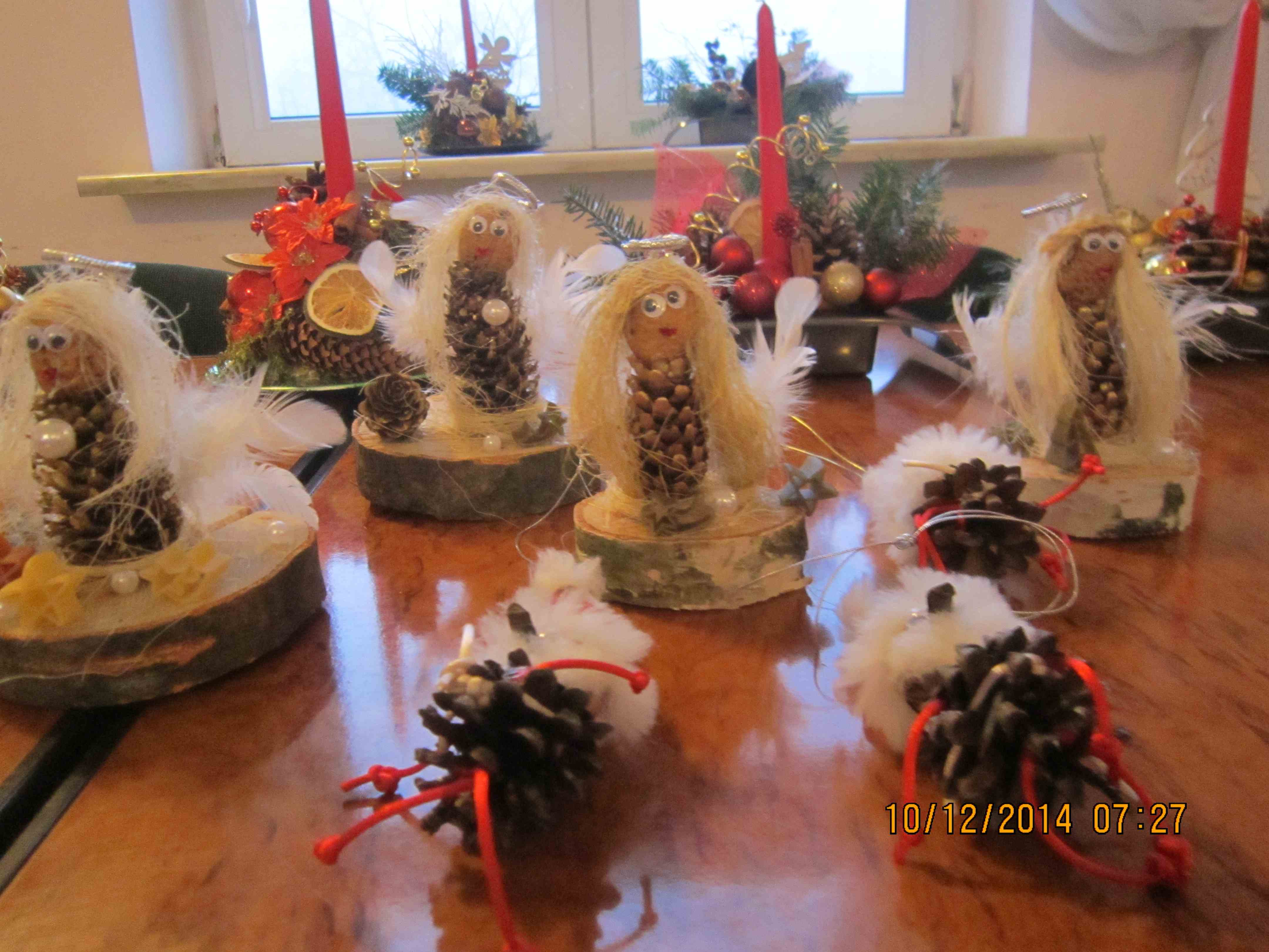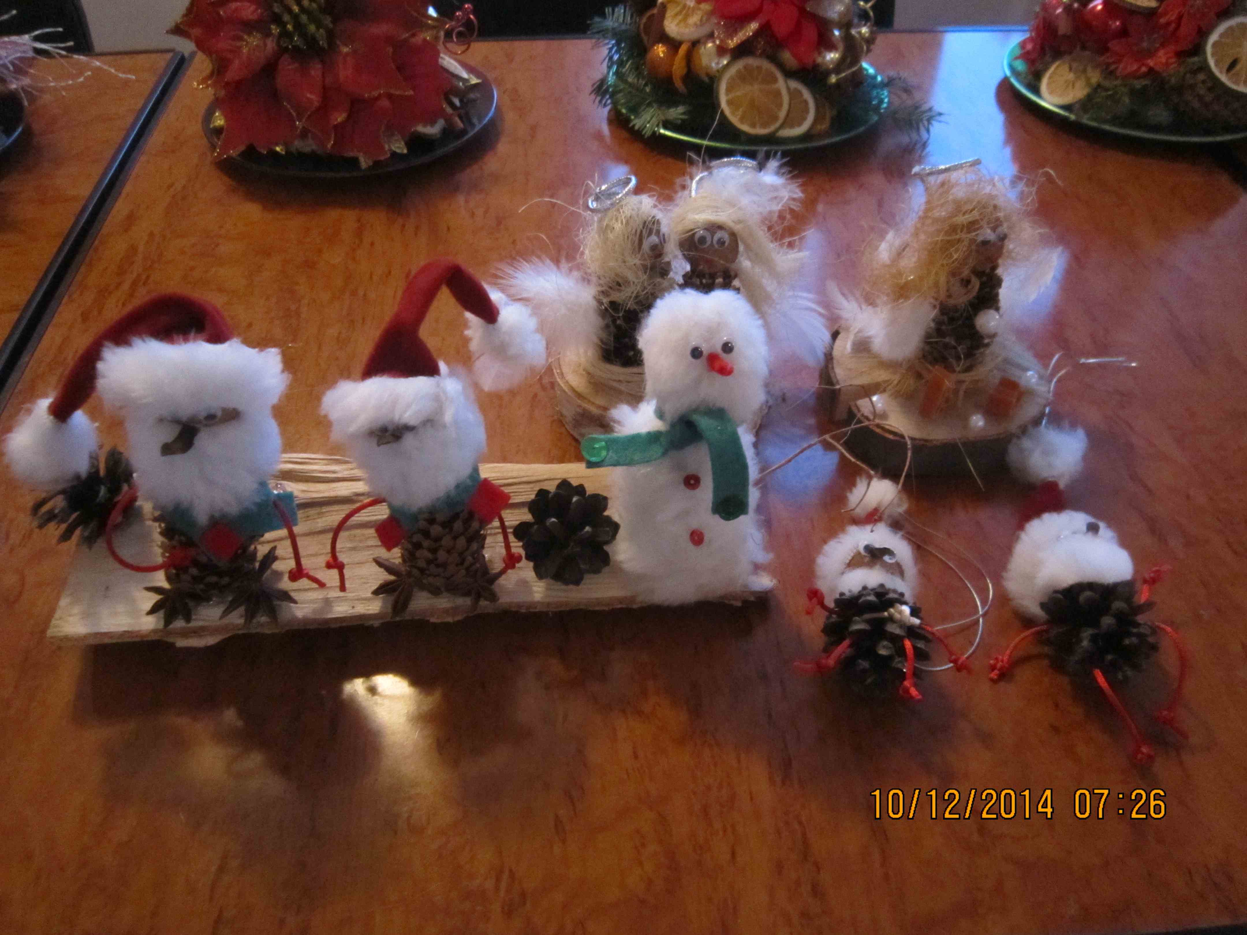 Okres świąteczny to czas wzmożonej pracy w ramach terapii zajęciowej. Podczas zajęć mieszkanki wykonywały m.in. ozdoby z szyszek i orzechów – mikołajki i aniołki, szydełkowe ozdoby na choinkę, haftowane serwetki i elementy na kartki świąteczne, tradycyjne stroiki. Dziękujemy za pomysły i instruktaż naszej terapeutce Pani Kindze Groszczyńskiej-Mazur!