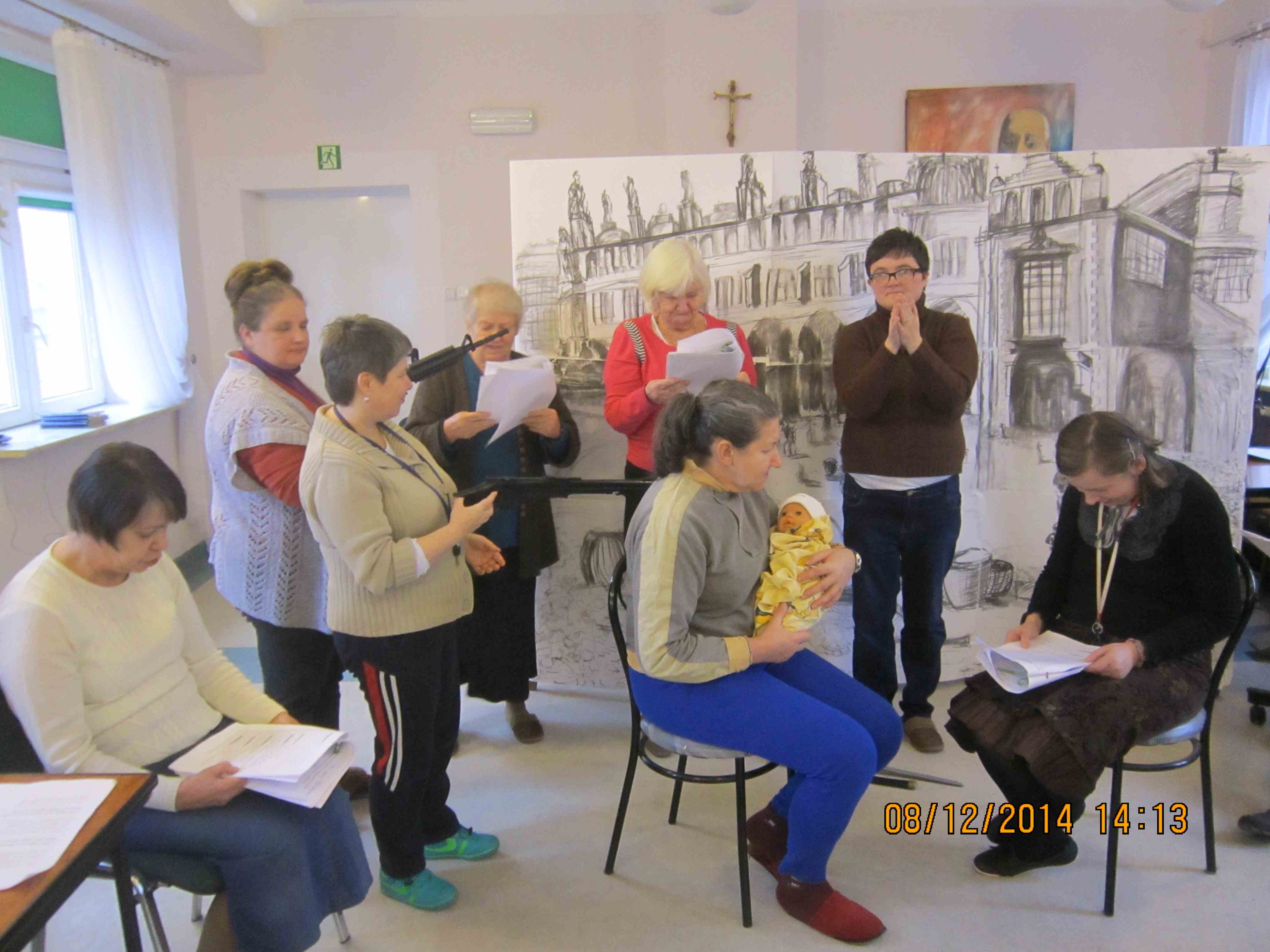 Mieszkanki – uczestniczki zajęć grupy teatralnej „Albercik” kontynuują próby do jasełek. Gotowe są już stroje dla aktorów, jesteśmy w trakcie przygotowywania scenografii, panie ćwiczą swoje role. Grupa teatralna liczy już 15 osób! Planowana premiera przypada na przełom grudnia i stycznia!