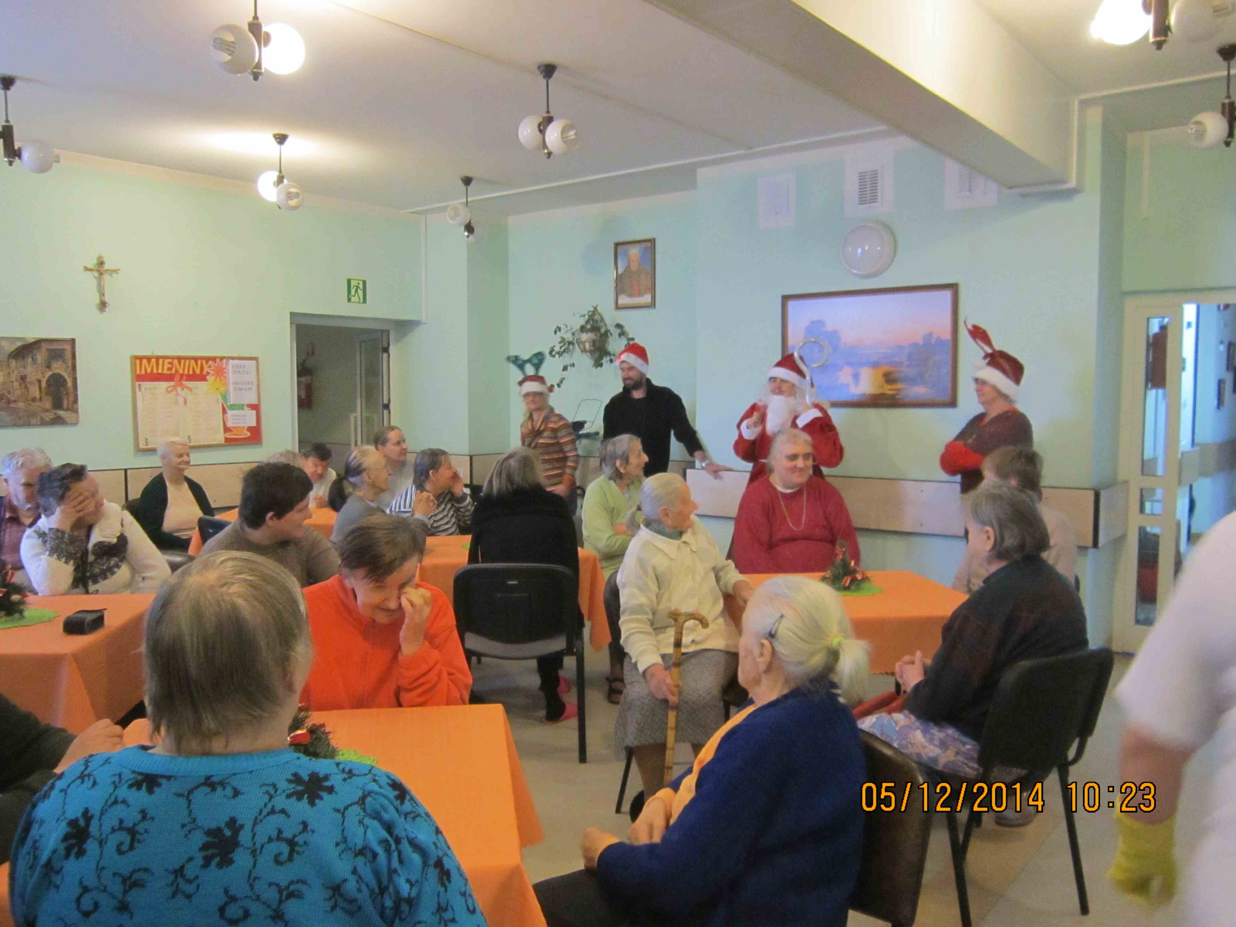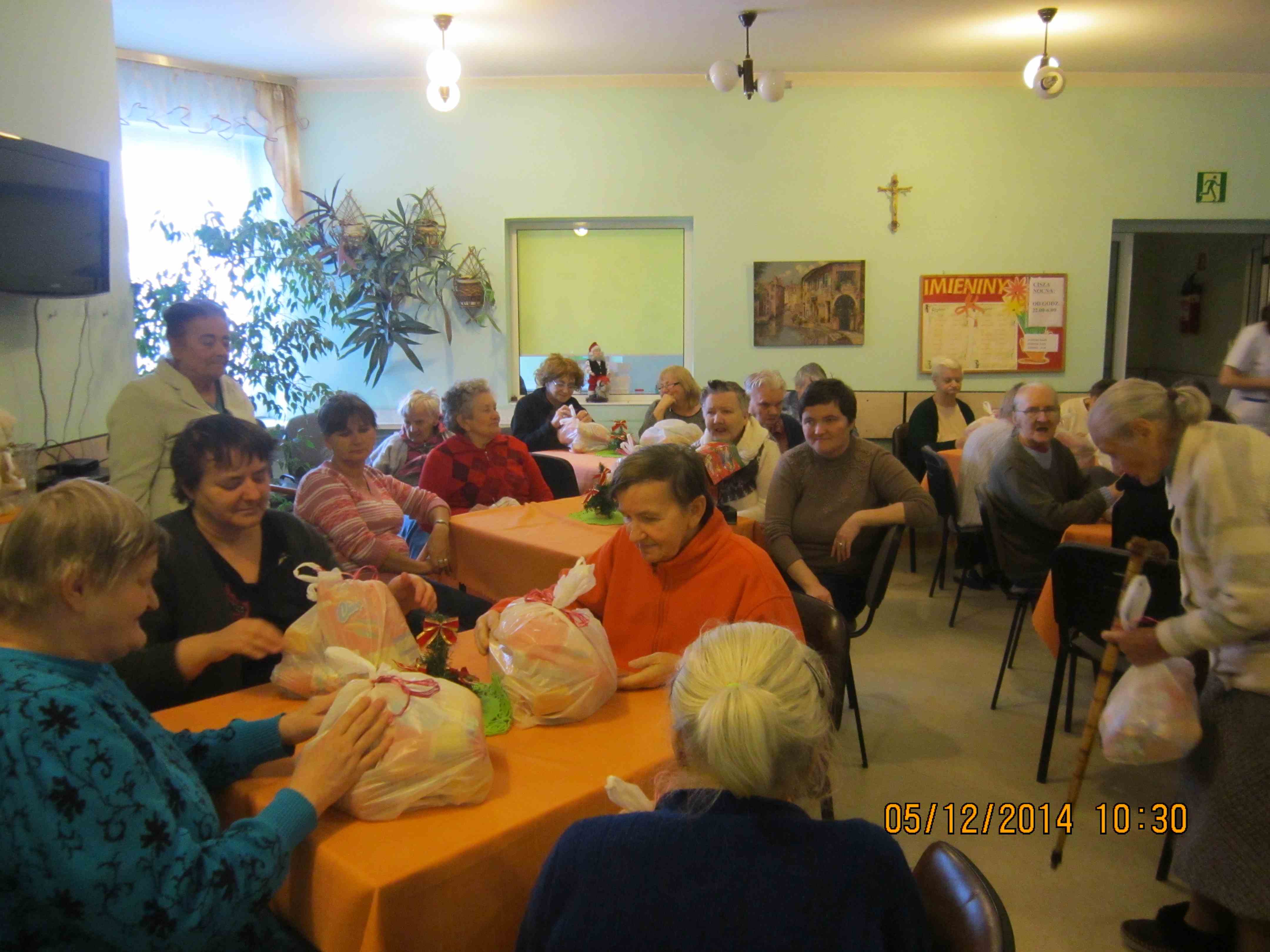 Mieszkanki DPS im. Św. Brata Alberta odwiedził Św. Mikołaj! Każda z Pań dostała w tym dniu prezent, odbierając go osobiście od Mikołaja! Popołudnie spędziliśmy w kawiarni na konsumpcji pierniczków przygotowanych dzień wcześniej na zajęciach kulinarnych. Z okazji Mikołajek w DPS odbyła się też mikołajkowa audycja radiowa (dzięki naszemu radiowęzłowi) z konkursami – dziękujemy mieszkankom za udział, zwycięzcom gratulujemy nagród :)
