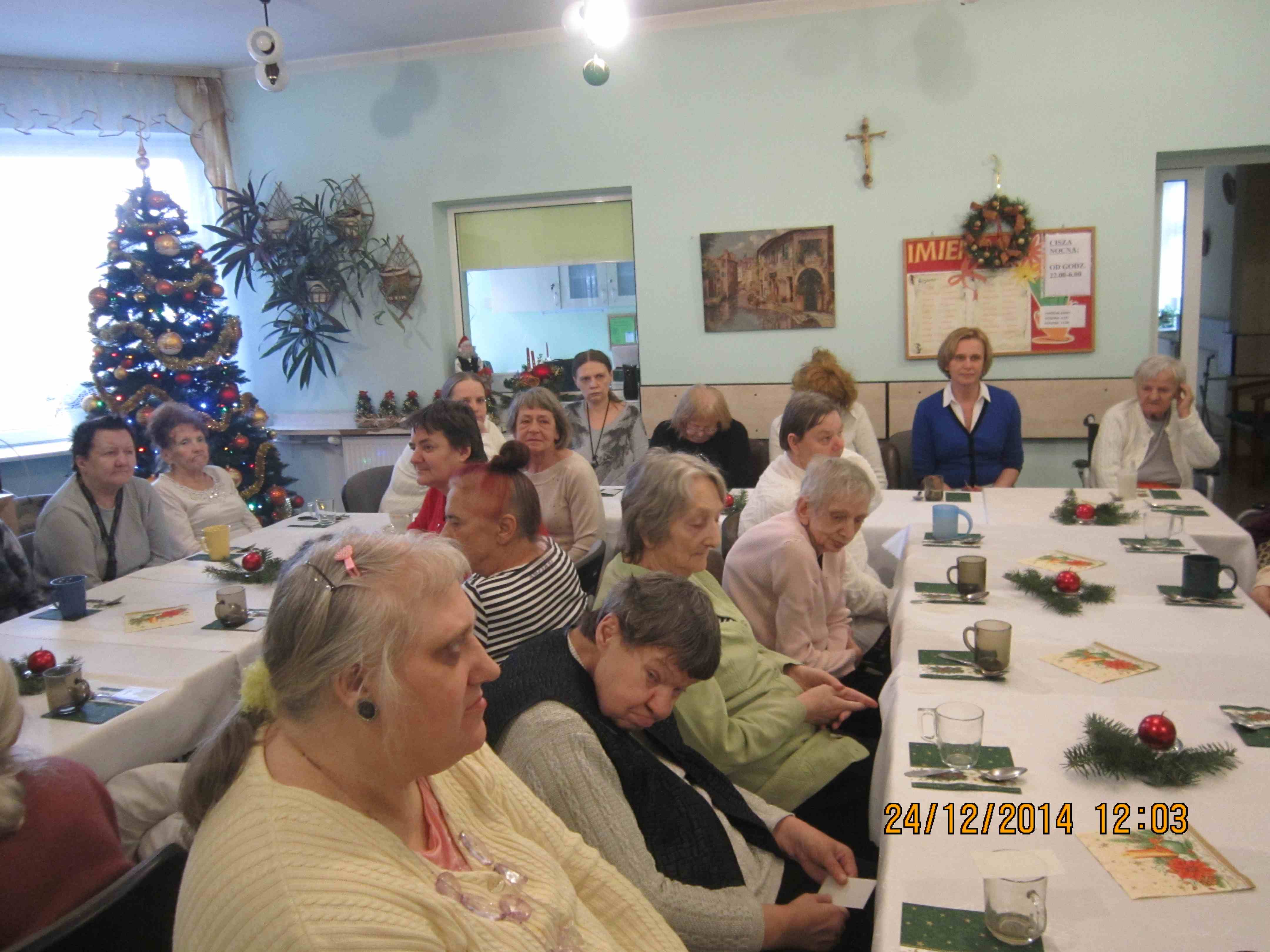 Wigilię mieszkanki spędzały razem śpiewając kolędy i spożywając tradycyjne wigilijne potrawy. Stoły i świetlice na oddziałach były w tym dniu wyjątkowo przygotowane. Święta rozpoczęły się od wspólnego przełamania opłatkiem i składania życzeń. Mieszkanki otrzymały upominki gwiazdkowe.