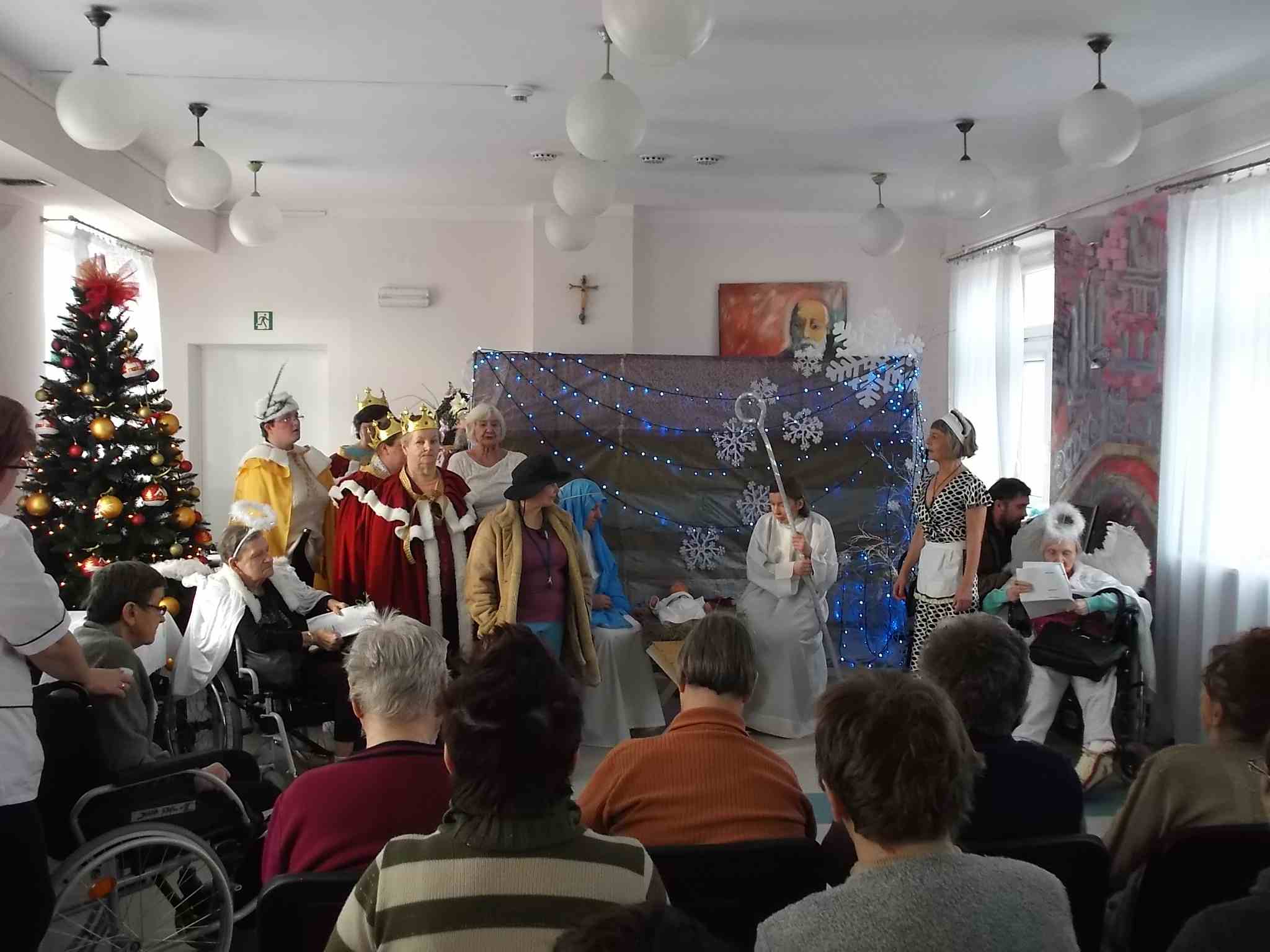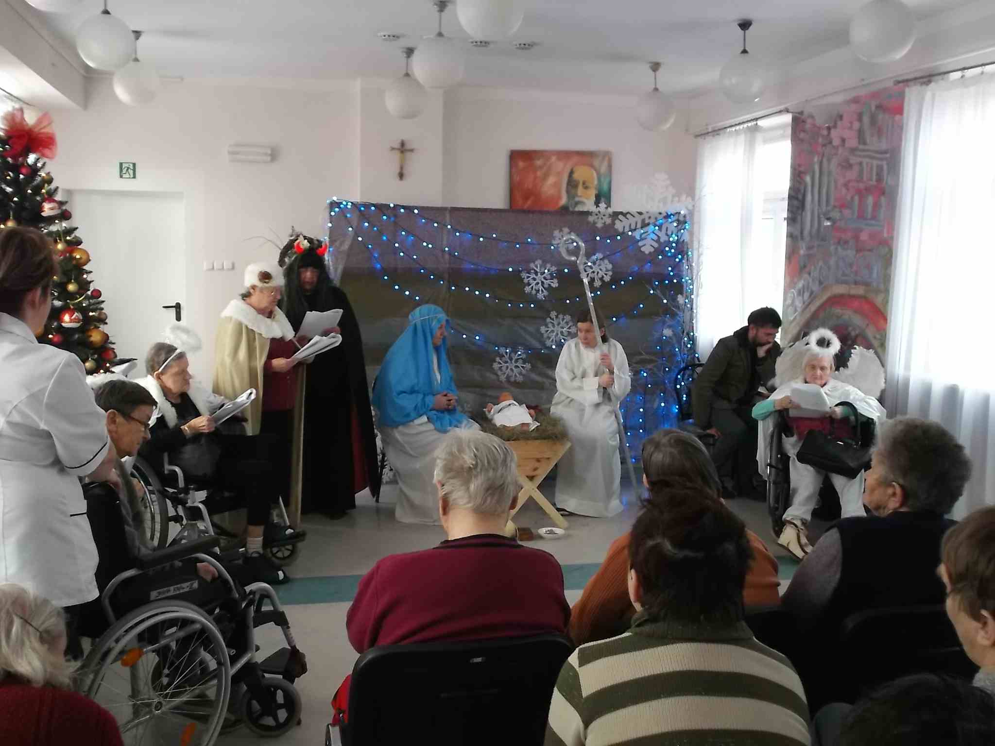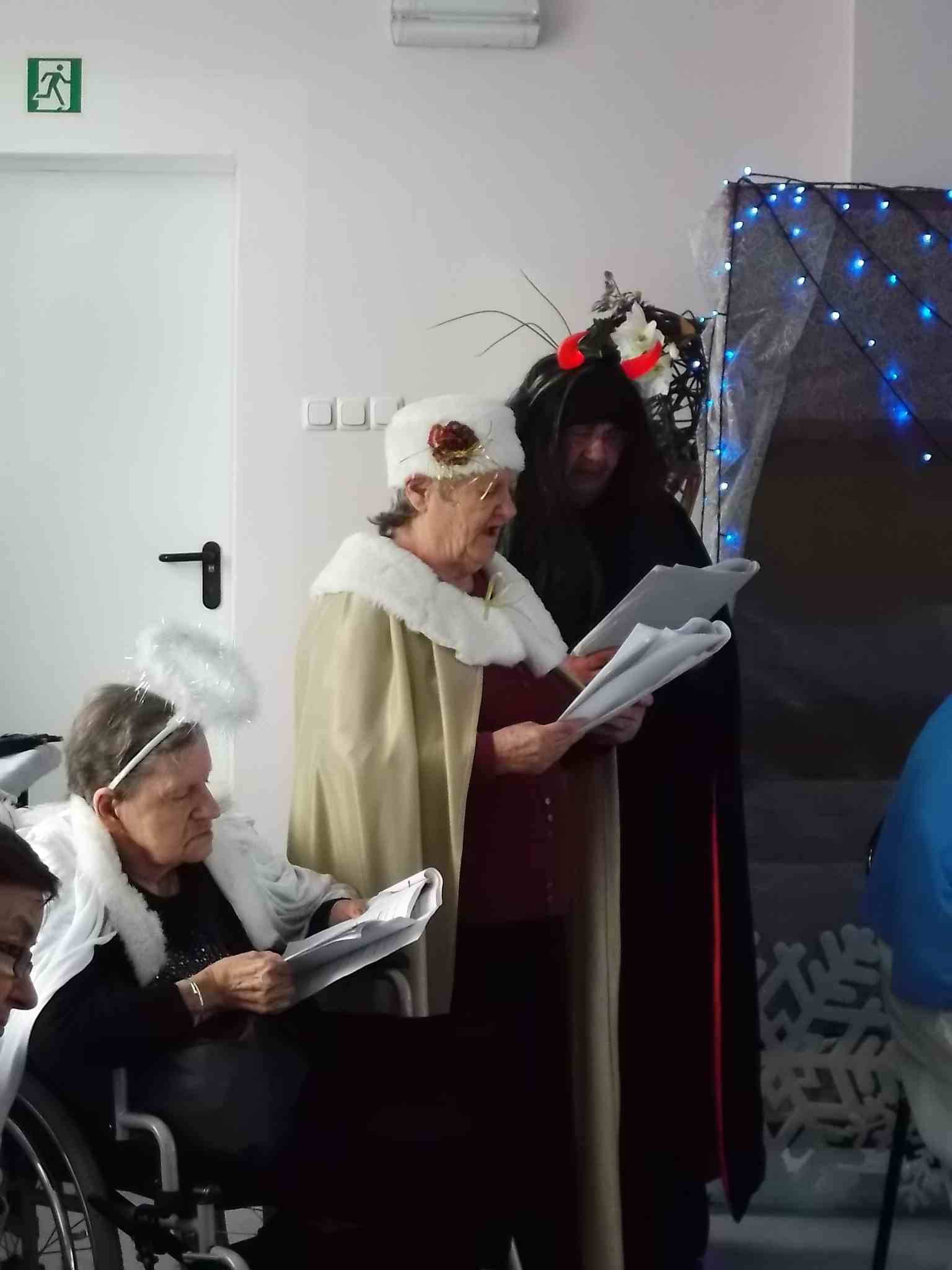 Grupa Teatralna „Albercik” zaprosiła mieszkanki naszego Domu na Jasełka. Spektakle przygotowywane przez Grupę cieszą się dużym zainteresowaniem wśród mieszkanek, które chętnie oklaskują swoje koleżanki występujące na scenie. W następnym tygodniu przedstawienie zaprezentujemy zaproszonym gościom, spodziewamy się również występów o tematyce świątecznej, które w naszym Domu pokażą inne grupy.