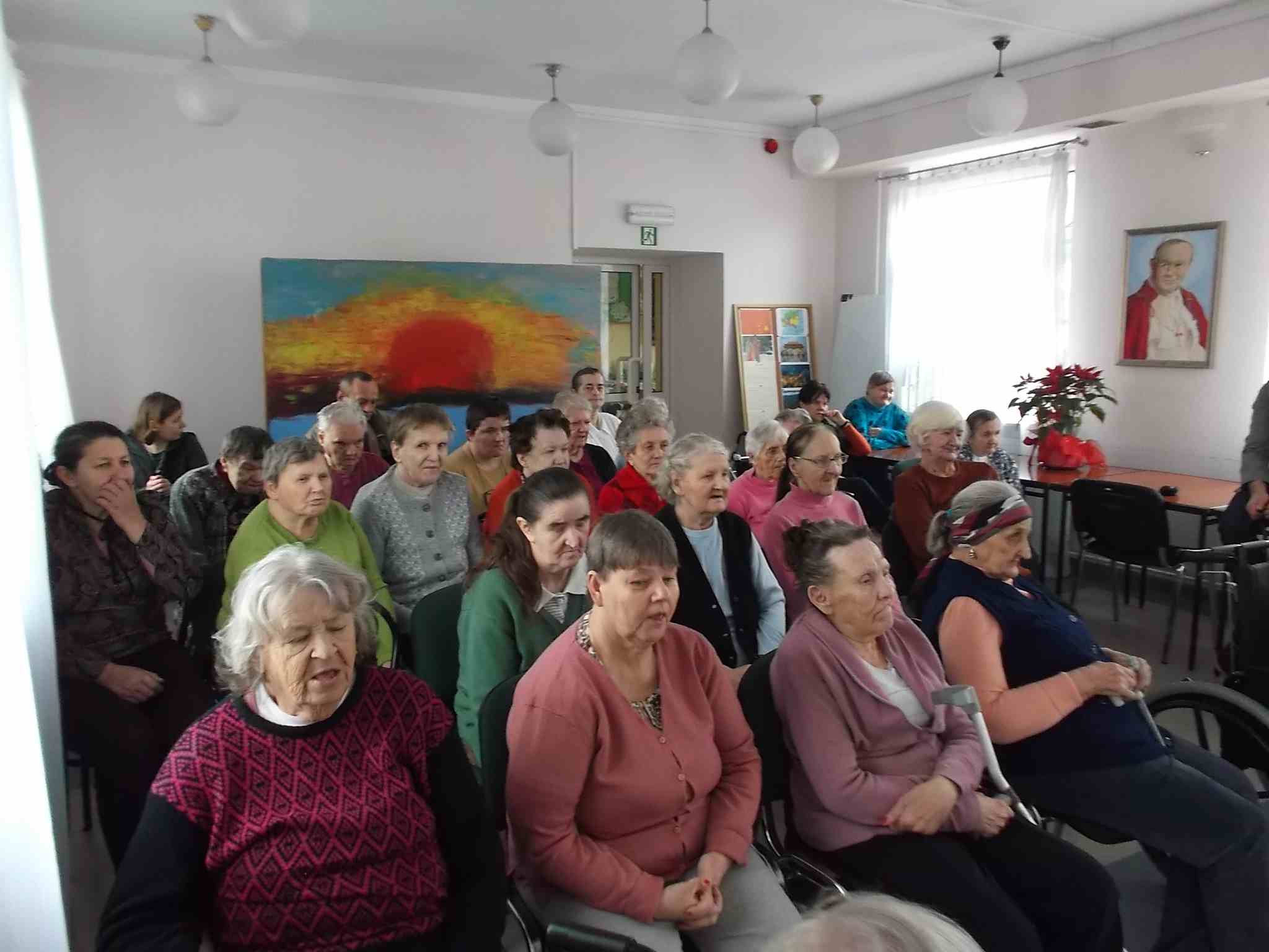 W dn. 26.02.2015 nasz Dom ponownie odwiedziła Pani Zofia Dulęba, tradycyjnie z przygotowanym repertuarem piosenek – tym razem ludowych. Mieszkanki chętnie śpiewały w duecie z naszym gościem, same wykonywały wybrane przez siebie piosenki lub poddawały Pani Zofii swoje propozycje. Na kolejne wspólne śpiewanie zapraszamy już w marcu.