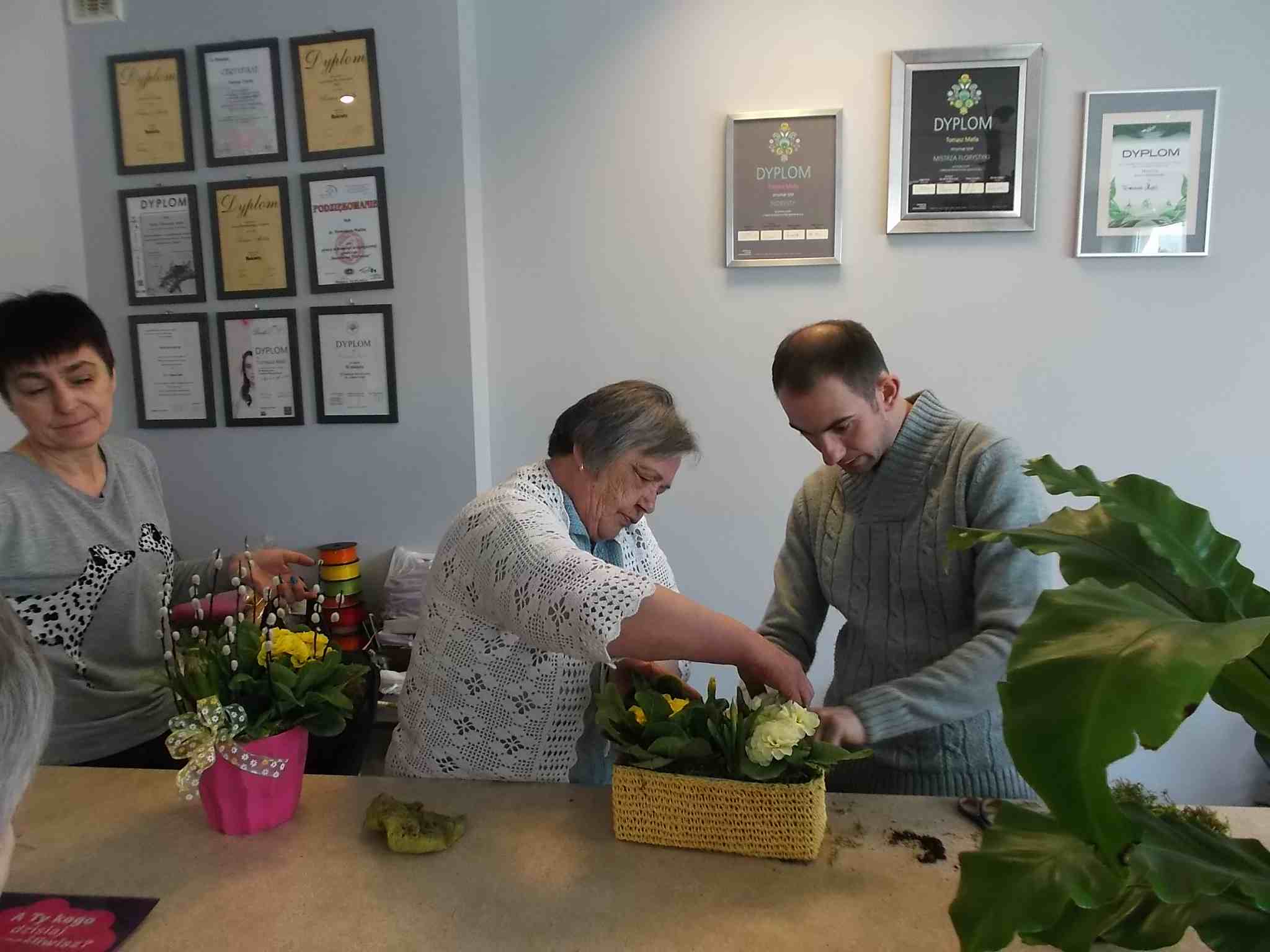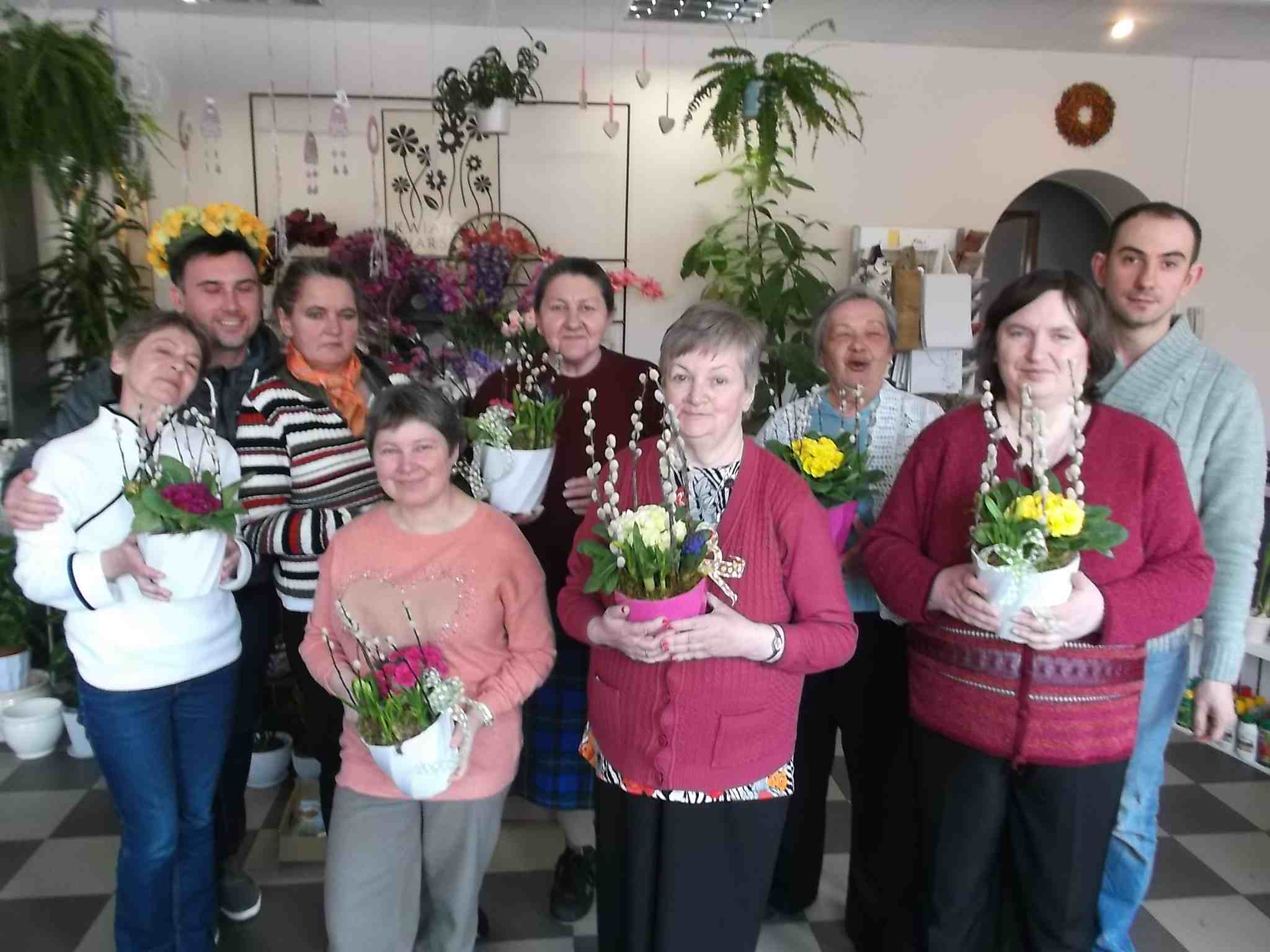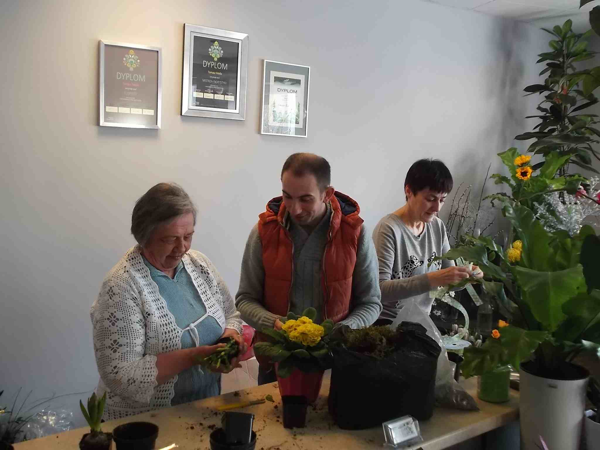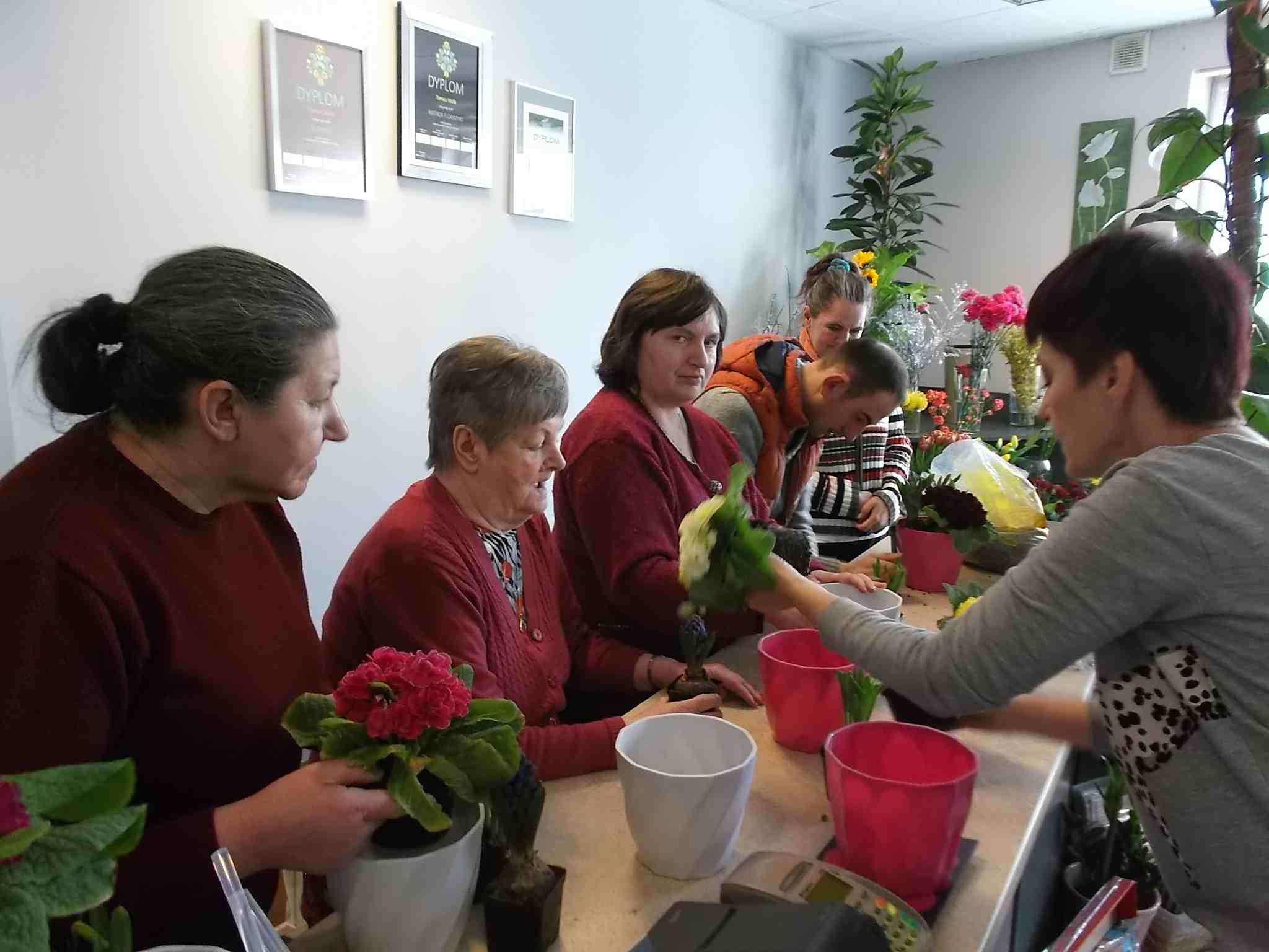 Podobnie jak wiosną zeszłego roku skorzystaliśmy z zaproszenia na zajęcia florystyczne do „Kwiatowego warsztatu”. Mieszkanki pod kierunkiem florysty przygotowały kompozycje z żywych roślin – prymuli, hiacyntów i żonkili. Praca z żywymi roślinami sprawia naszym paniom wielką radość – piękne efekty tej pracy przedstawiamy na zdjęciach!