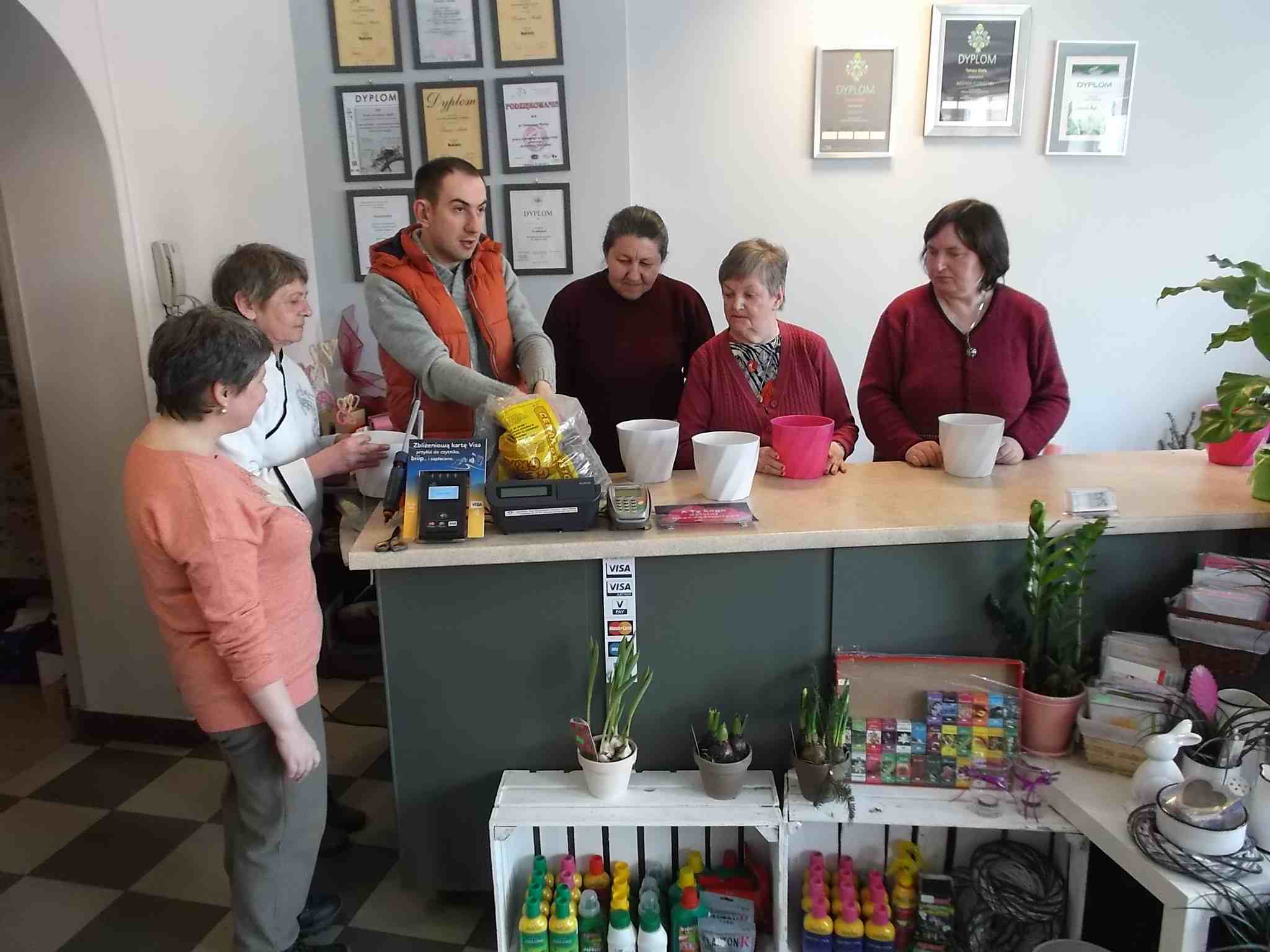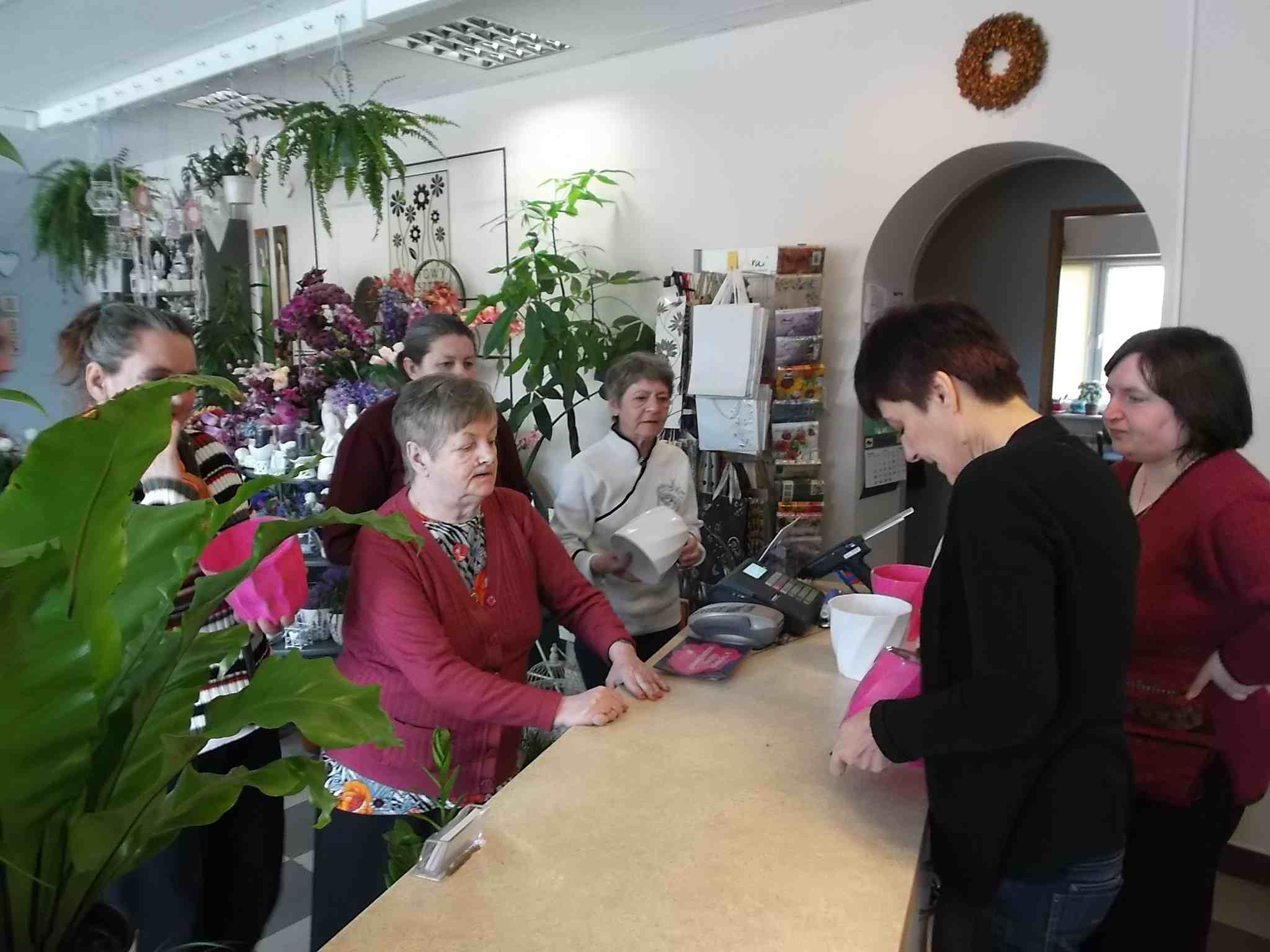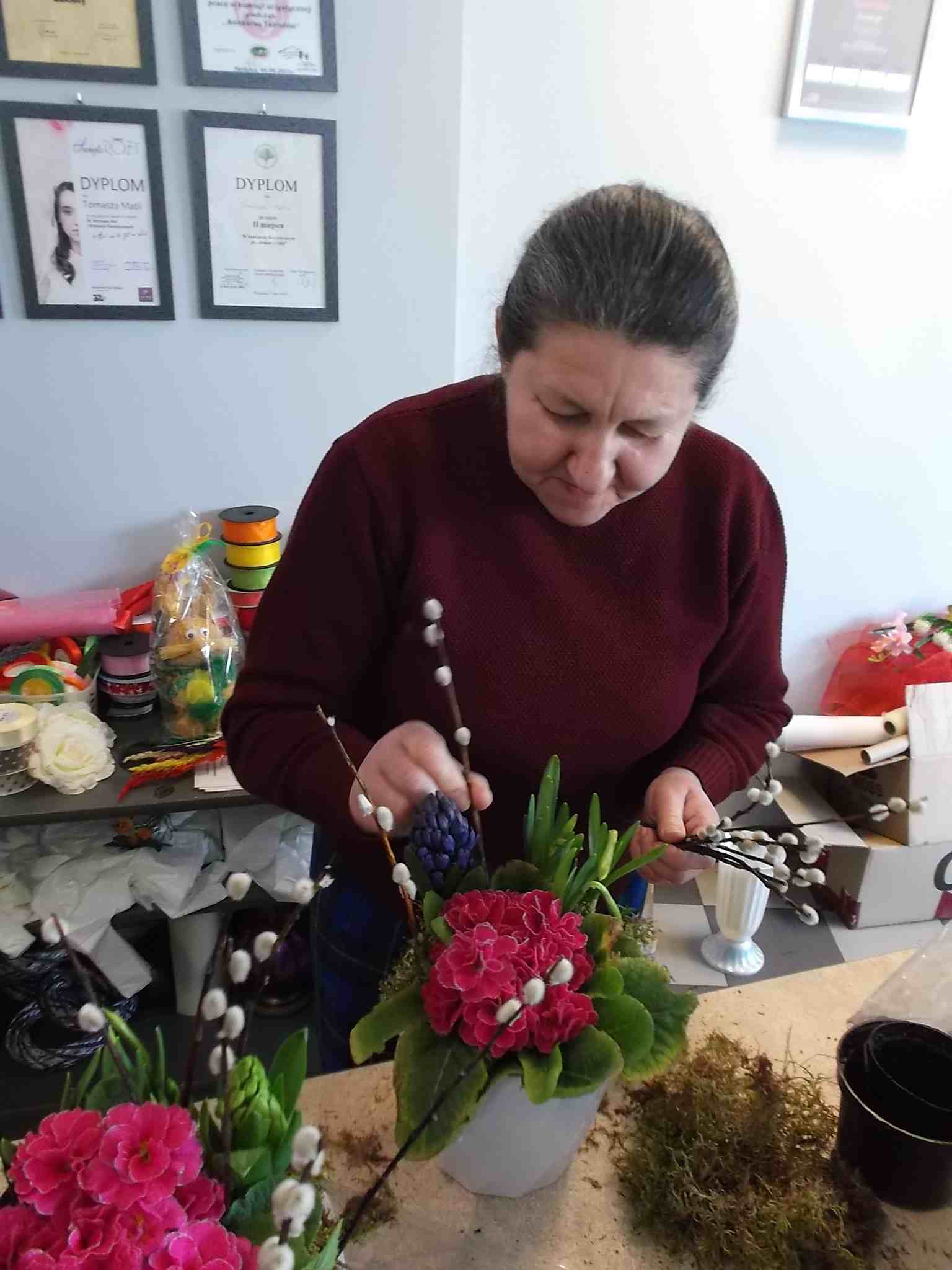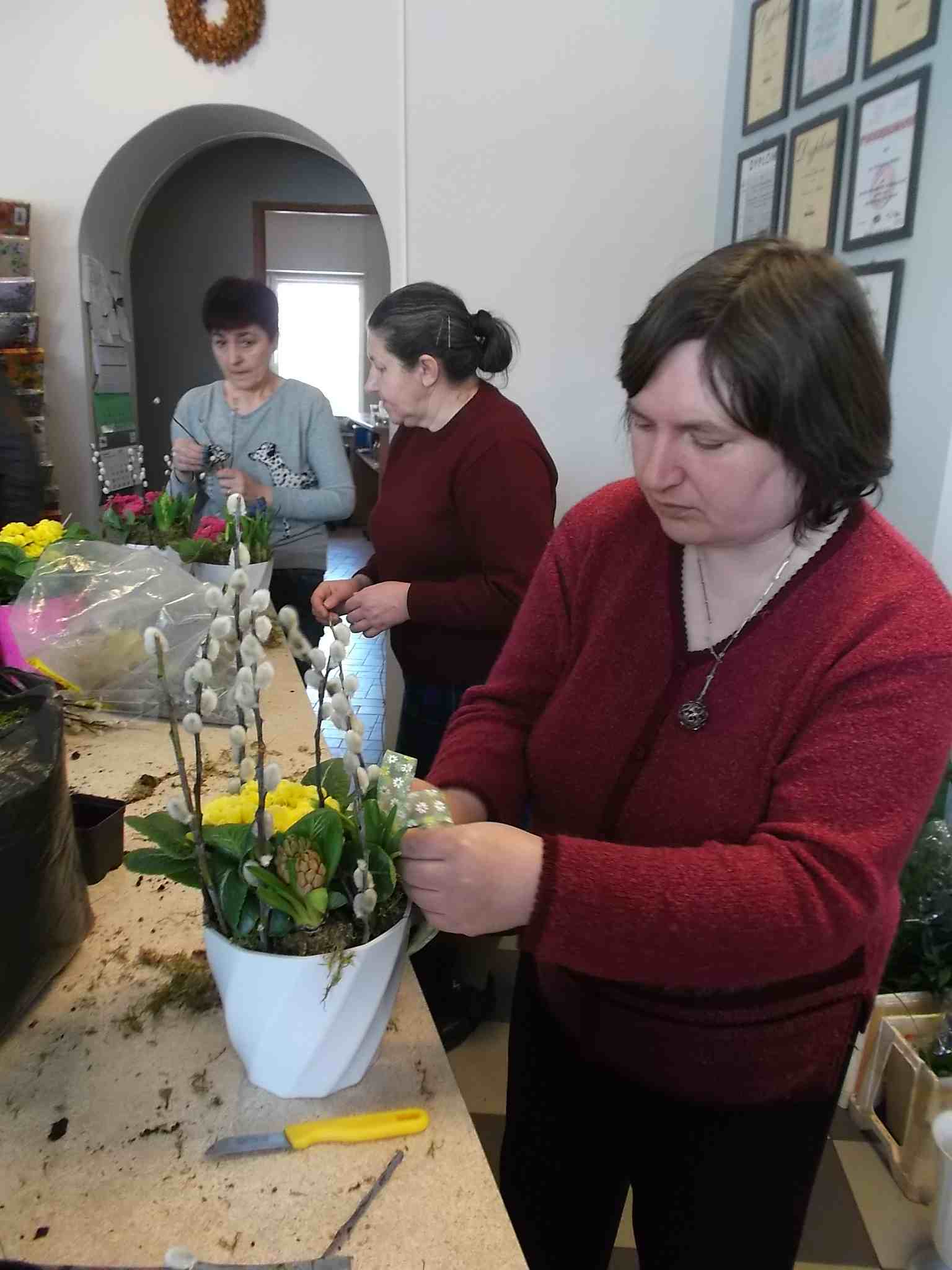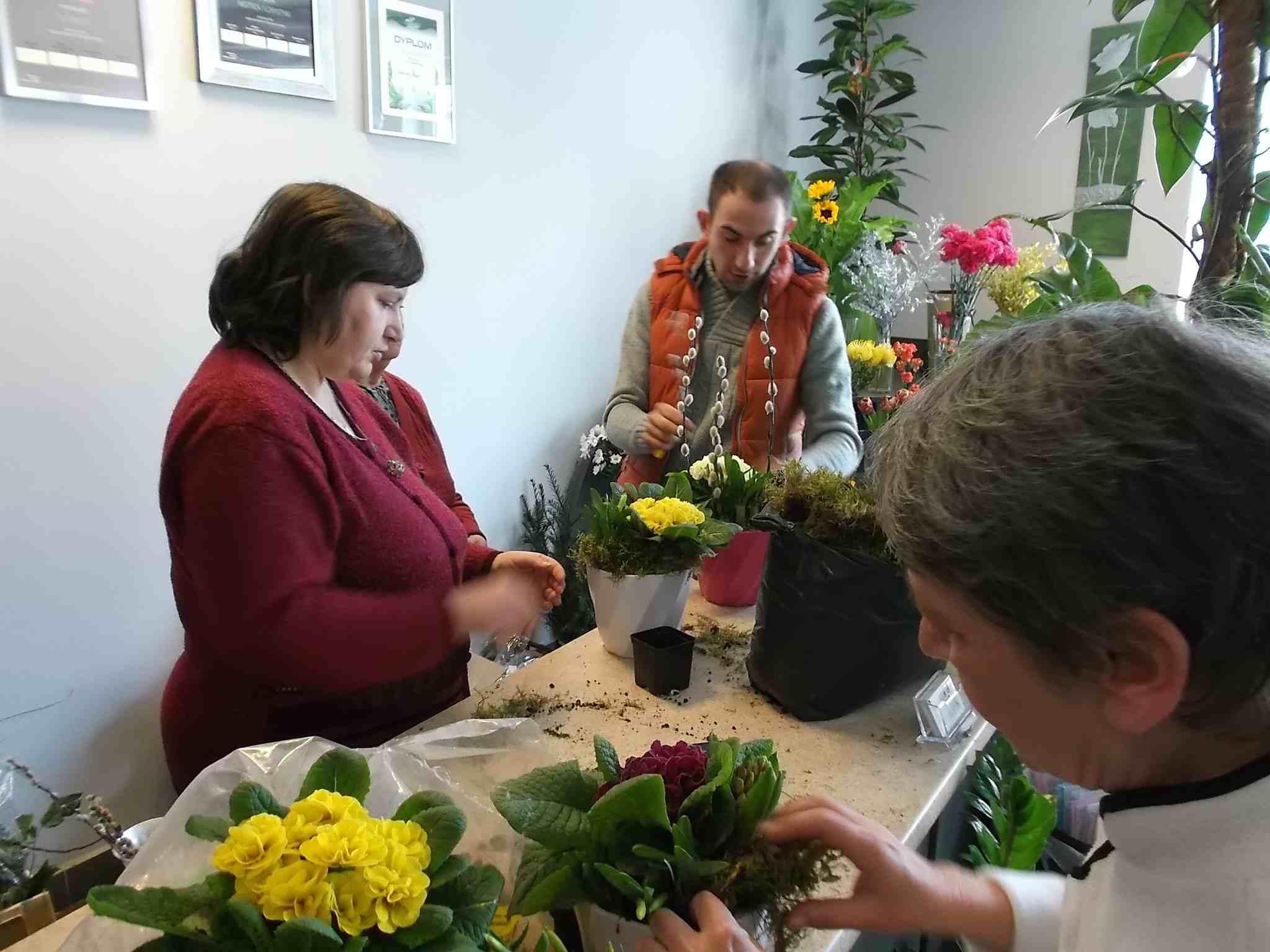 Podobnie jak wiosną zeszłego roku skorzystaliśmy z zaproszenia na zajęcia florystyczne do „Kwiatowego warsztatu”. Mieszkanki pod kierunkiem florysty przygotowały kompozycje z żywych roślin – prymuli, hiacyntów i żonkili. Praca z żywymi roślinami sprawia naszym paniom wielką radość – piękne efekty tej pracy przedstawiamy na zdjęciach!