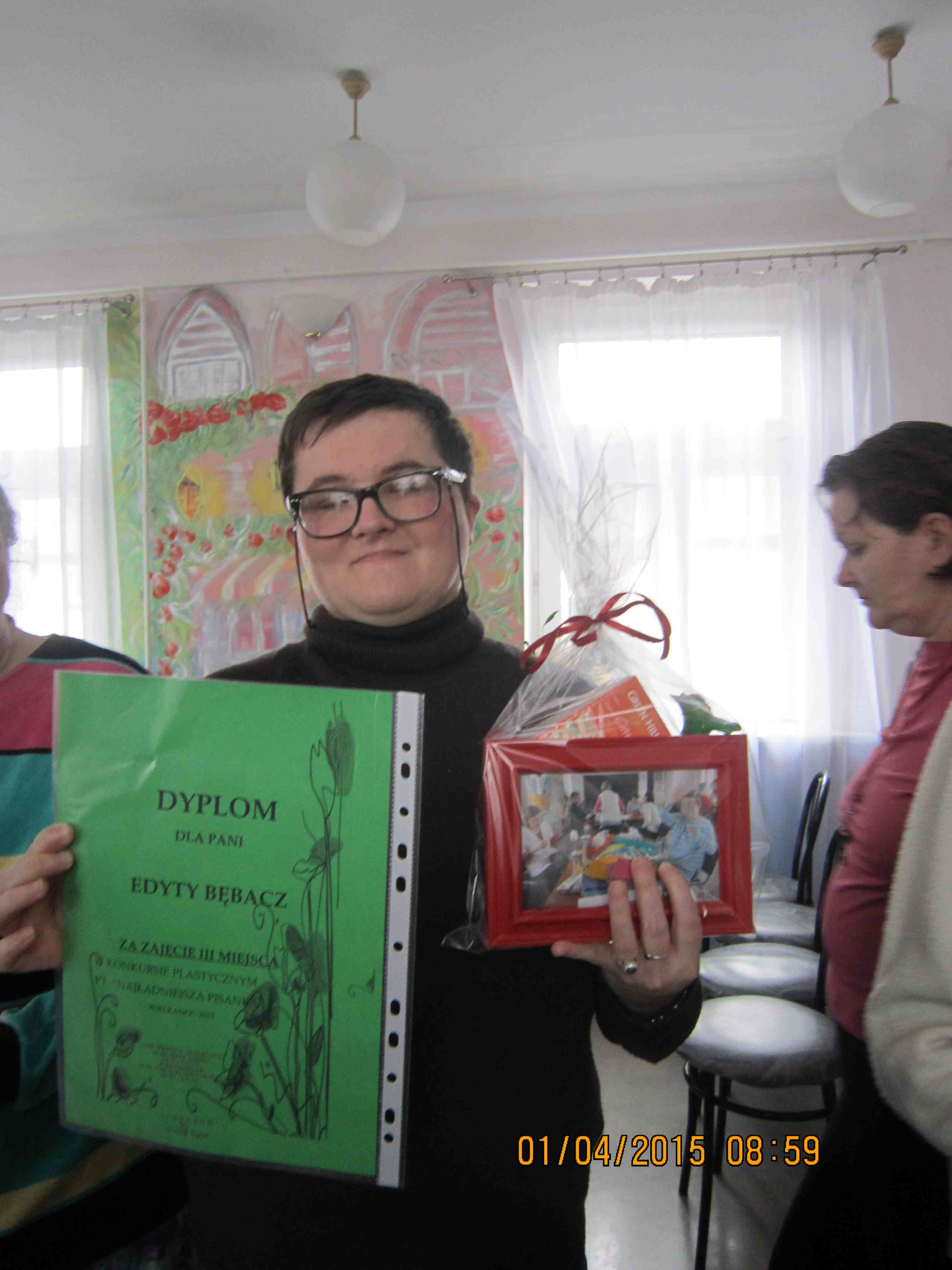 Nagrody w konkursie na najładniejszą pisankę już rozdane! Obok drobnych upominków nasze laureatki – Panie: Dorota, Aneta, Edyta, Anna i Bogusława, otrzymały pamiątkowe dyplomy. Nagrodzone prace plastyczne ozdobiły ścianę obok naszej pracowni terapeutycznej. Gratulujemy uczestniczkom i dziękujemy za udział w konkursie!