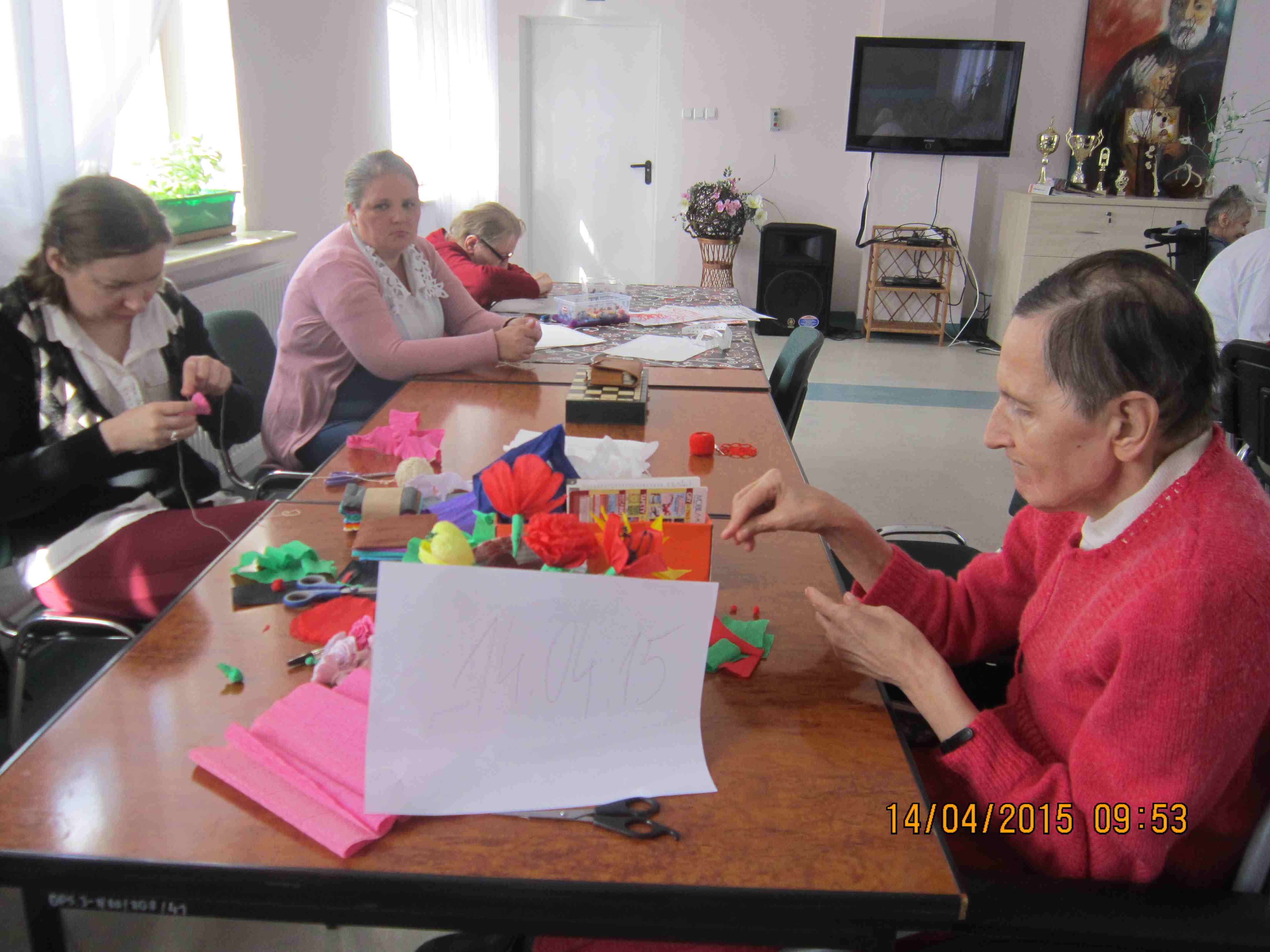 Na zajęciach na świetlicy czytamy, ćwiczymy pamięć i spostrzegawczość przy „wykreślankach” i przygotowujemy wiosenne kwiaty z bibuły…
