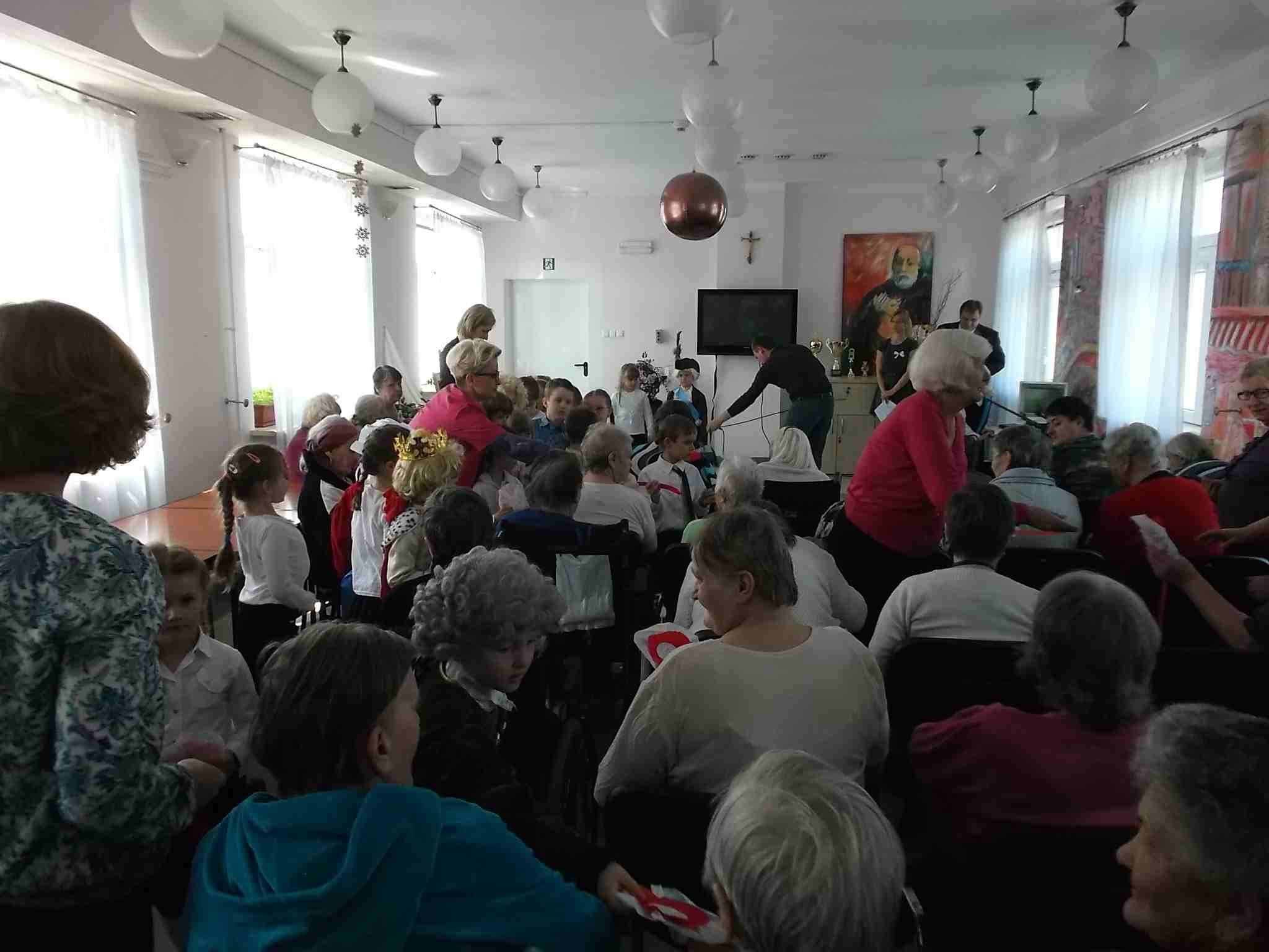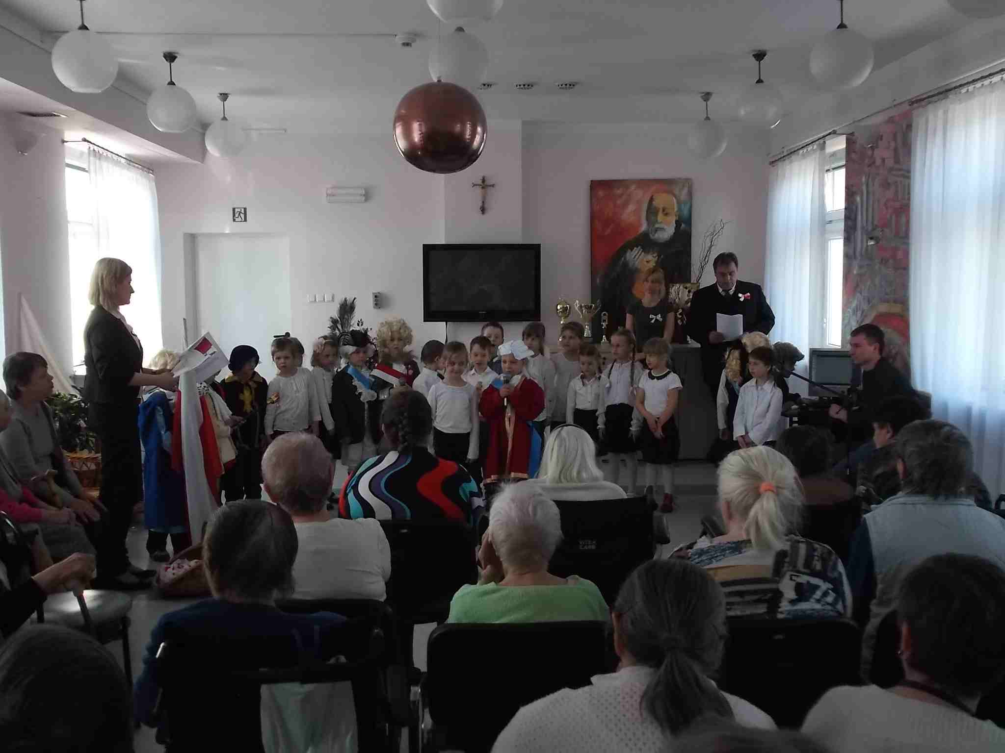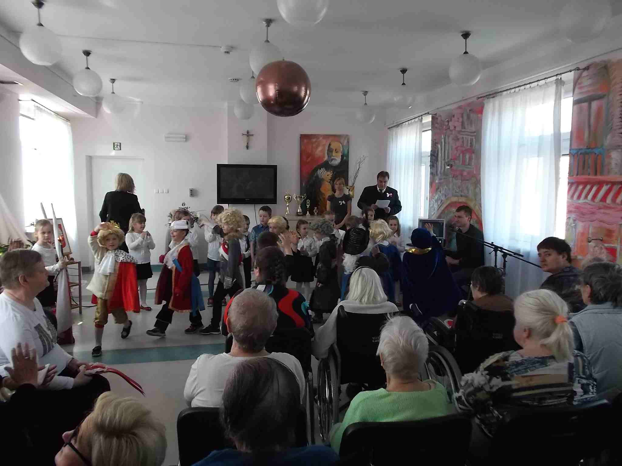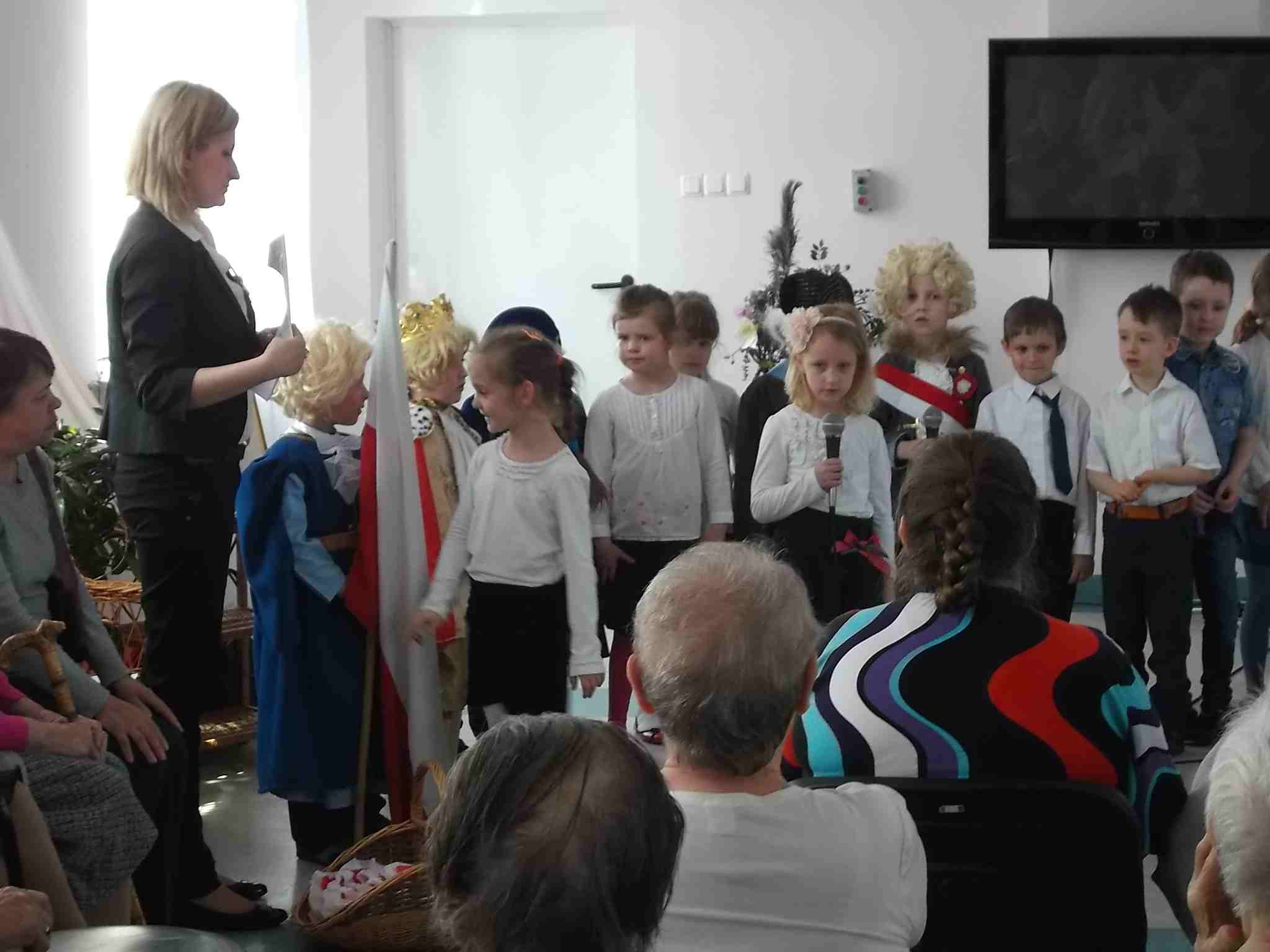 W dn. 28.04.2015 z występem z okazji rocznicy uchwalenia Konstytucji 3 Maja odwiedzili nas goście – dzieci z zerówki (klasa A) ze Szkoły Podstawowej nr 32 w Kielcach. Dzieci pod kierunkiem swojej nauczycielki – Pani Ilony Błaszak, przy aktywnym wsparciu rodziców, przedstawiły znakomity program artystyczny. Był śpiew, recytacja, wspaniałe stroje przygotowane na ten dzień przez mamy uczniów i kotyliony, którymi dzieci obdarowały mieszkanki. To był w pełni profesjonalny występ! Raz jeszcze dziękujemy za przyjemność, jaką nam Państwo sprawiliście!
