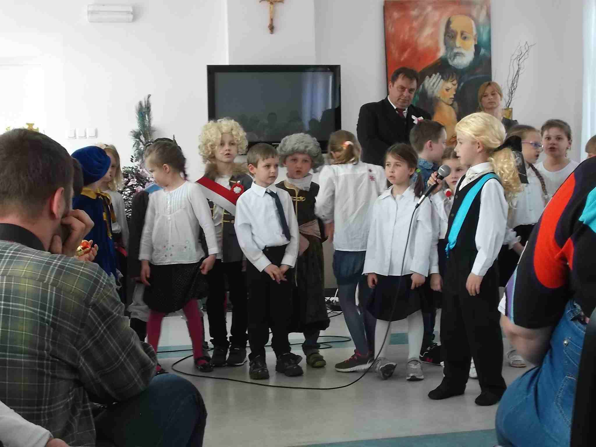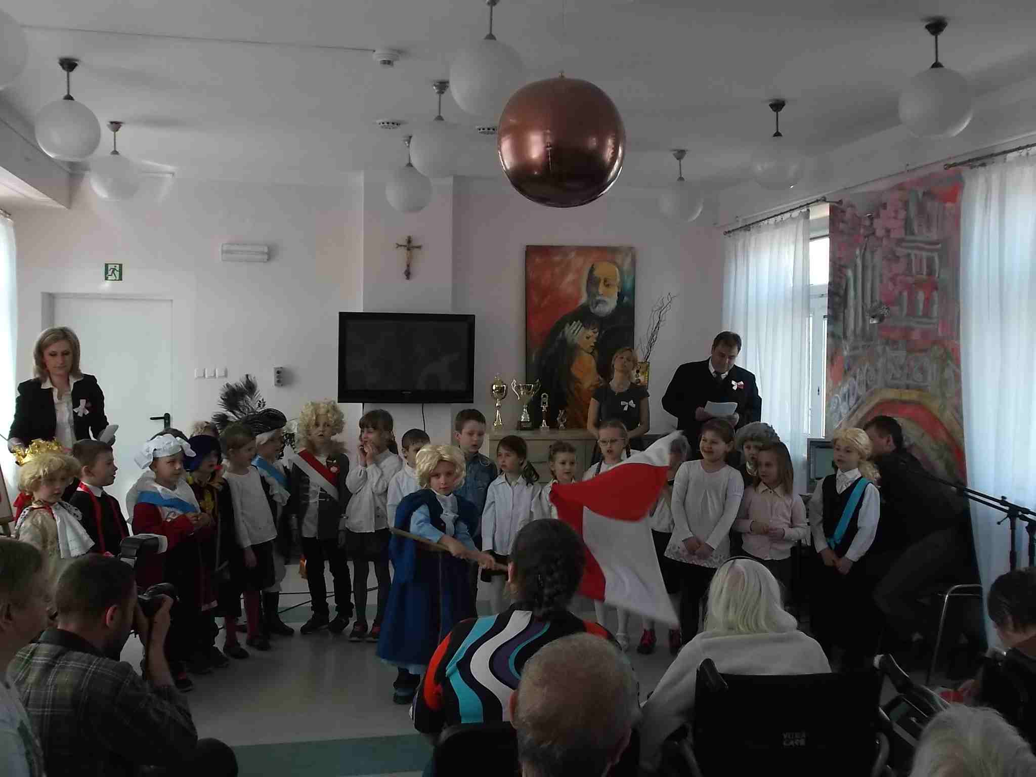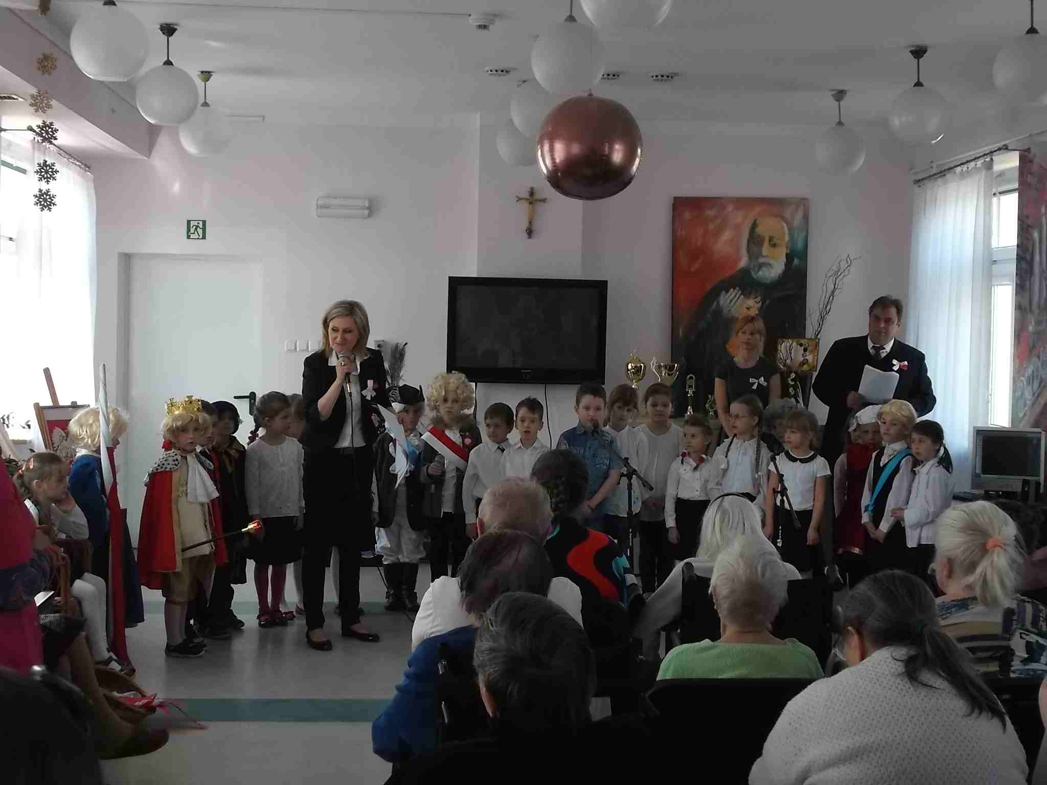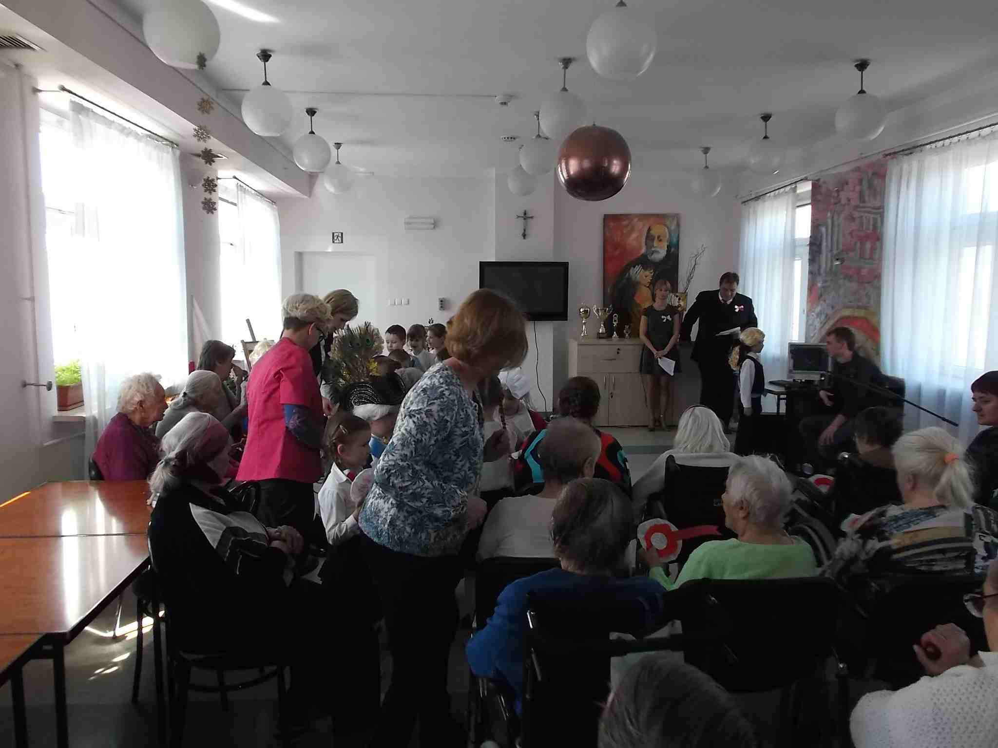 W dn. 28.04.2015 z występem z okazji rocznicy uchwalenia Konstytucji 3 Maja odwiedzili nas goście – dzieci z zerówki (klasa A) ze Szkoły Podstawowej nr 32 w Kielcach. Dzieci pod kierunkiem swojej nauczycielki – Pani Ilony Błaszak, przy aktywnym wsparciu rodziców, przedstawiły znakomity program artystyczny. Był śpiew, recytacja, wspaniałe stroje przygotowane na ten dzień przez mamy uczniów i kotyliony, którymi dzieci obdarowały mieszkanki. To był w pełni profesjonalny występ! Raz jeszcze dziękujemy za przyjemność, jaką nam Państwo sprawiliście!