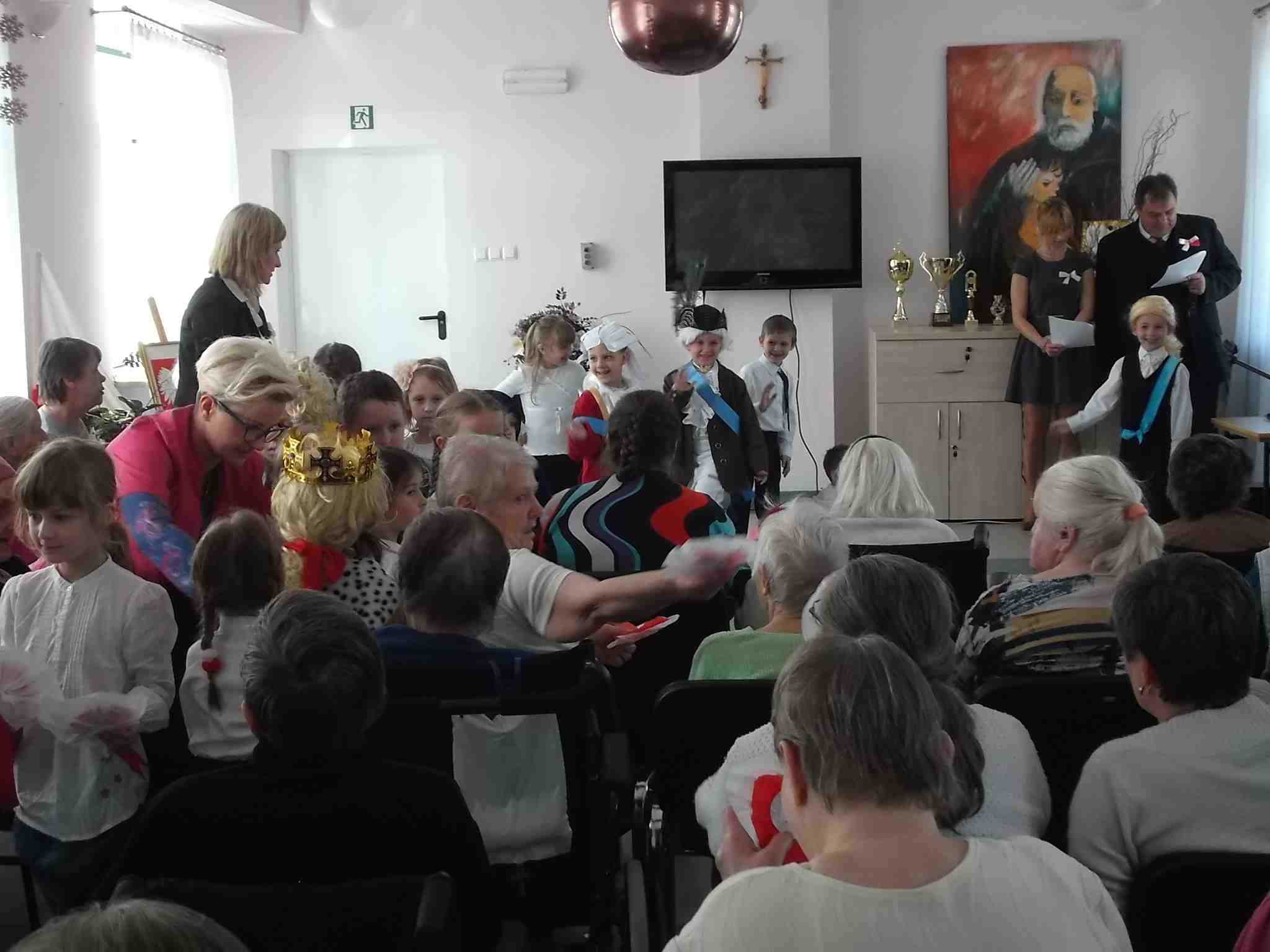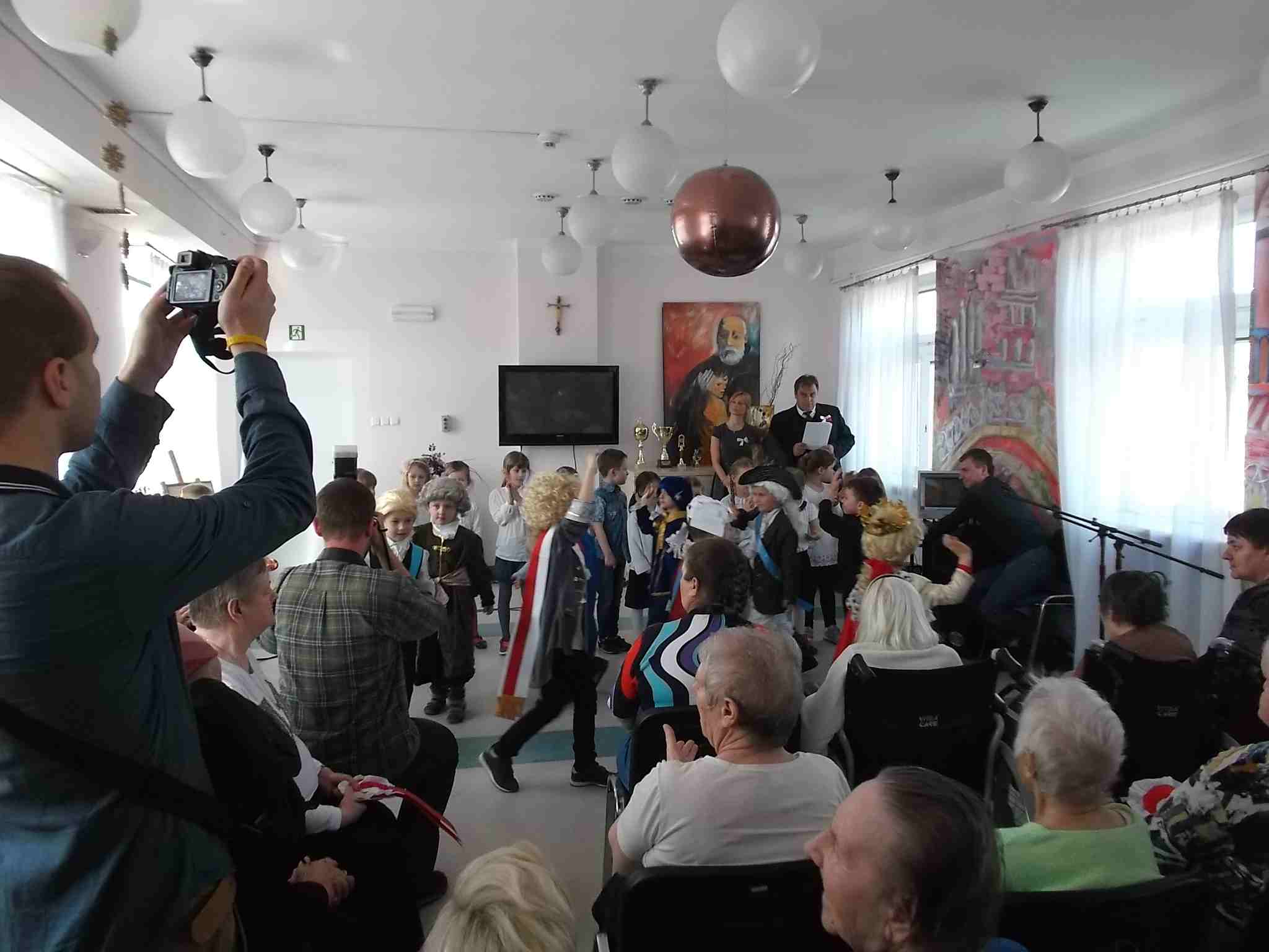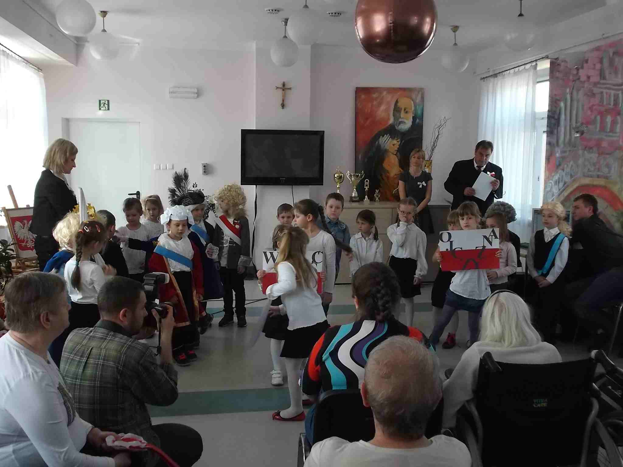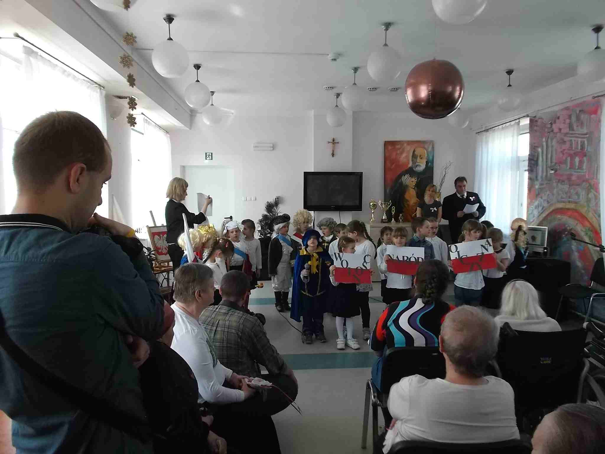 W dn. 28.04.2015 z występem z okazji rocznicy uchwalenia Konstytucji 3 Maja odwiedzili nas goście – dzieci z zerówki (klasa A) ze Szkoły Podstawowej nr 32 w Kielcach. Dzieci pod kierunkiem swojej nauczycielki – Pani Ilony Błaszak, przy aktywnym wsparciu rodziców, przedstawiły znakomity program artystyczny. Był śpiew, recytacja, wspaniałe stroje przygotowane na ten dzień przez mamy uczniów i kotyliony, którymi dzieci obdarowały mieszkanki. To był w pełni profesjonalny występ! Raz jeszcze dziękujemy za przyjemność, jaką nam Państwo sprawiliście!