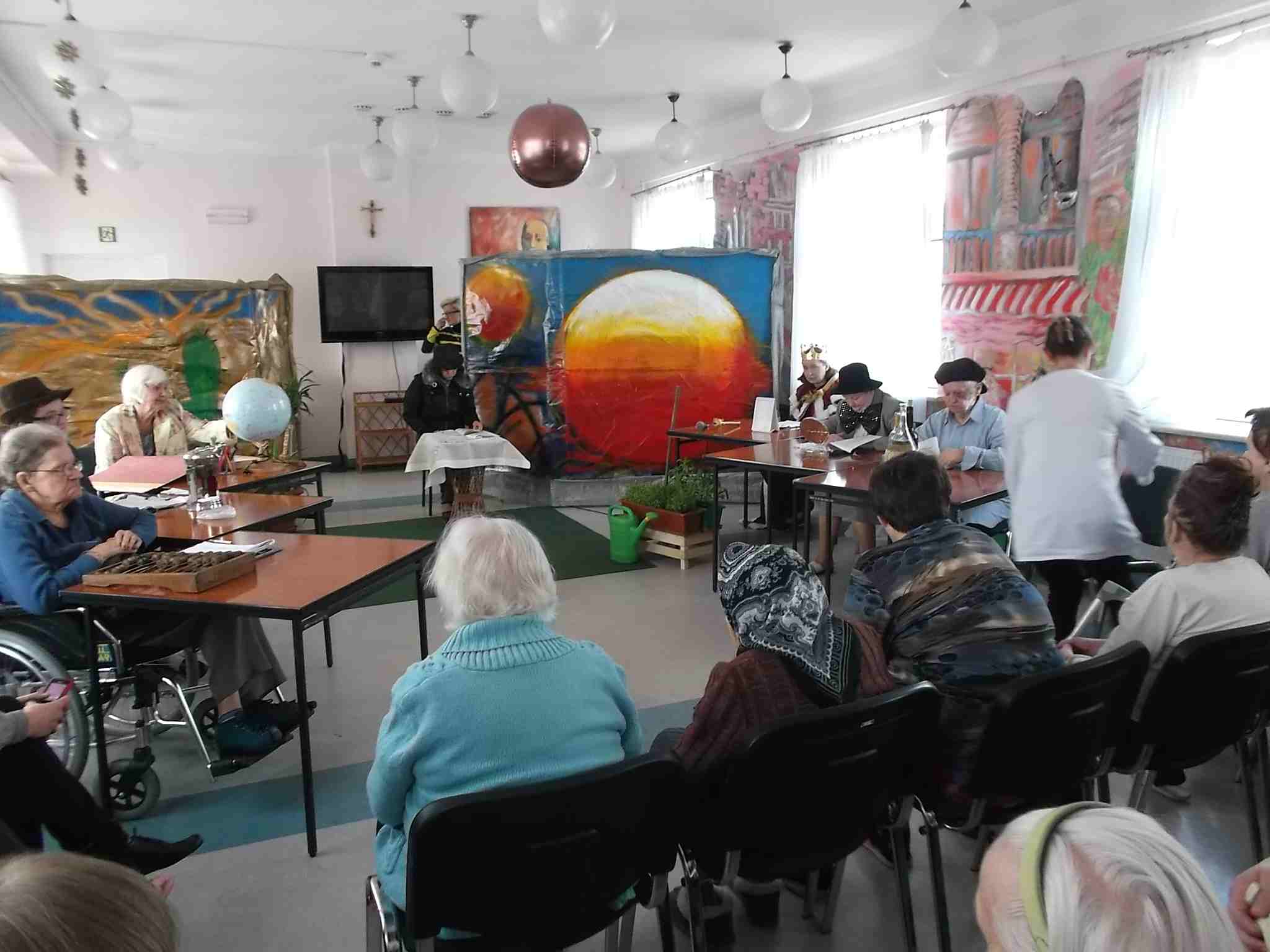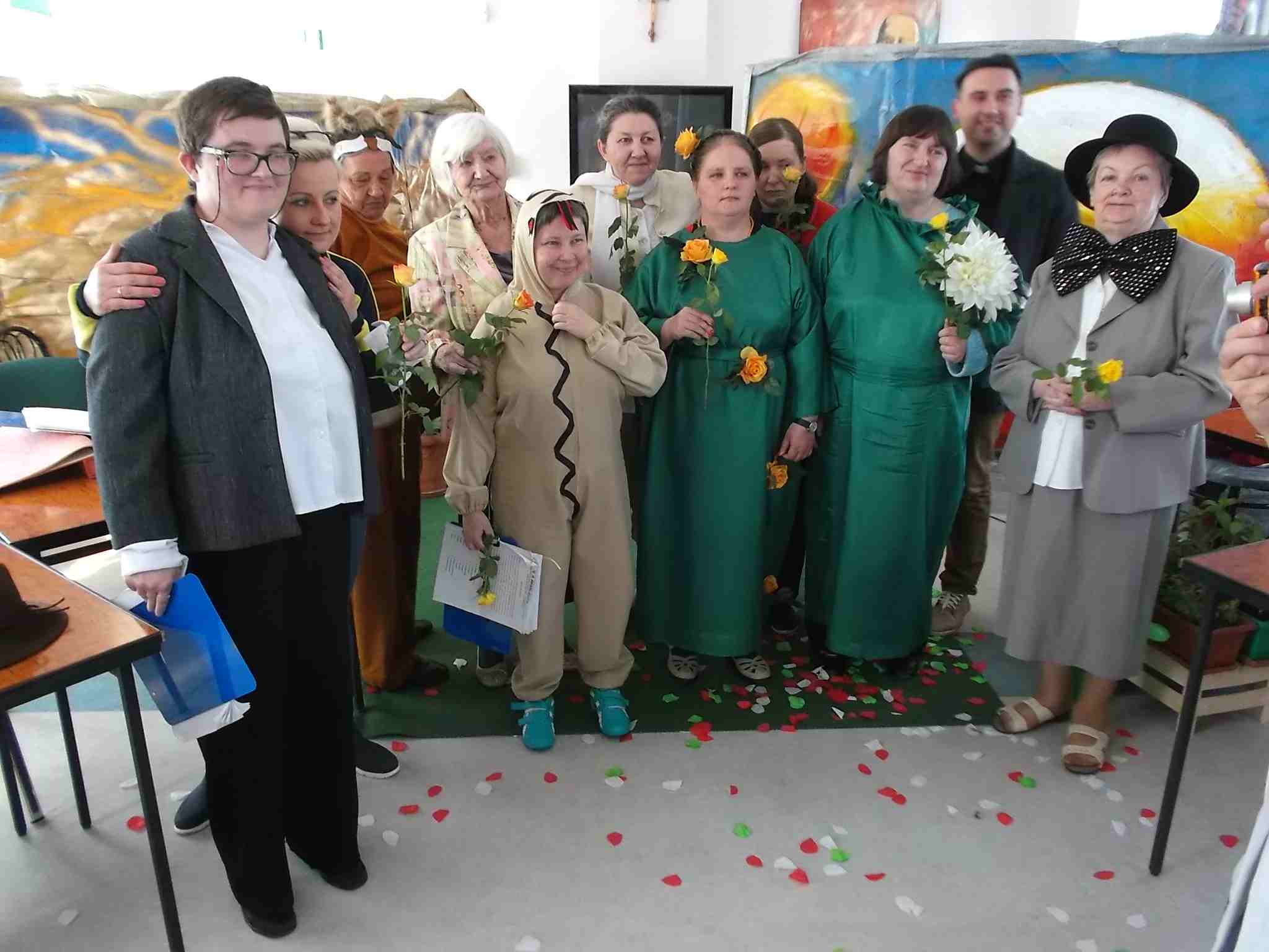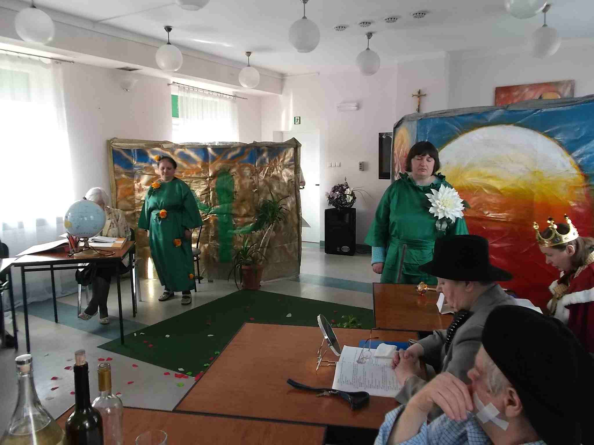 W dn. 29.04.2015 mieliśmy przyjemność obejrzeć kolejną już premierę w wykonaniu naszej Grupy Teatralnej „Albercik”. Tym razem nasze Panie „zmierzyły” się z „Małym Księciem” Antoina de Saint-Exupery dostarczając nam wielu wzruszeń. Tradycyjnie już za scenariusz i reżyserię odpowiadał nasz kapelan ks. Sebastian Lewczuk, za scenografię i charakteryzację – terapeuta zajęciowy Kinga Groszczyńska-Mazur, a nieocenionym wsparciem przy przygotowaniu kostiumów była członkini naszej Grupy Teatralnej – Pani Elżbieta Kołaczyńska, która poza tym, że sama występuje na scenie, szyje dla aktorek wg potrzeb coraz bardziej skomplikowane projekty. Dla Was podziękowania szczególne! I oczywiście dla 12 wytrwałych aktorek, które blisko 3 miesiące zmagały się ze swoimi rolami na próbach, aby nas zachwycić na dzisiejszej premierze! Przyjmijcie gratulacje!