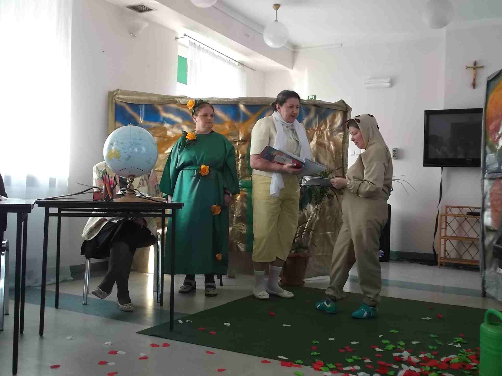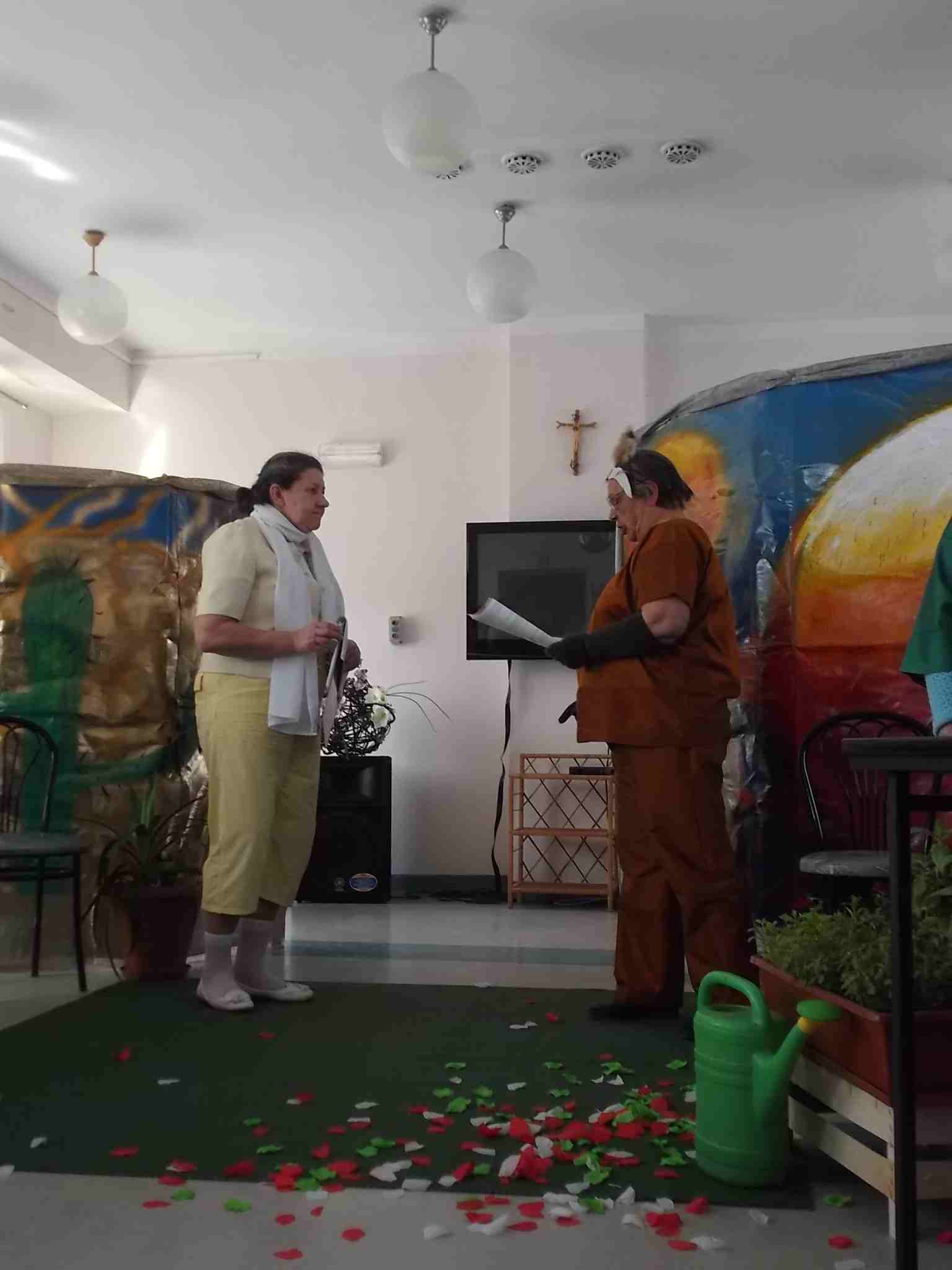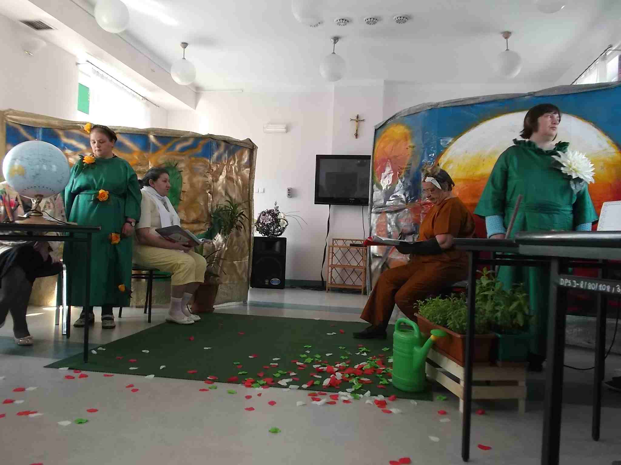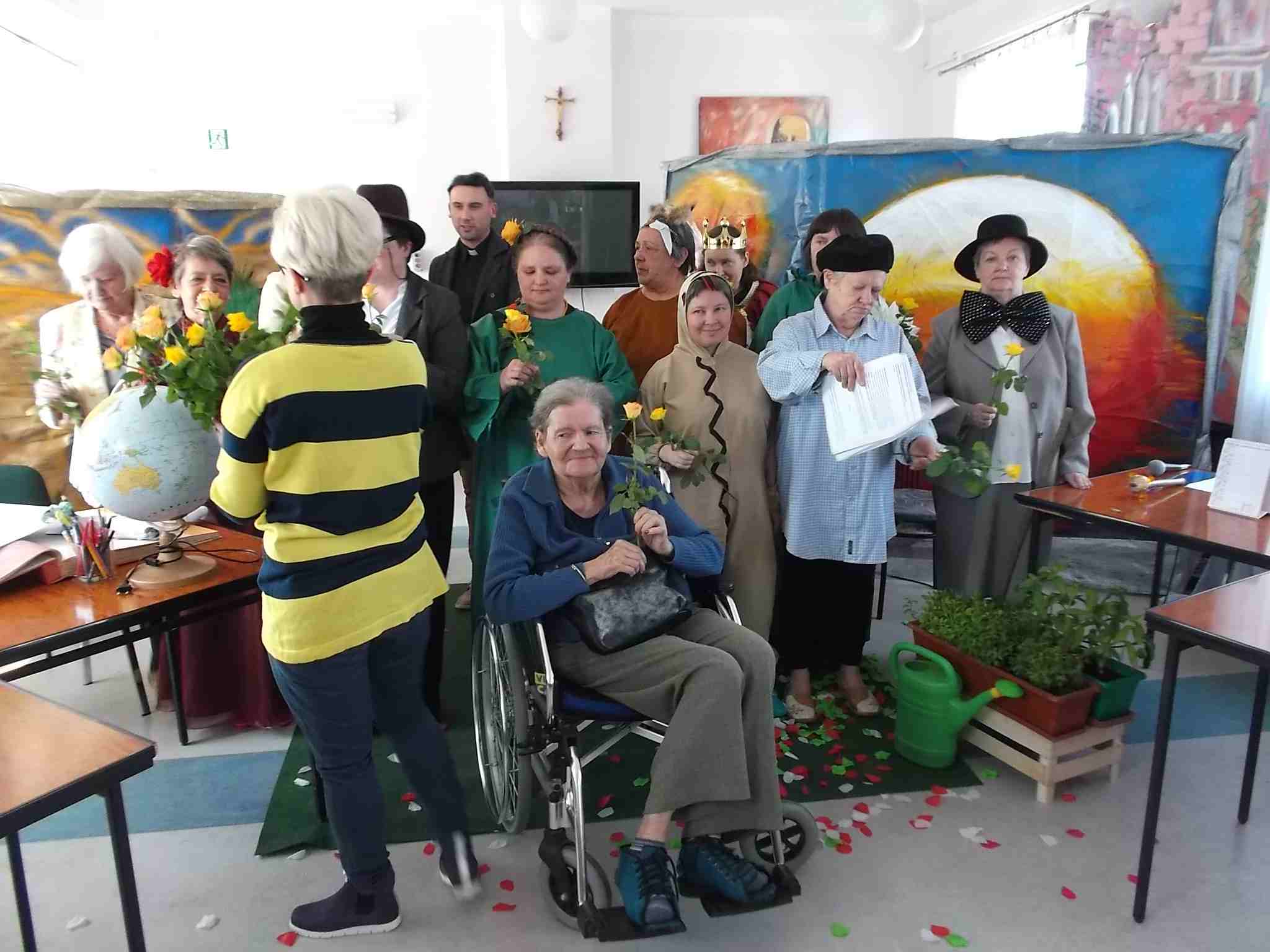 W dn. 29.04.2015 mieliśmy przyjemność obejrzeć kolejną już premierę w wykonaniu naszej Grupy Teatralnej „Albercik”. Tym razem nasze Panie „zmierzyły” się z „Małym Księciem” Antoina de Saint-Exupery dostarczając nam wielu wzruszeń. Tradycyjnie już za scenariusz i reżyserię odpowiadał nasz kapelan ks. Sebastian Lewczuk, za scenografię i charakteryzację – terapeuta zajęciowy Kinga Groszczyńska-Mazur, a nieocenionym wsparciem przy przygotowaniu kostiumów była członkini naszej Grupy Teatralnej – Pani Elżbieta Kołaczyńska, która poza tym, że sama występuje na scenie, szyje dla aktorek wg potrzeb coraz bardziej skomplikowane projekty. Dla Was podziękowania szczególne! I oczywiście dla 12 wytrwałych aktorek, które blisko 3 miesiące zmagały się ze swoimi rolami na próbach, aby nas zachwycić na dzisiejszej premierze! Przyjmijcie gratulacje!