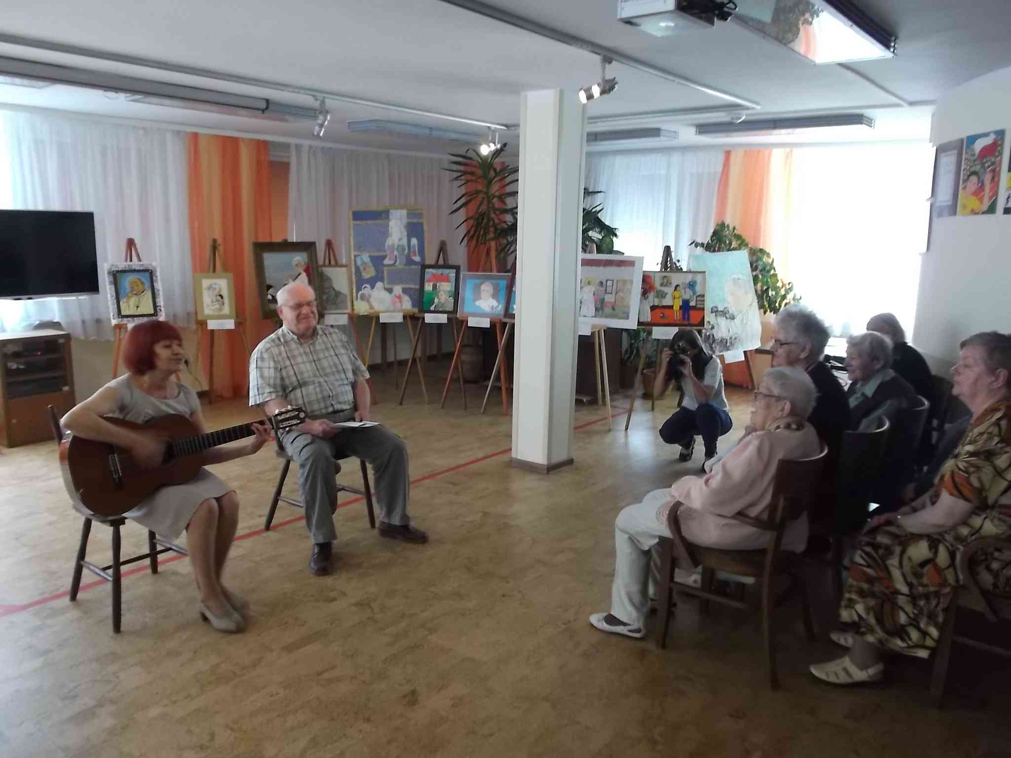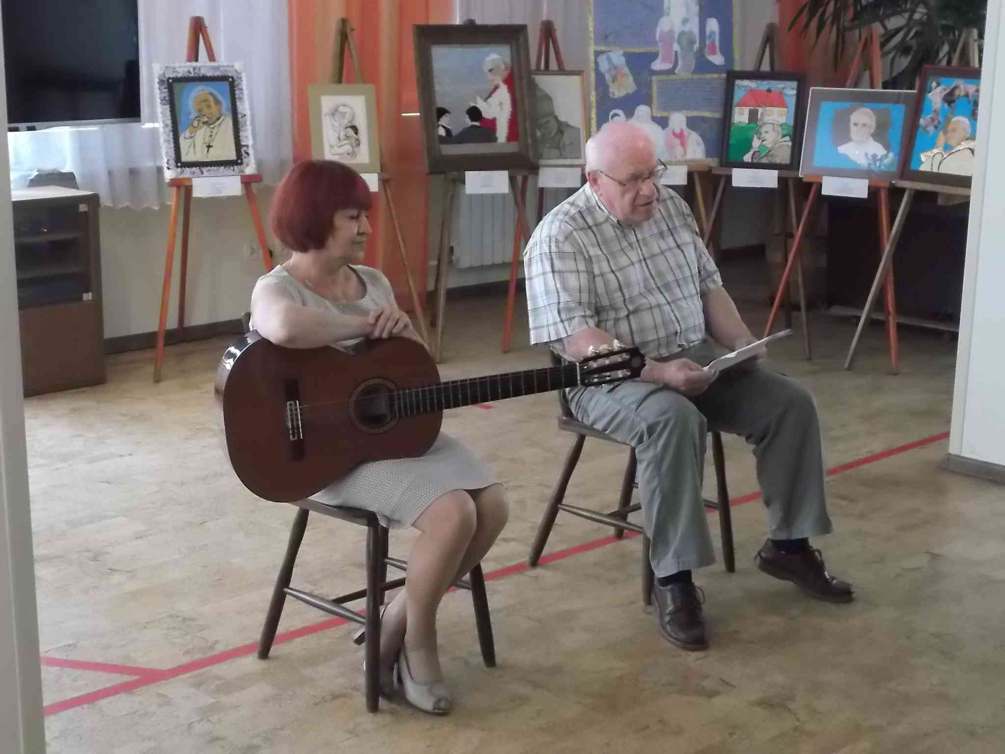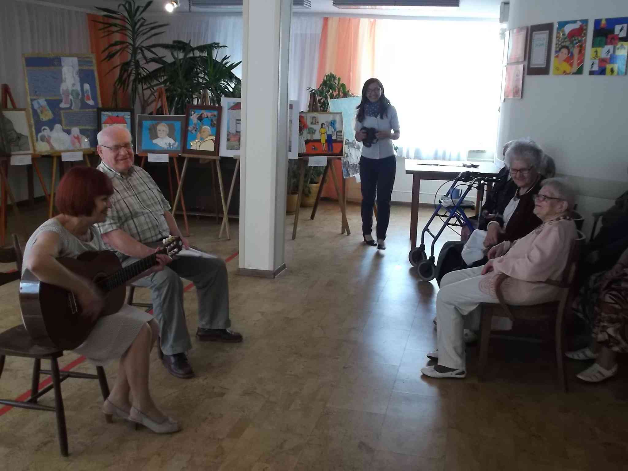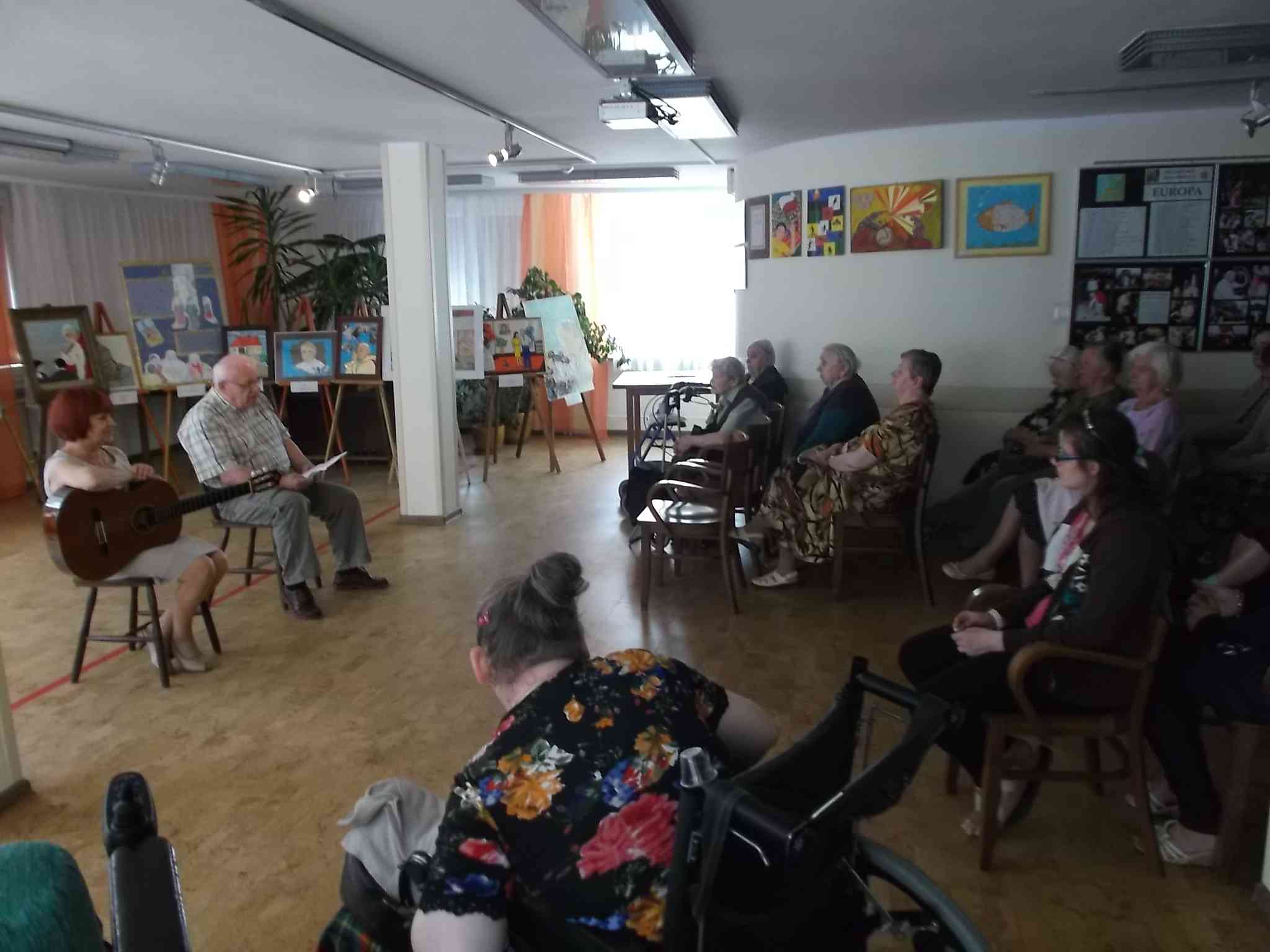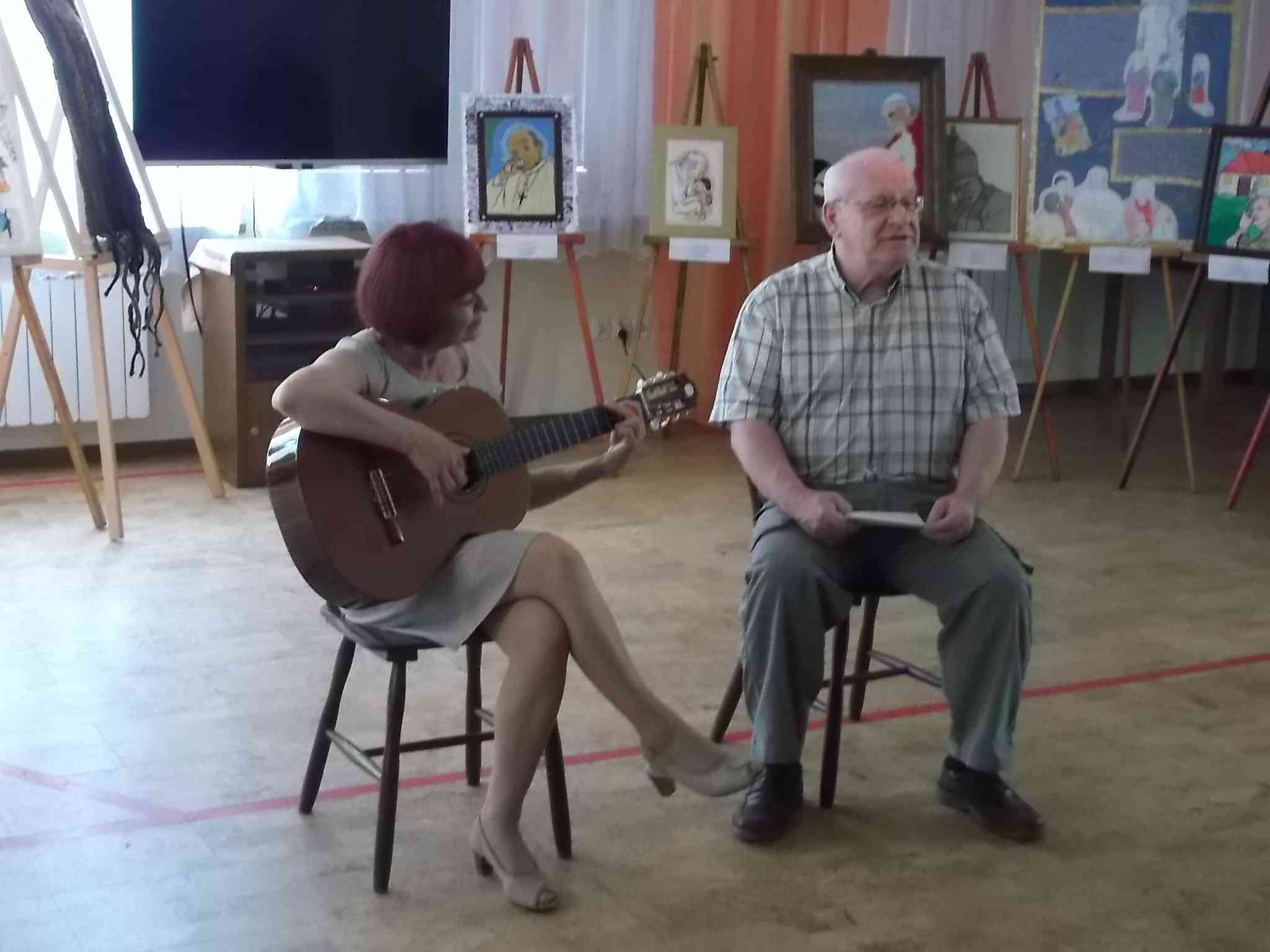 Dn. 10.06.2015 oklaskiwaliśmy w DPS im Jana Pawła II występ dwójki artystów: Pani Małgorzaty Biesagi – śpiewającej własne piosenki przy własnym akompaniamencie gitary, oraz Pana Krzysztofa Nawrota prezentującego swoje wiersze. Przedstawiony repertuar przypadł do gustu naszym mieszkankom. Mamy nadzieję zaprosić artystów również do naszego Domu.