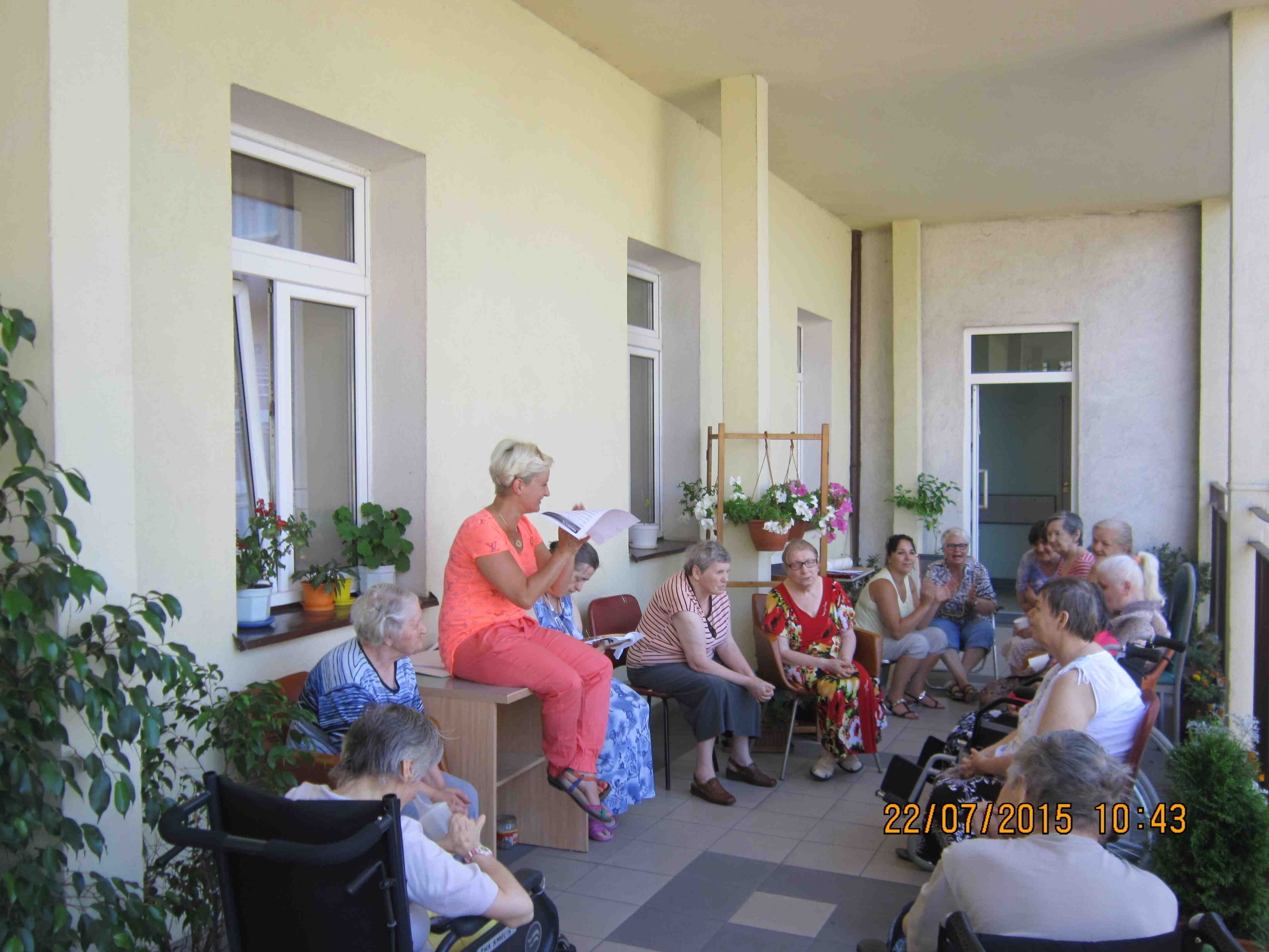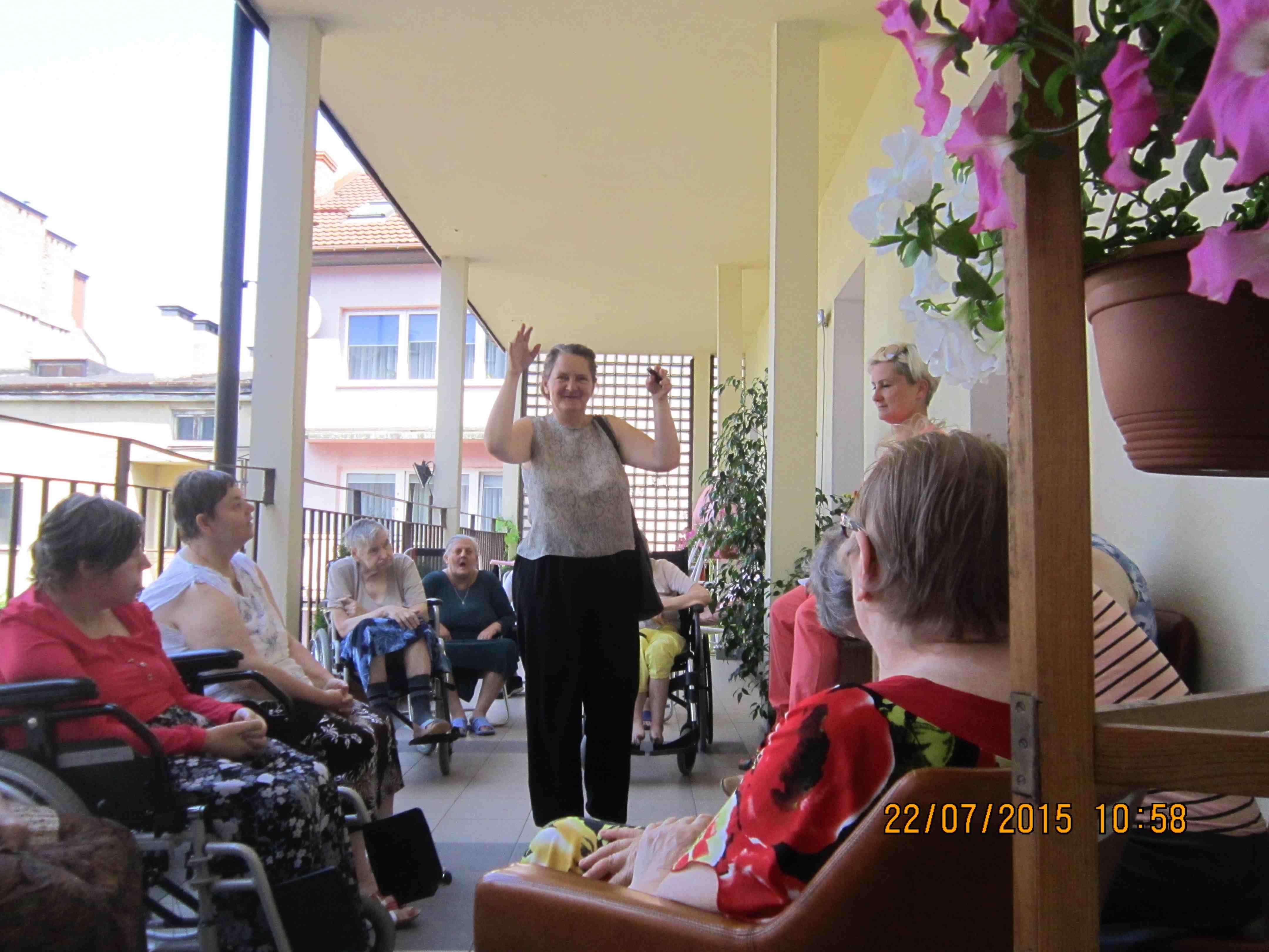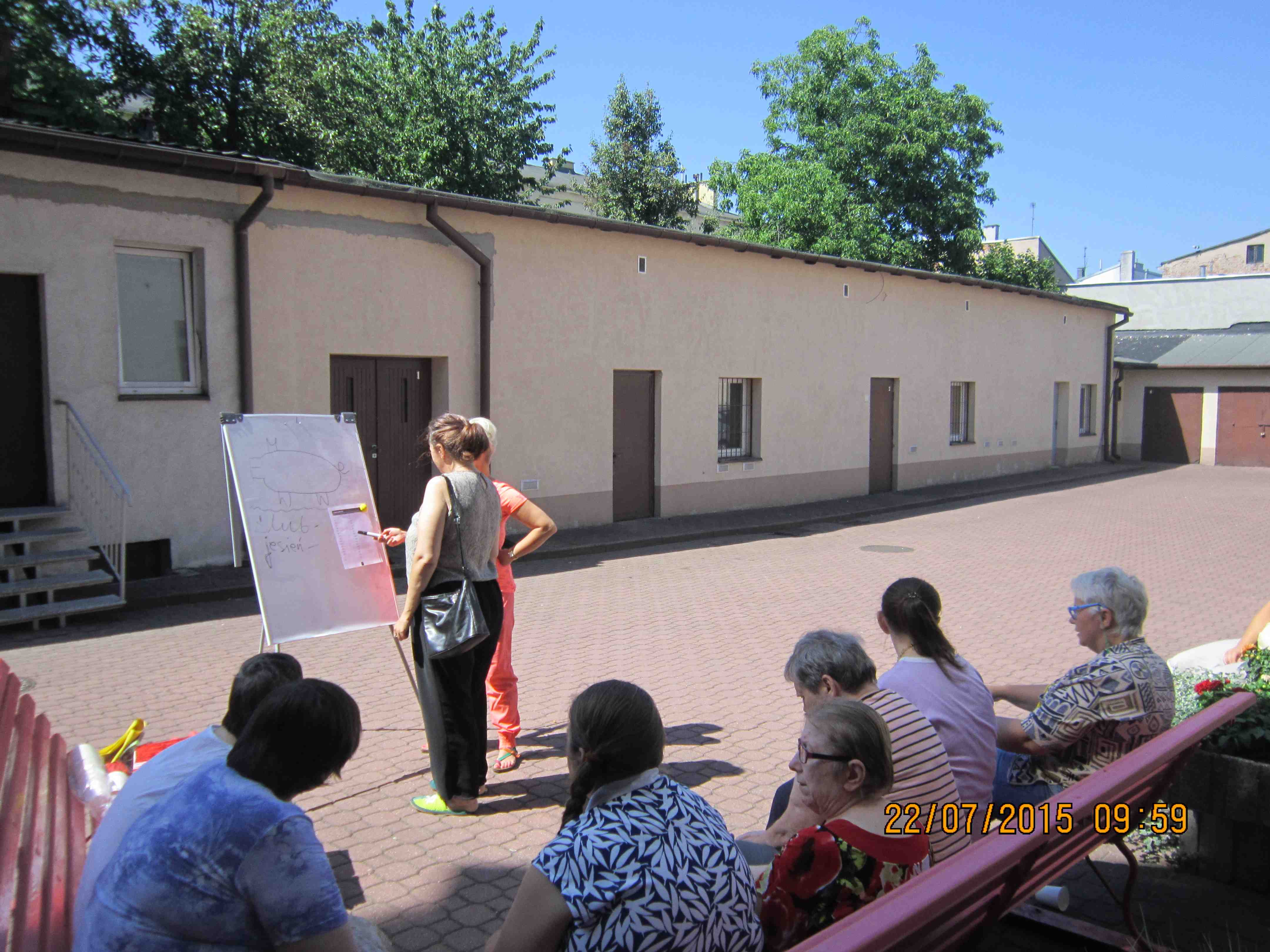 W upalne dni terapię zajęciową przenosimy na powietrze, gramy w kalambury i wspólnie czytamy na dziedzińcu i tarasach. Dziękujemy za organizację zajęć naszej terapeutce Kindze Groszczyńskiej-Mazur!