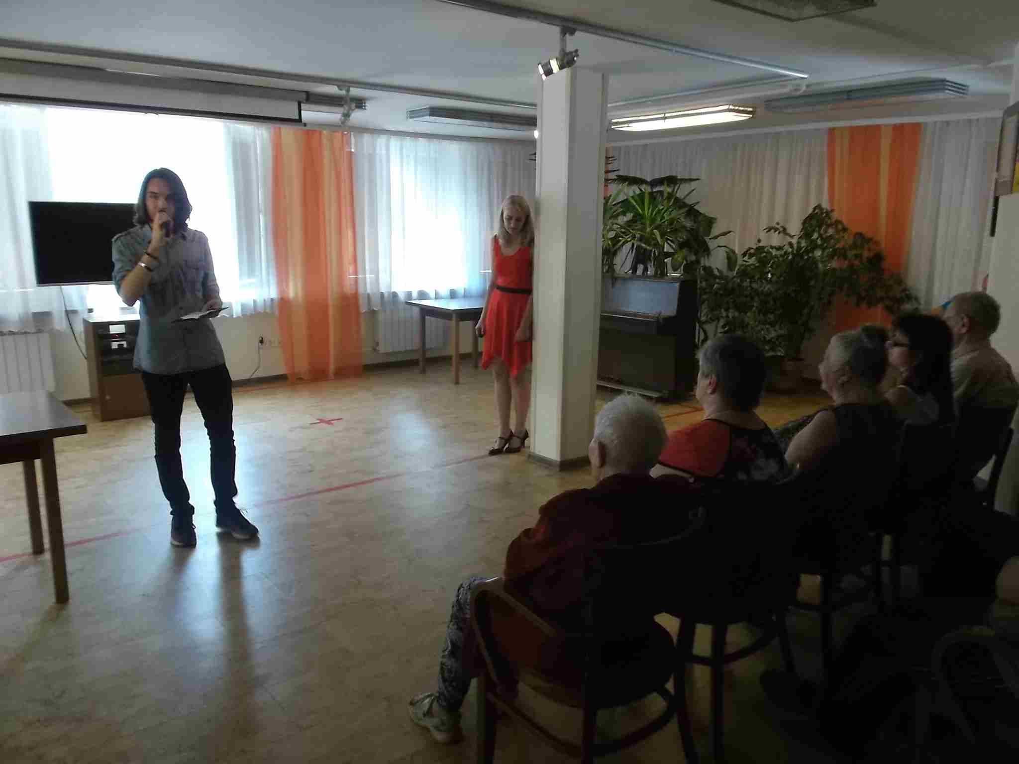 W dn. 06.08.2015 podziwialiśmy w DPS im. Jana Pawła II wokalne popisy młodych aktorów Podwórkowej Areny Absurdu. Grupa pod kierunkiem Pani Ewy Sorbian przygotowała piosenki z repertuaru m.in. Kabaretu Starszych Panów, Ewy Demarczyk, Kaliny Jędrusik, Katarzyny Groniec. Publiczność ze wzruszeniem i radością przyjęła ten poważny, jak na młodych wykonawców, program artystyczny.
