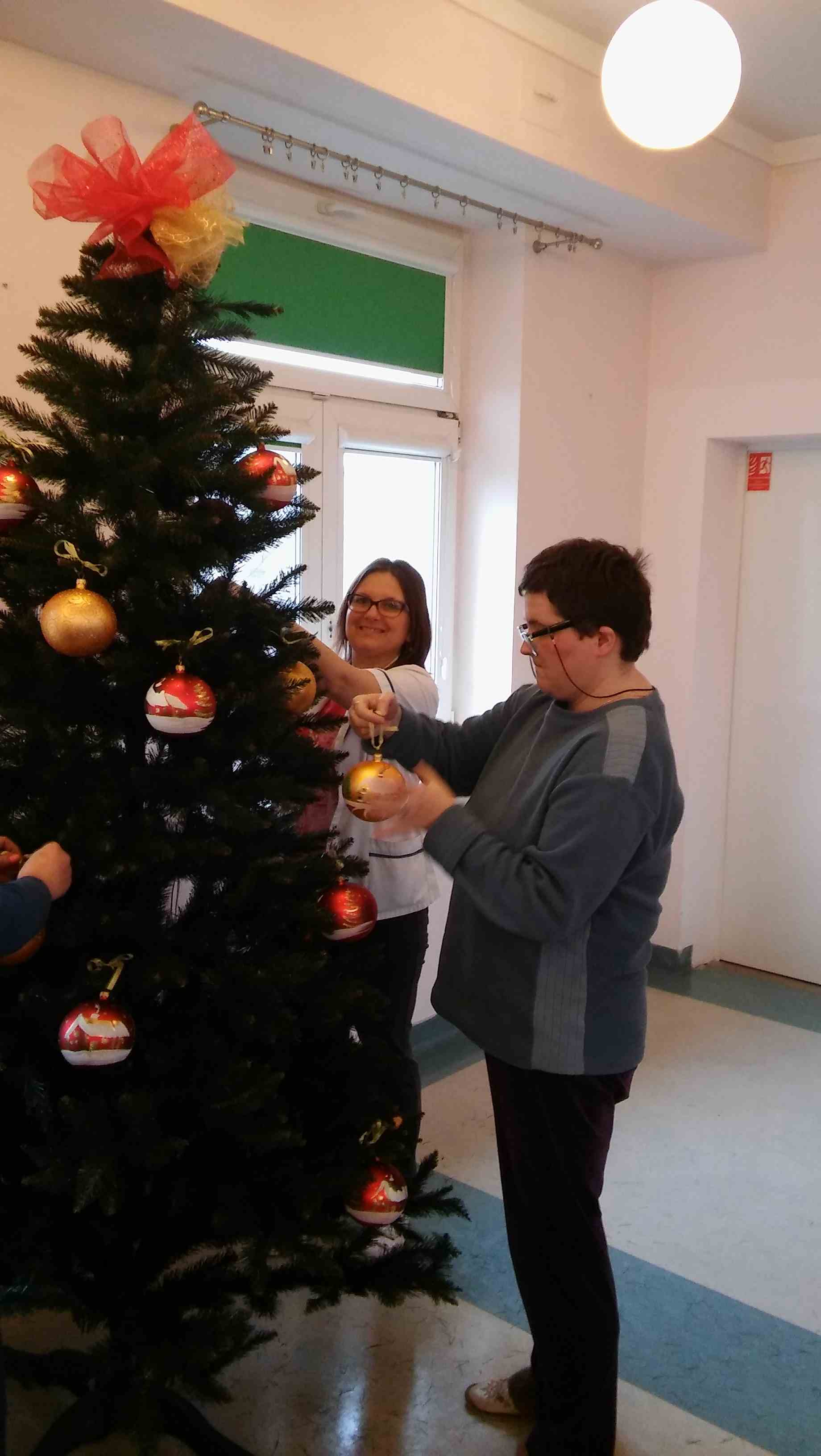 Przed świętami przystrajamy nasz Dom. Mieszkanki wspólnie ubierały choinkę i dekorowały świetlicę, została zmieniona ekspozycja prac plastycznych przy pracowni terapii zajęciowej, świątecznie ozdobiona jest również nasza kaplica.