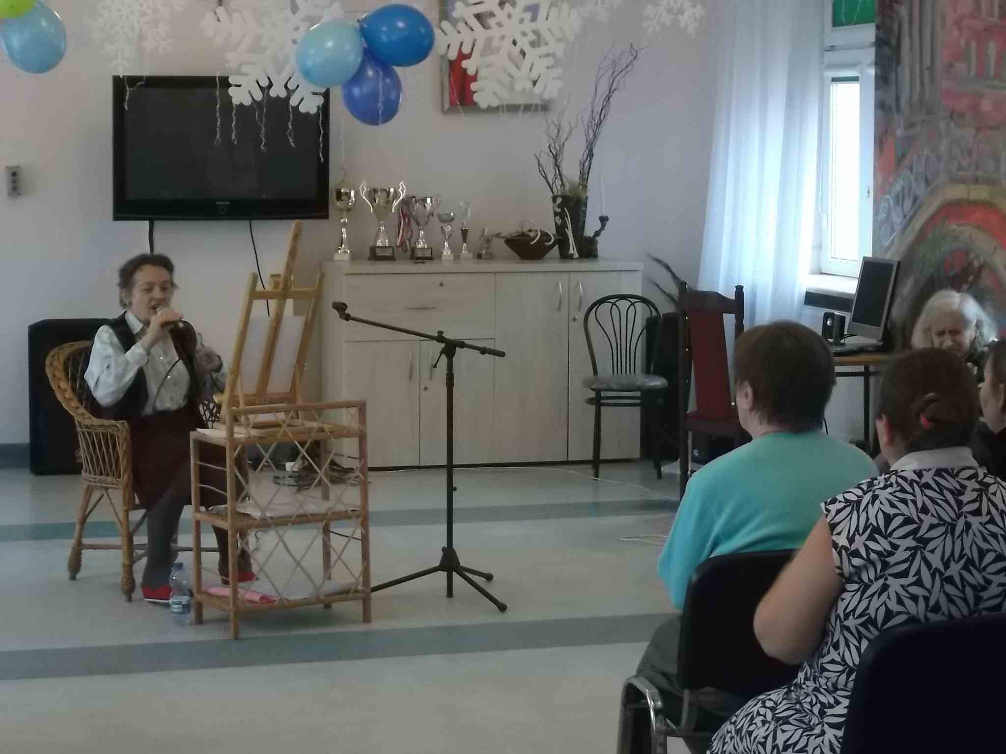 Pani Zofia Dulęba odwiedziła nasze mieszkanki po raz pierwszy w tym roku. Podobnie jak podczas poprzednich spotkań, poza repertuarem przygotowanym przez panią Zofię również mieszkanki chętnie prezentowały wybrane przez siebie utwory!