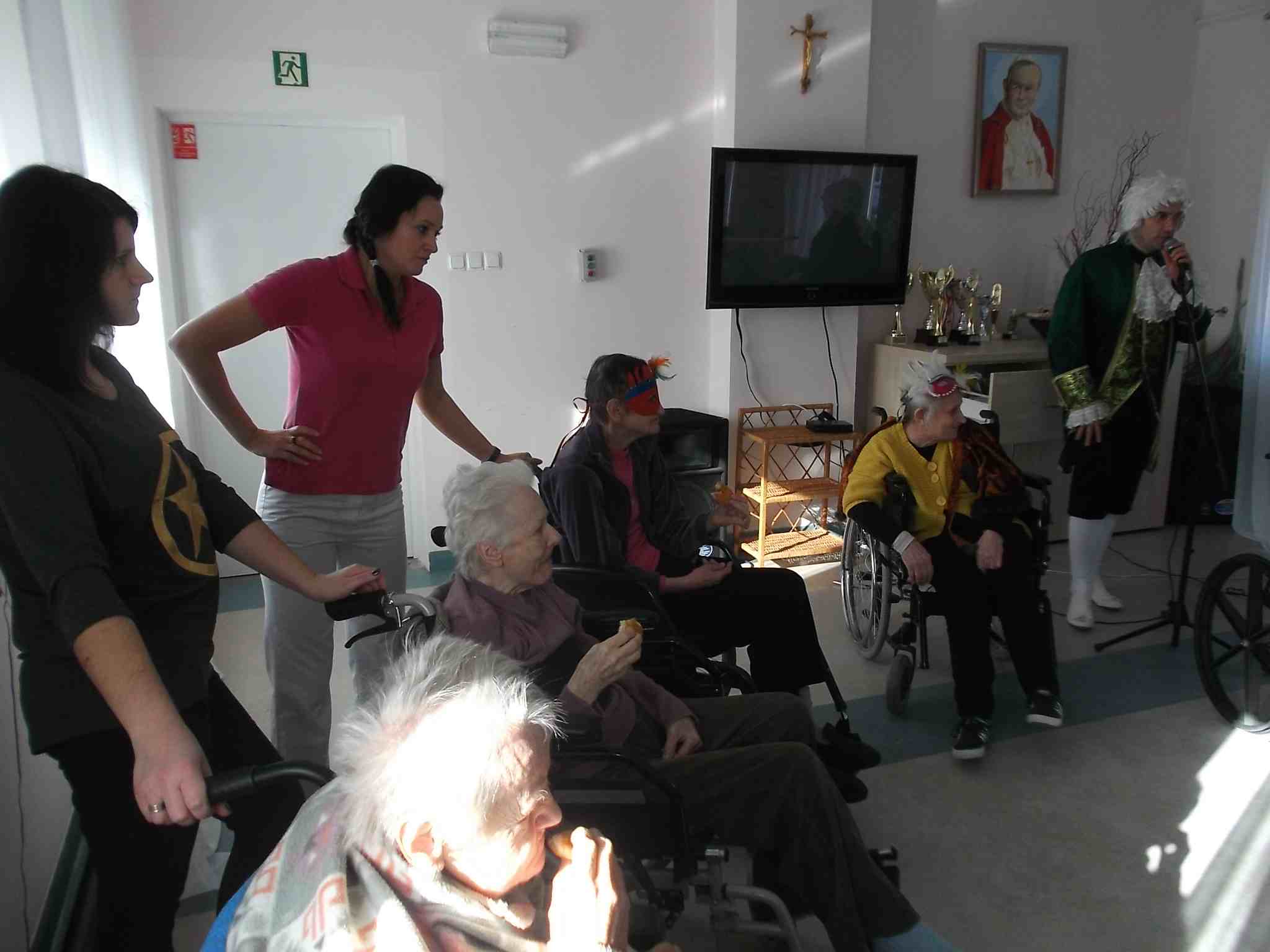 Na pożegnanie karnawału zorganizowaliśmy w DPS taneczną zabawę ostatkową. Niektórzy z nas byli przebrani nie do poznania, mieszkanki wykorzystały maski, które przygotowały na tą okazję na zajęciach terapeutycznych. Niezależnie od stroju wszyscy skusili się na świeże oponki – prosto z naszej kuchni!