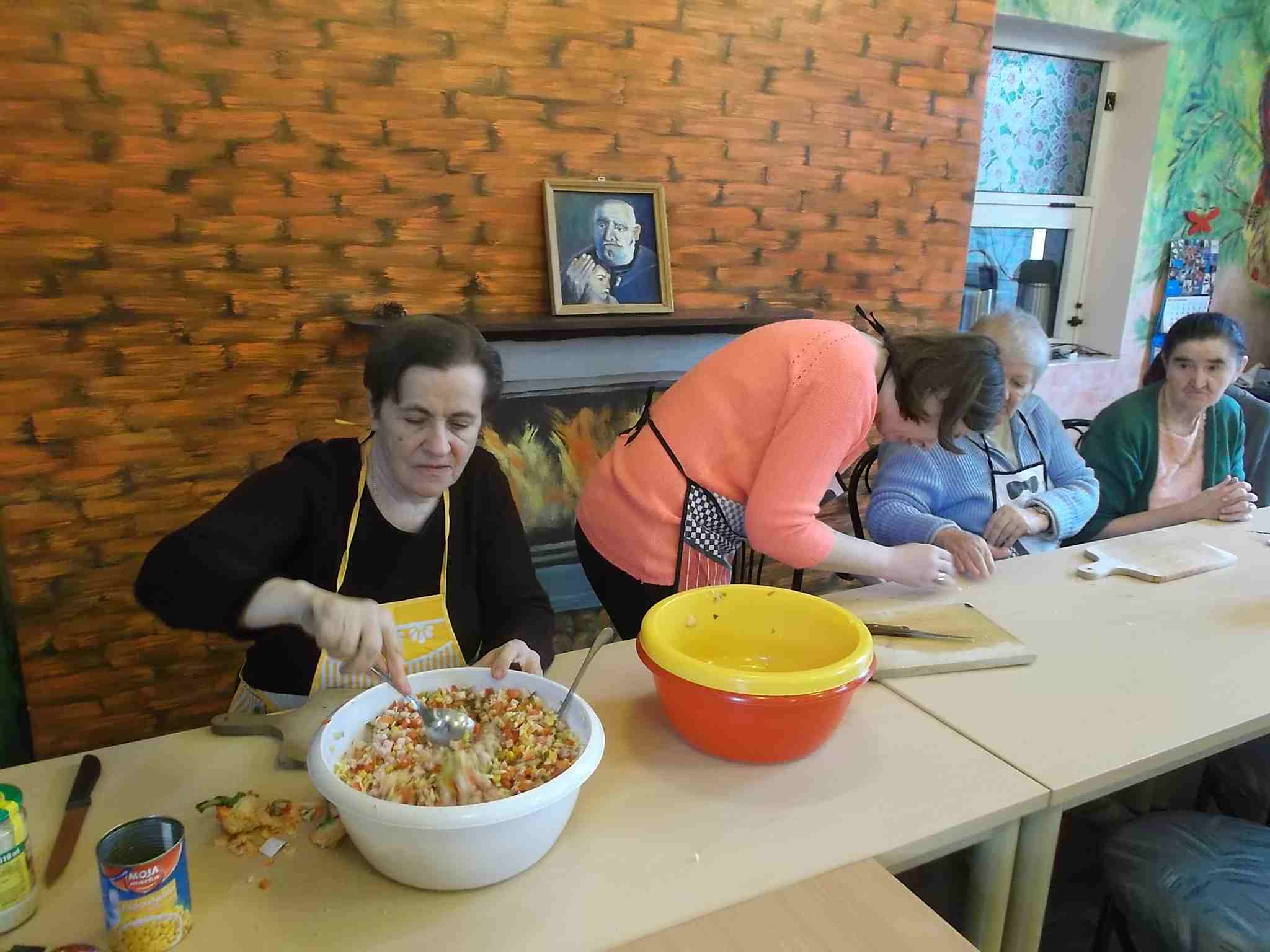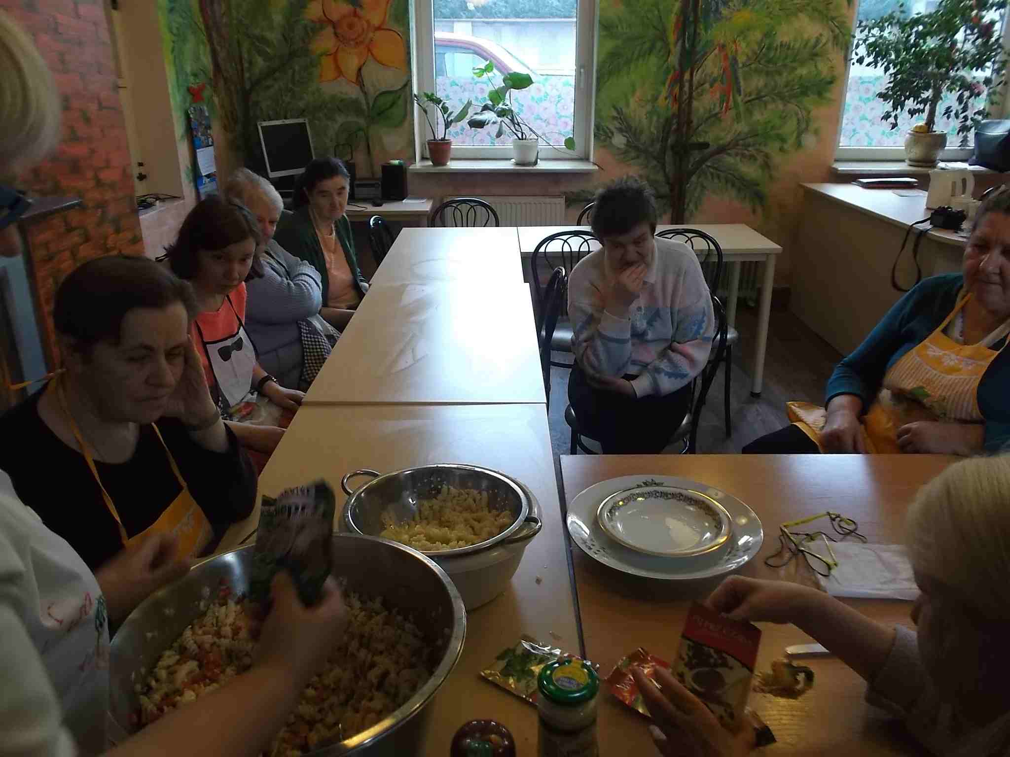 Na marcowych zajęciach mieszkanki przygotowały kolorową sałatkę z makaronem (03.03.2016) i galaretkę z owocami (10.03.2016). Do wspólnego gotowania wrócimy po świętach!