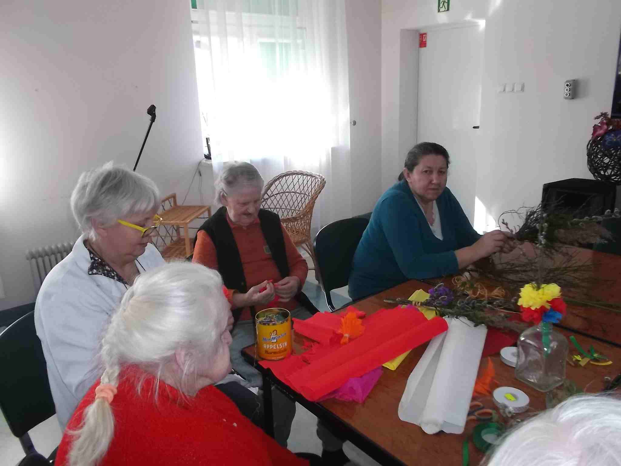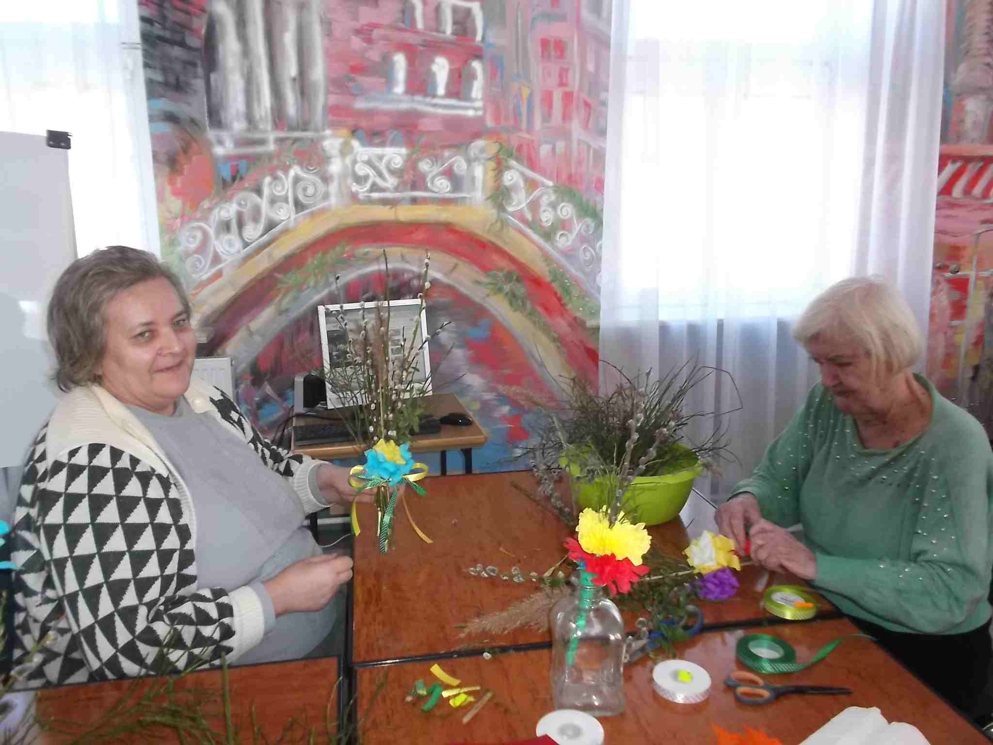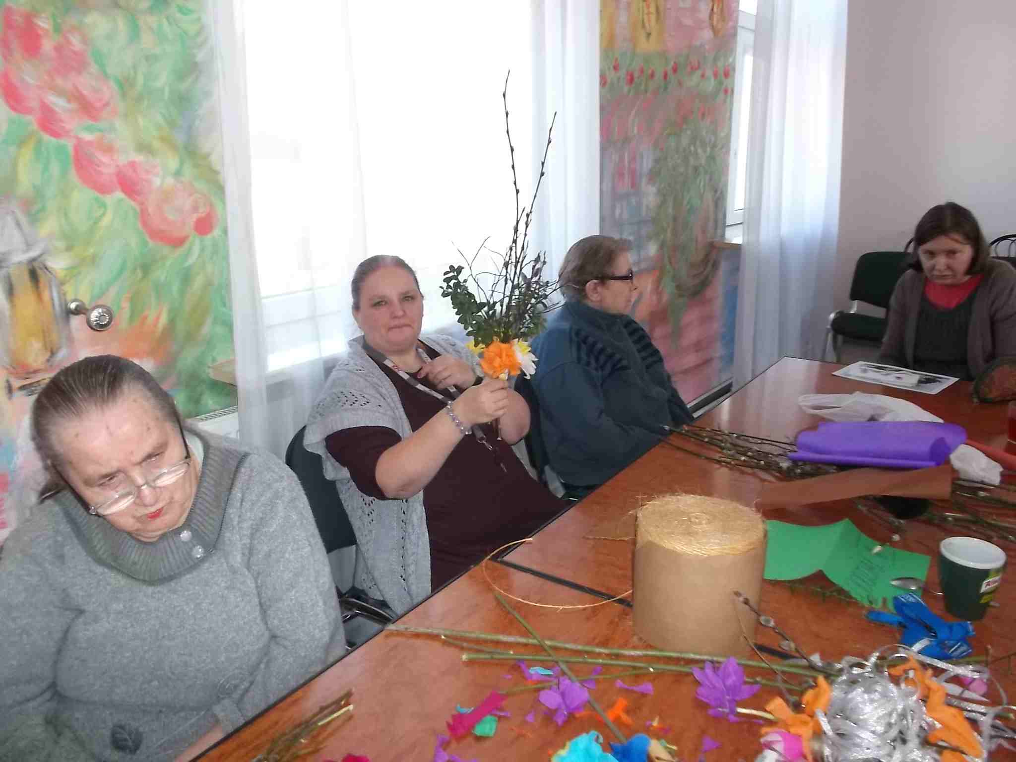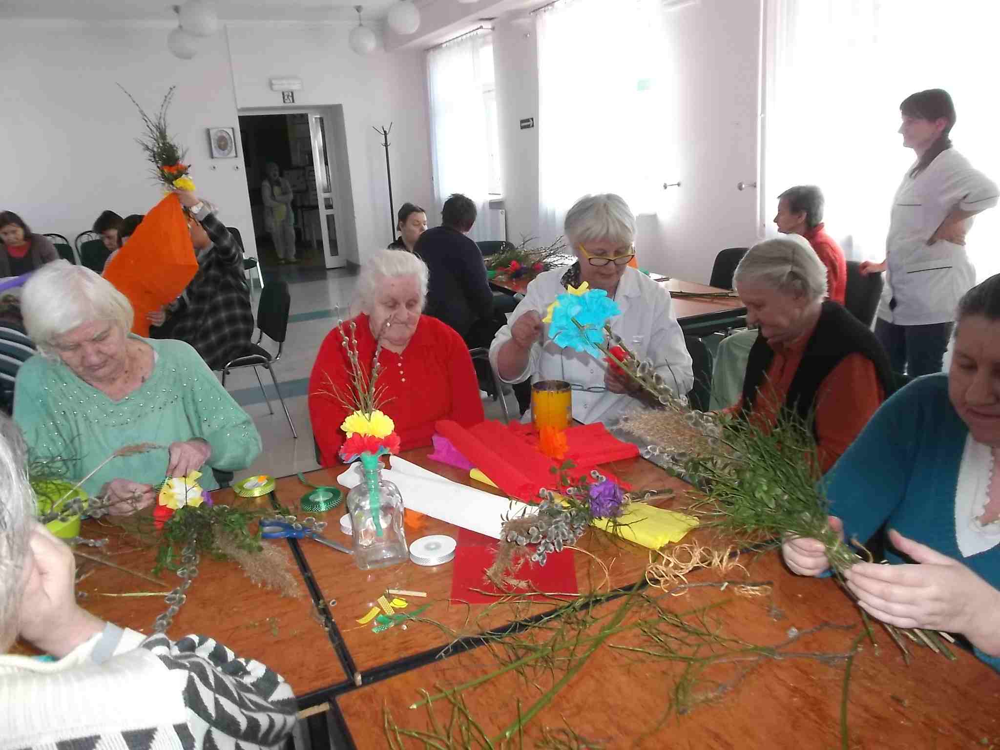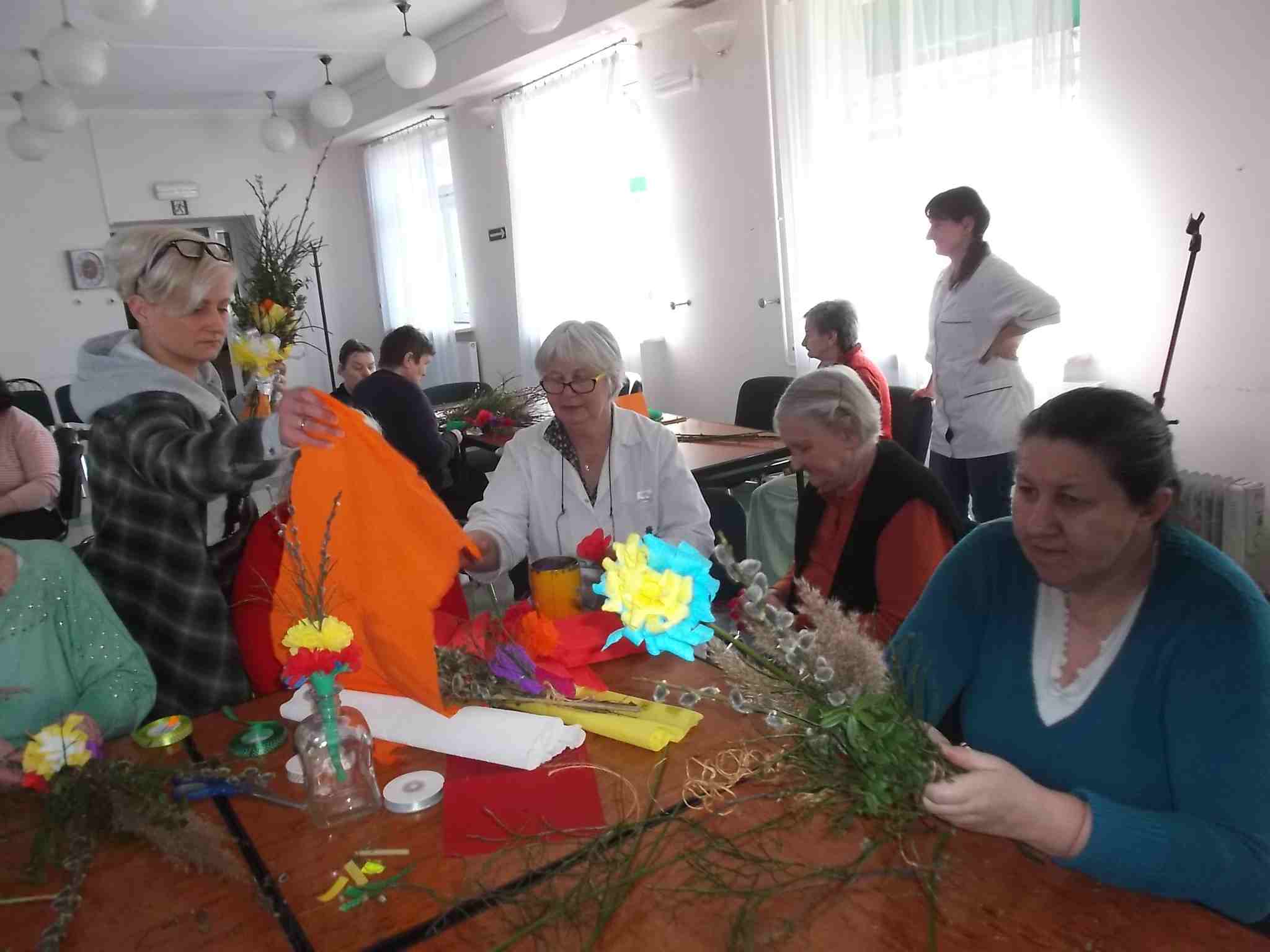 Przed niedzielą palmową mieszkanki same i przy pomocy terapeutów przygotowywały palmy wielkanocne wykorzystując m.in. bazie i kwiaty z bibuły zrobione wcześniej na zajęciach manualnych. W swoje palmy Panie włożyły mnóstwo pracy!