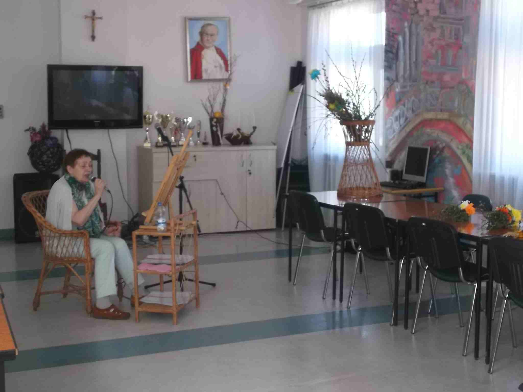 Pani Zofia Dulęba chętnie odwiedzająca nasz Dom spotkała się z mieszkankami 17.03.2016. Poza solowym występem Pani Zofii była też możliwość pośpiewania z nią w duecie, z czego chętnie korzystają nasze Panie!