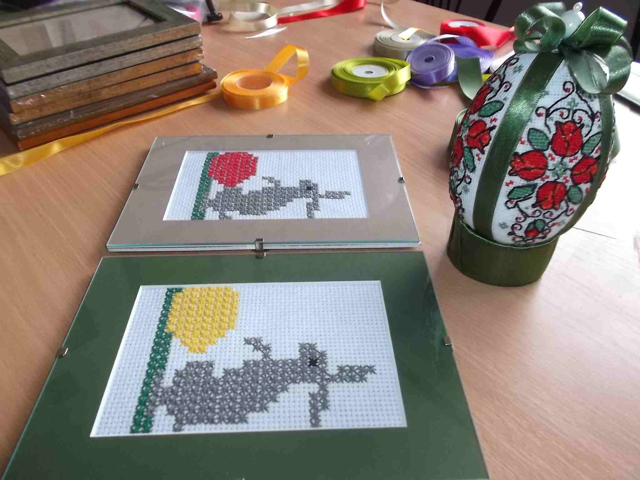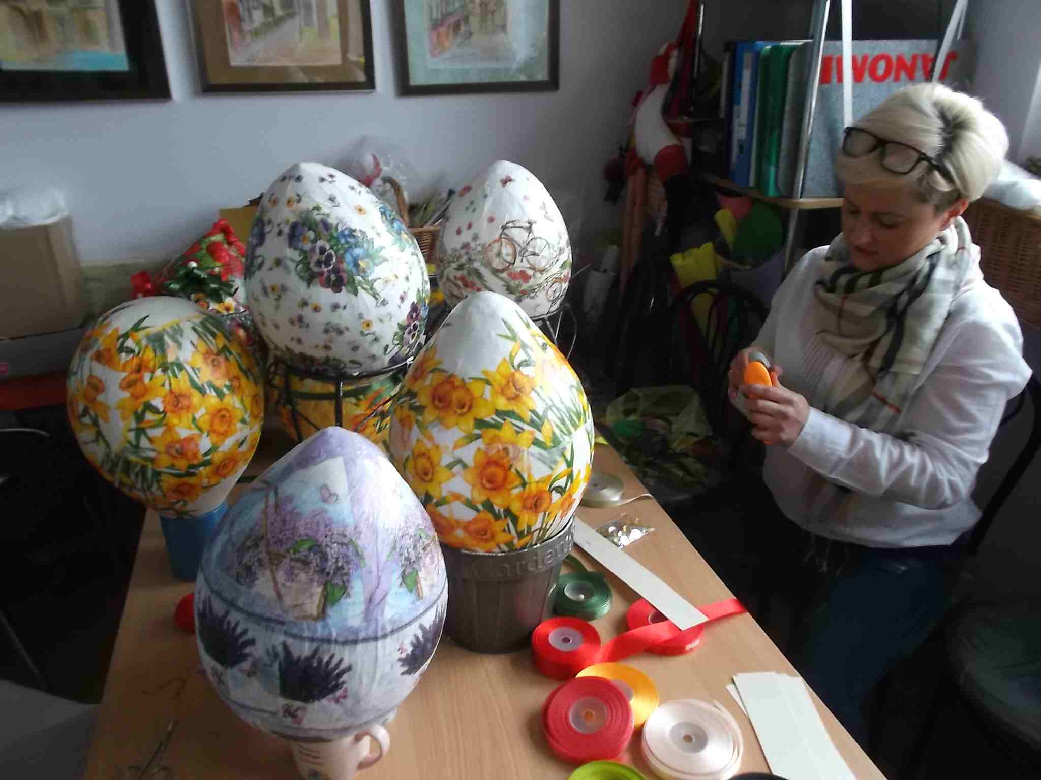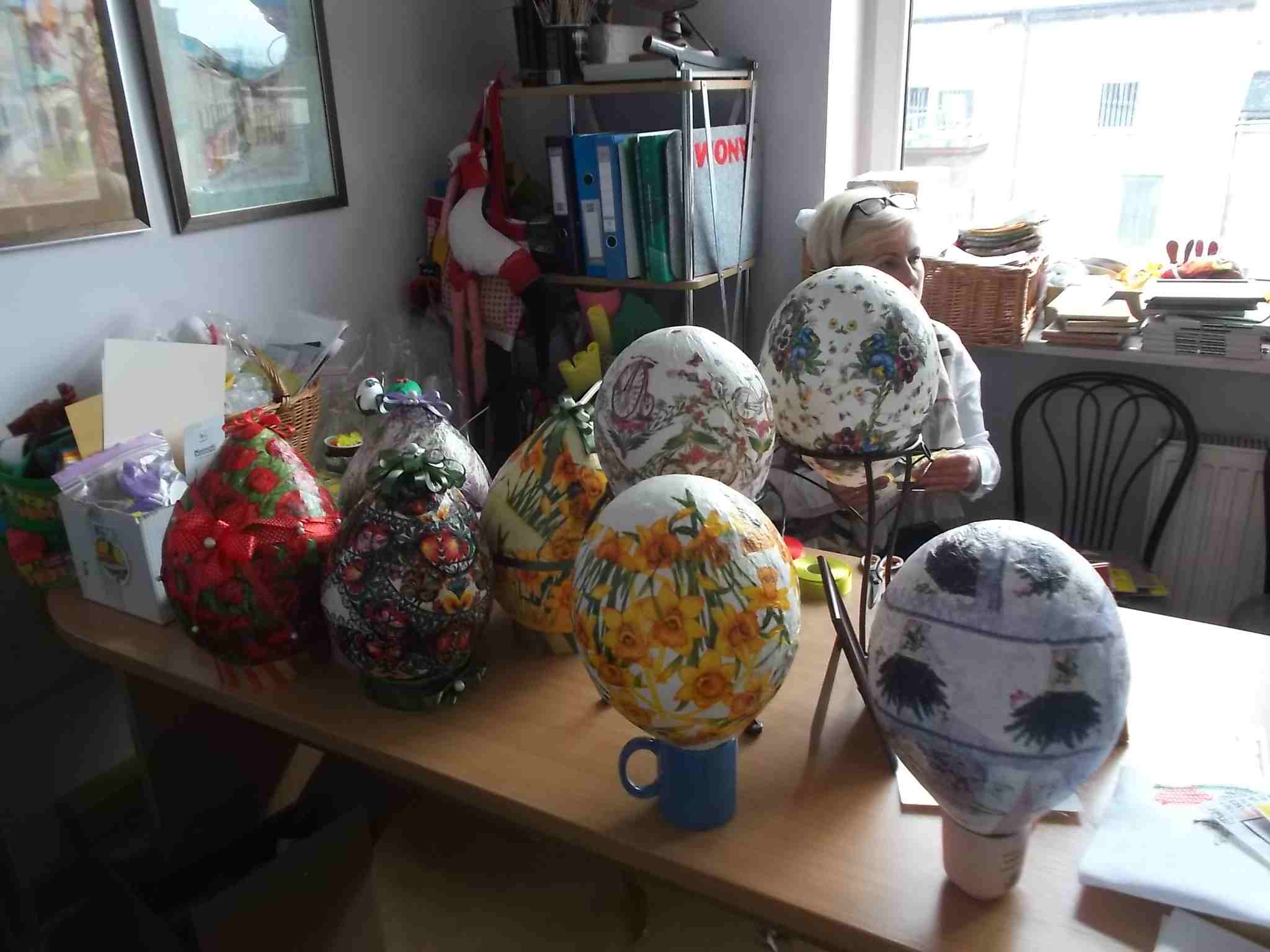 Mieszkanki w ramach terapii zajęciowej cały miesiąc pod kierunkiem terapeuty przygotowywały ozdoby wielkanocne – kartki świąteczne, zajączki i kurczaczki z wełny, haftowane obrazki, jajka ozdabiane techniką decoupage lub kanwą wyszywaną w kwiaty. Efekty na zdjęciach!