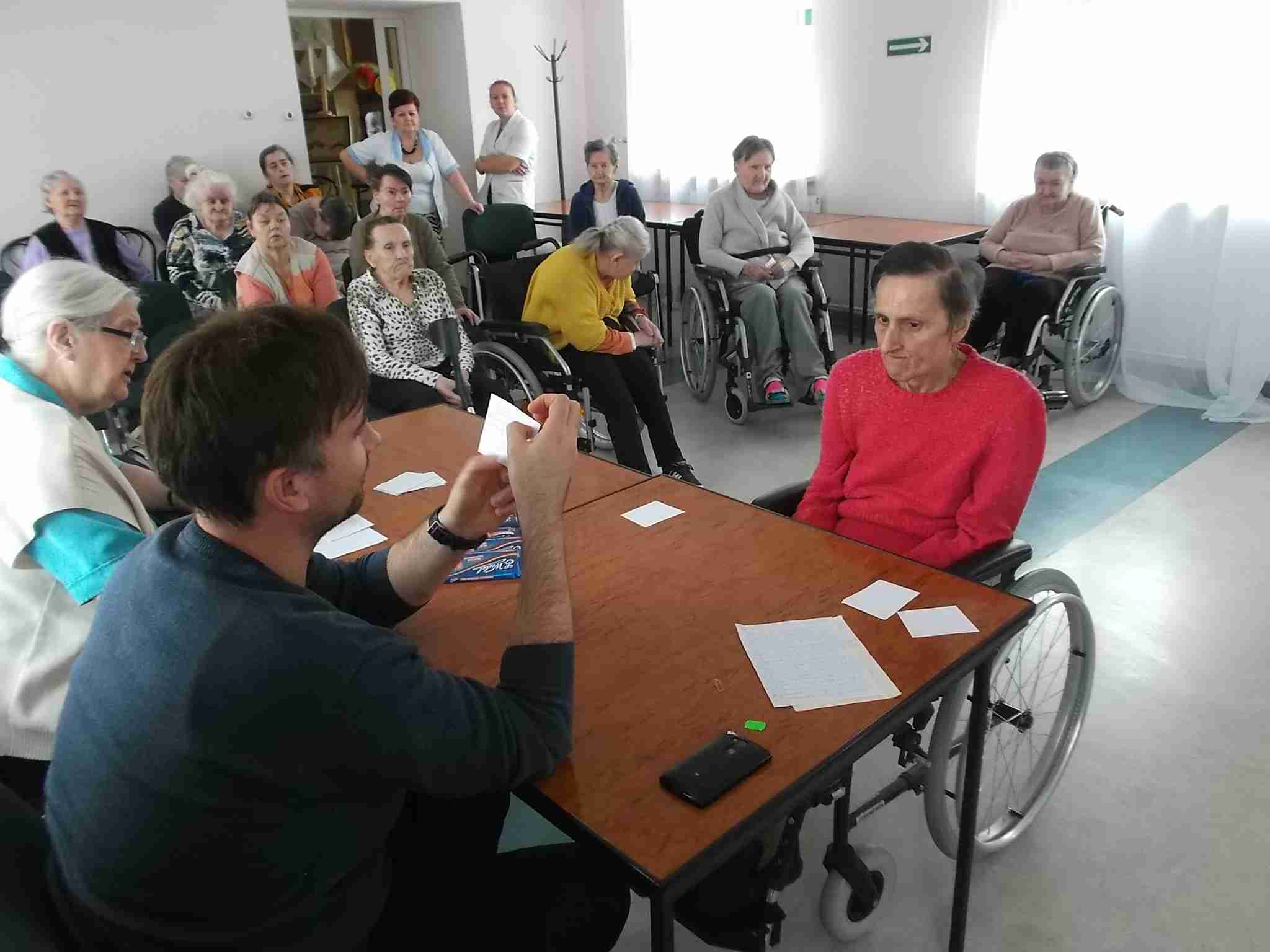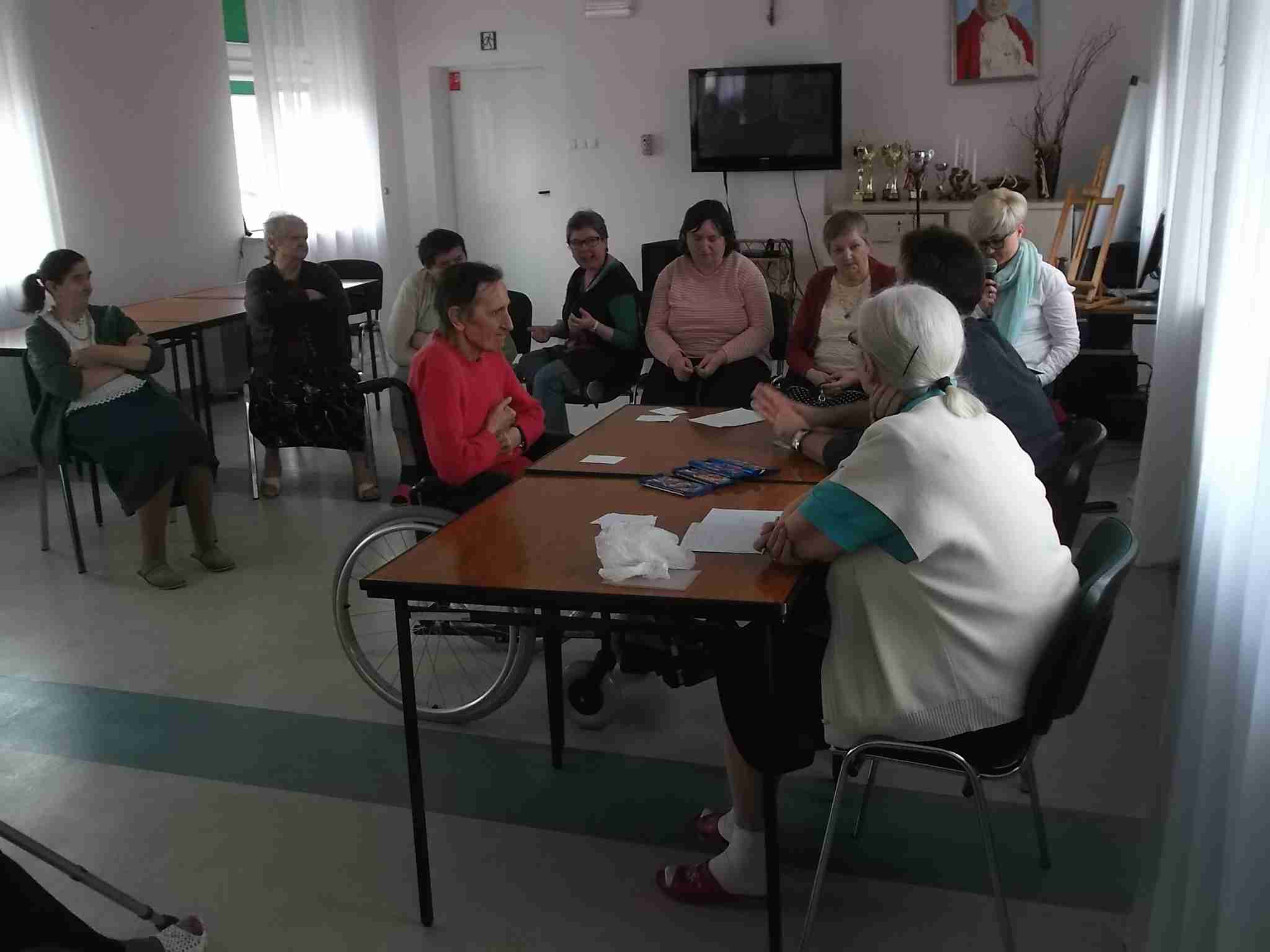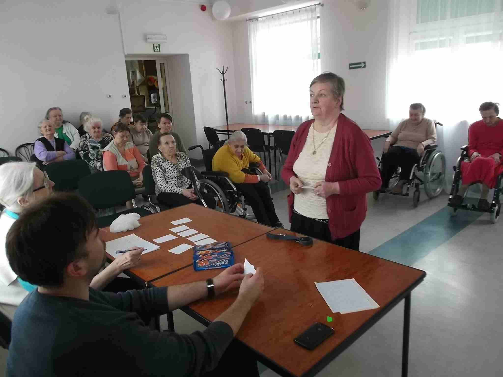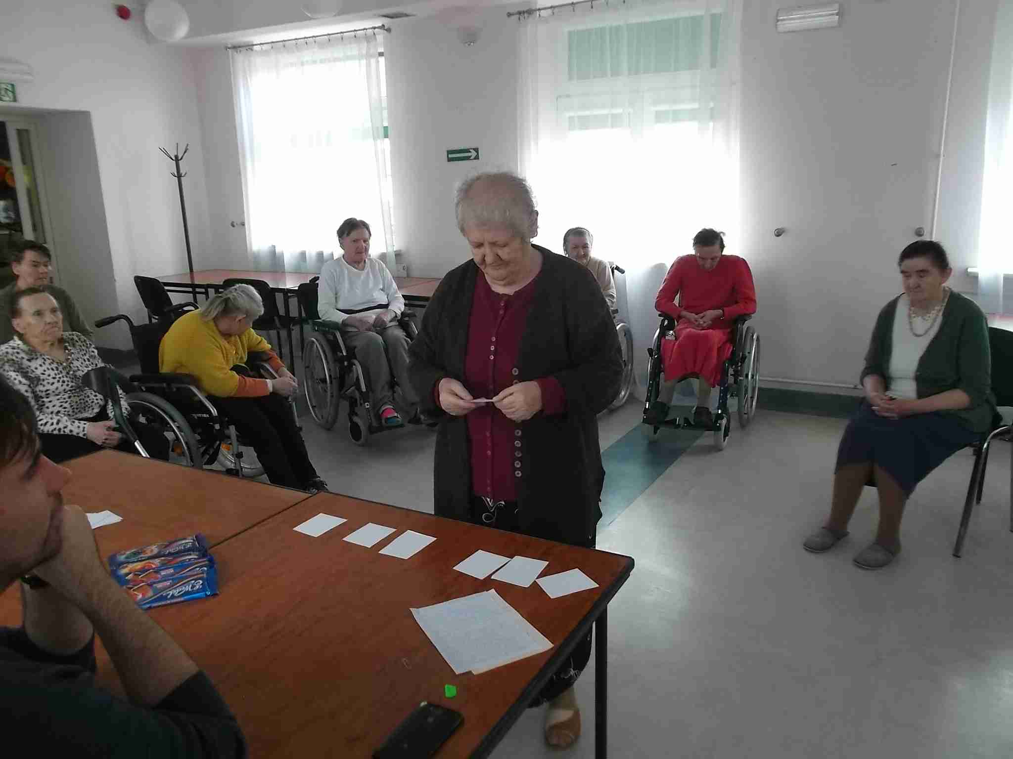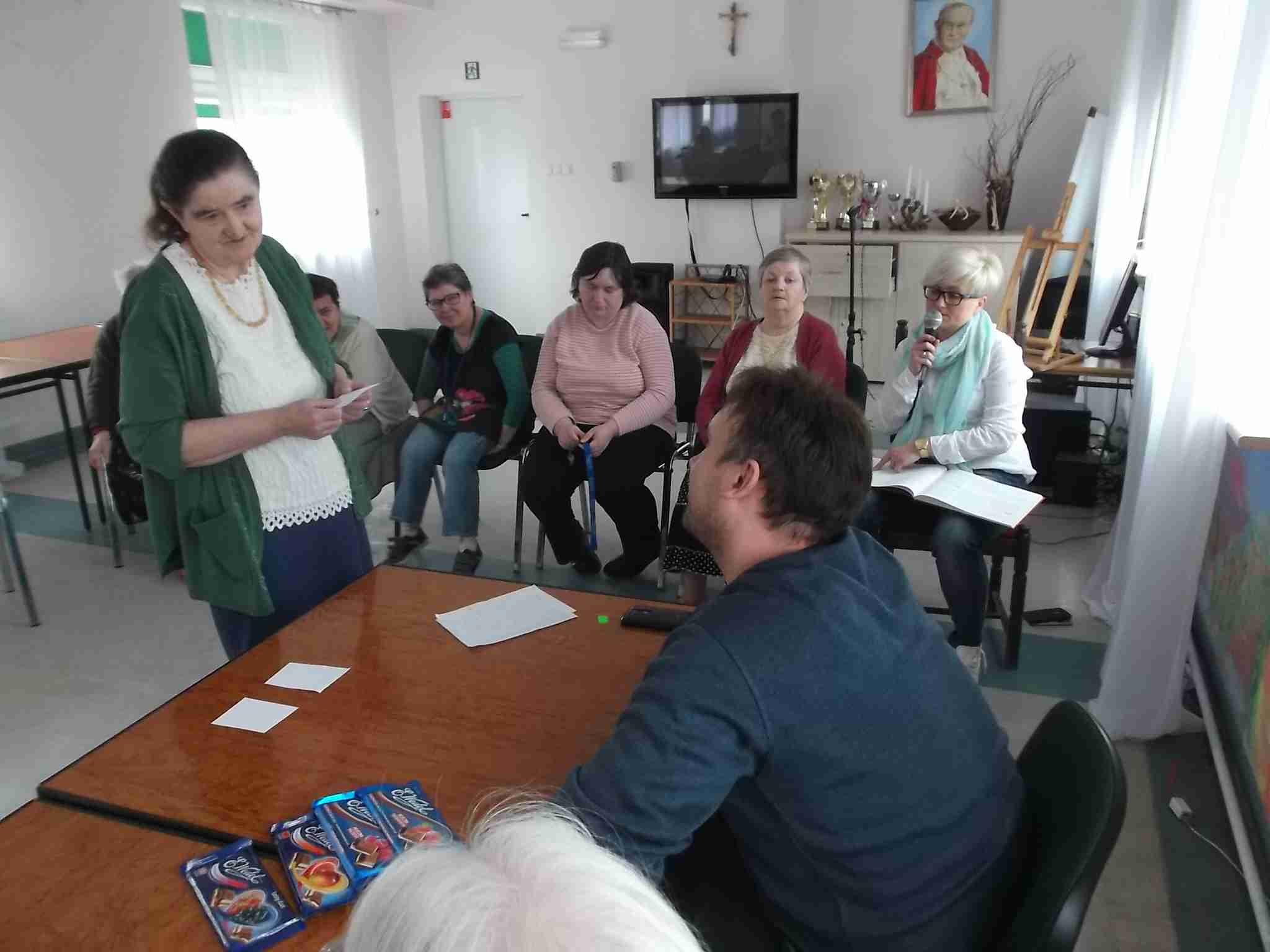 W dn. 14.04.2016 w naszym Domu odbył się drugi już konkurs znajomości Eucharystii zorganizowany przez mieszkankę M. Kwaśniewską. W prowadzeniu konkursu pomagają pracownicy – kapelan Sebastian i terapeutka Kinga. Frekwencja na spotkaniach rośnie, zarówno po stronie uczestników jak i widowni! Spośród 8 wykazujących się wiedzą mieszkanek pani Maria szczególnie wyróżniła 4 panie: Annę, Janinę, Marię i Ewę. Nagrodzone mieszkanki zostały obdarowane słodkimi upominkami!