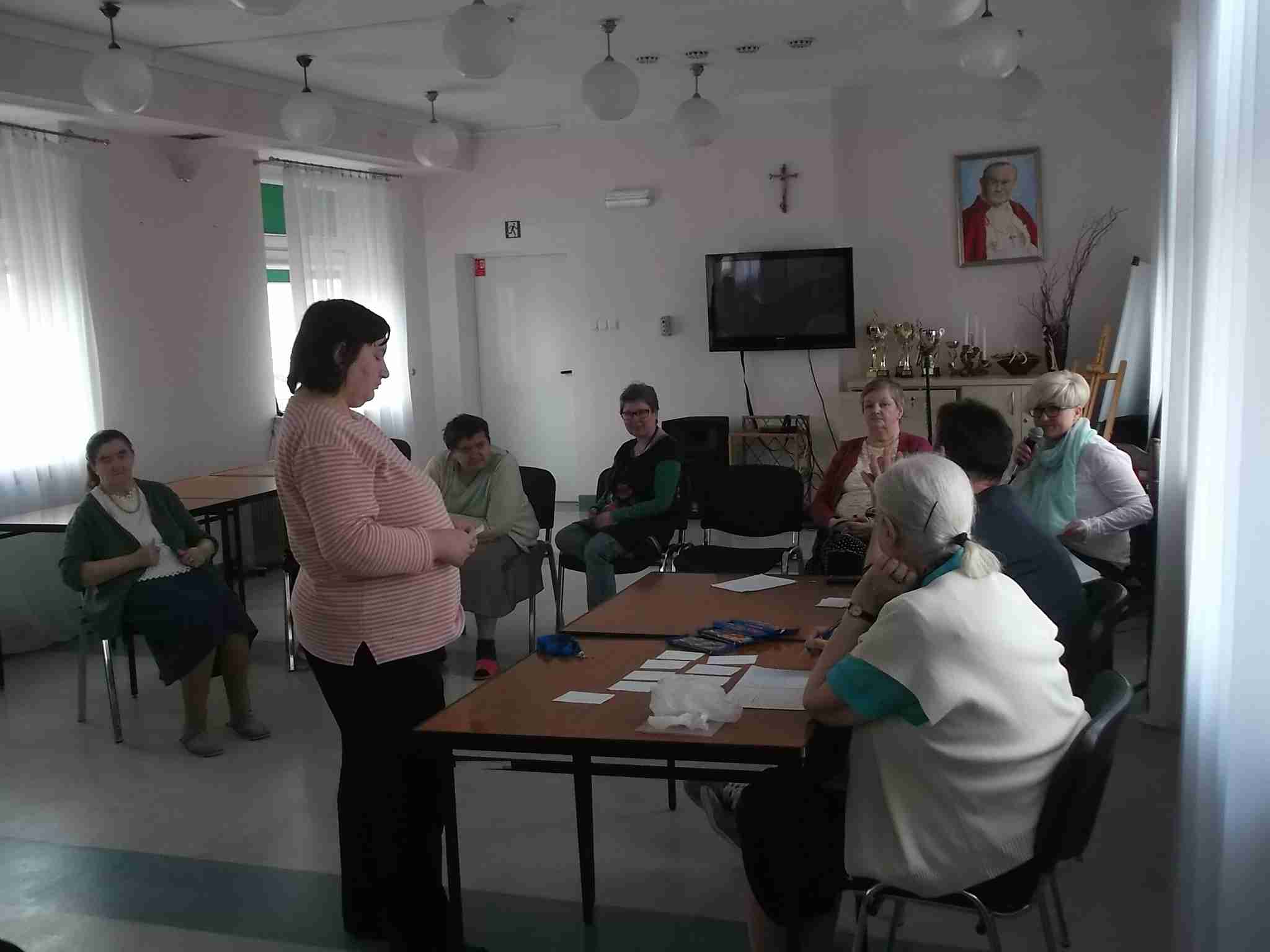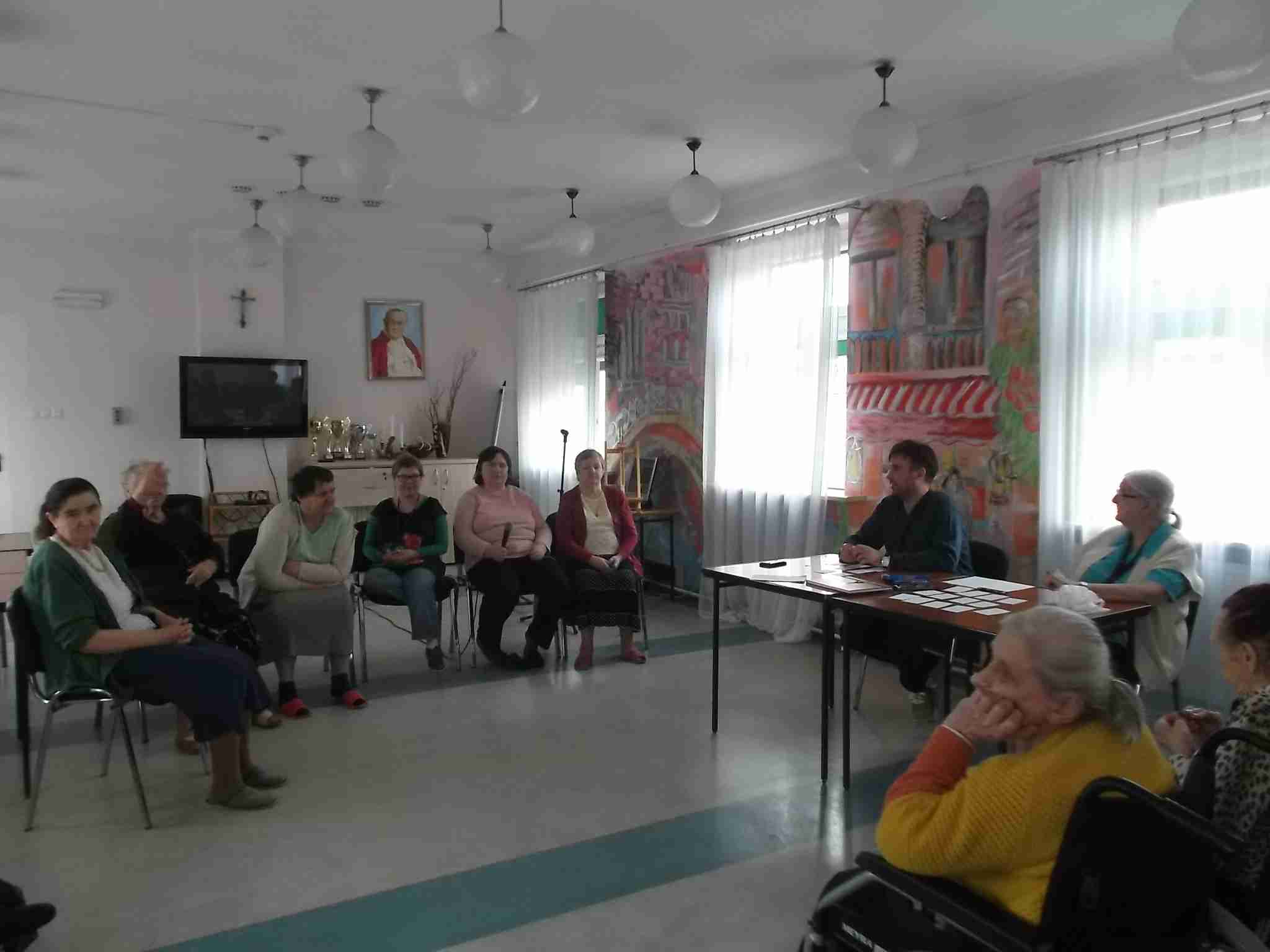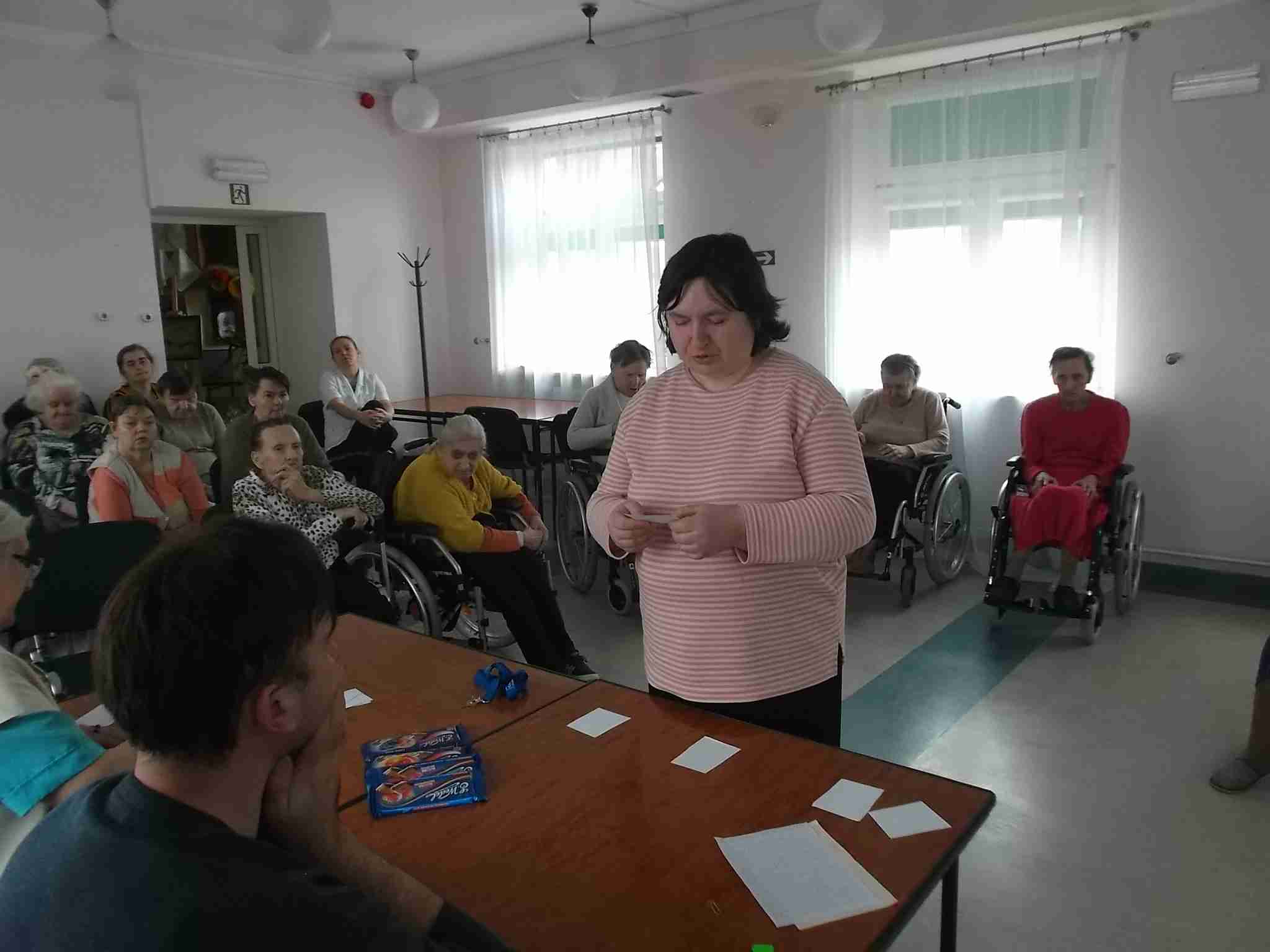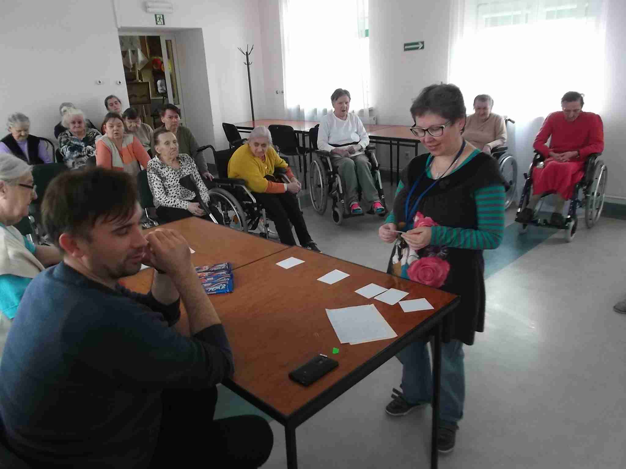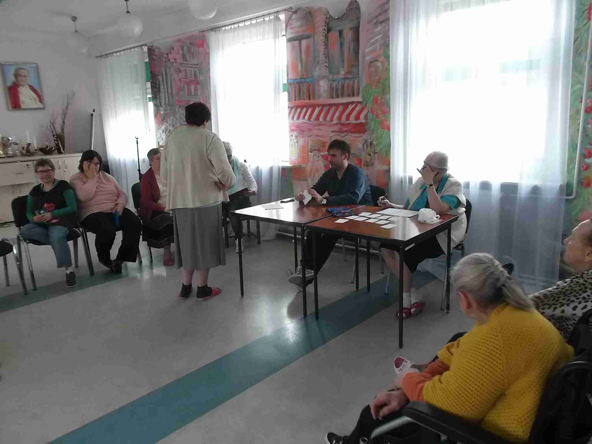 W dn. 14.04.2016 w naszym Domu odbył się drugi już konkurs znajomości Eucharystii zorganizowany przez mieszkankę M. Kwaśniewską. W prowadzeniu konkursu pomagają pracownicy – kapelan Sebastian i terapeutka Kinga. Frekwencja na spotkaniach rośnie, zarówno po stronie uczestników jak i widowni! Spośród 8 wykazujących się wiedzą mieszkanek pani Maria szczególnie wyróżniła 4 panie: Annę, Janinę, Marię i Ewę. Nagrodzone mieszkanki zostały obdarowane słodkimi upominkami!