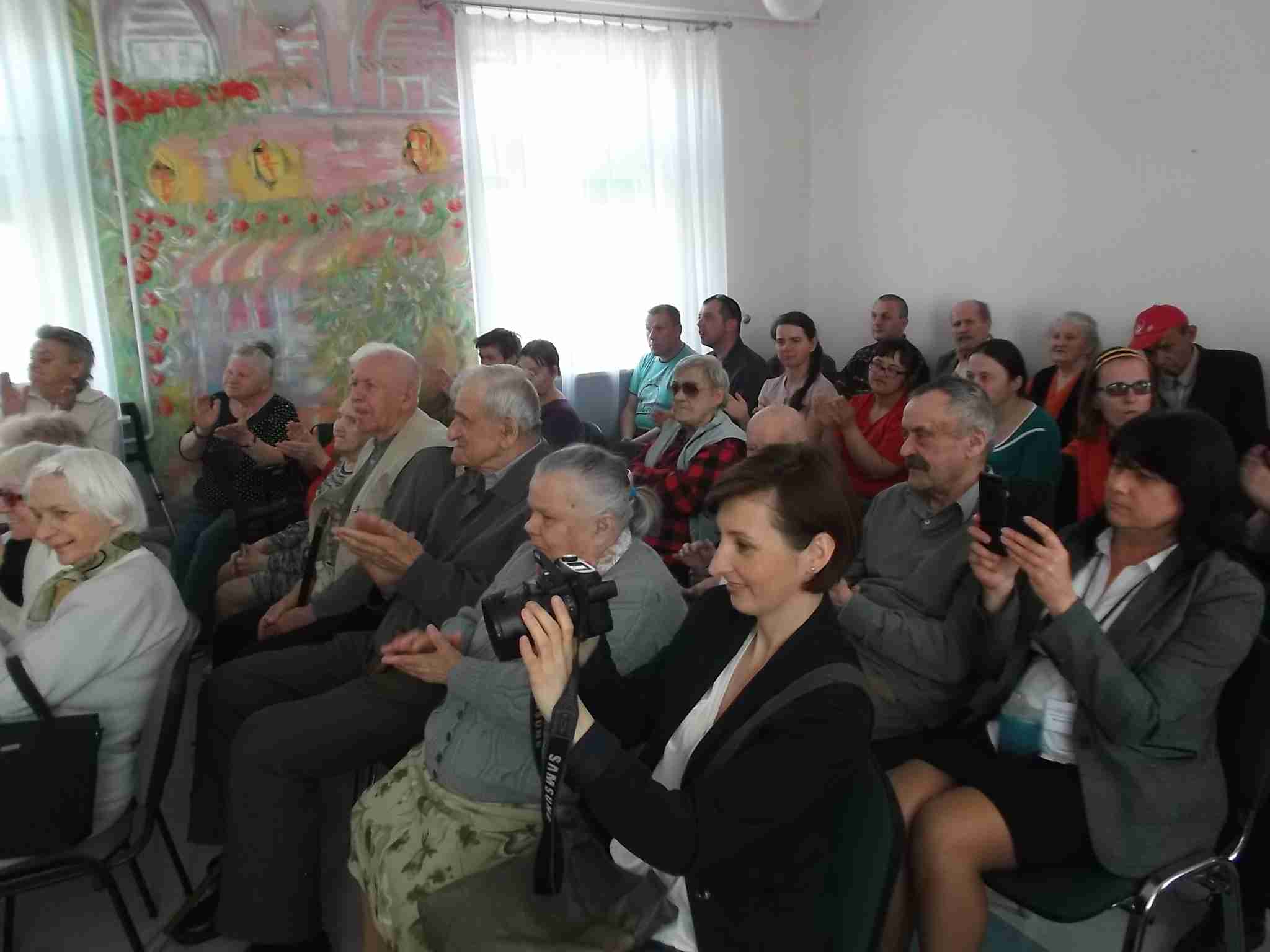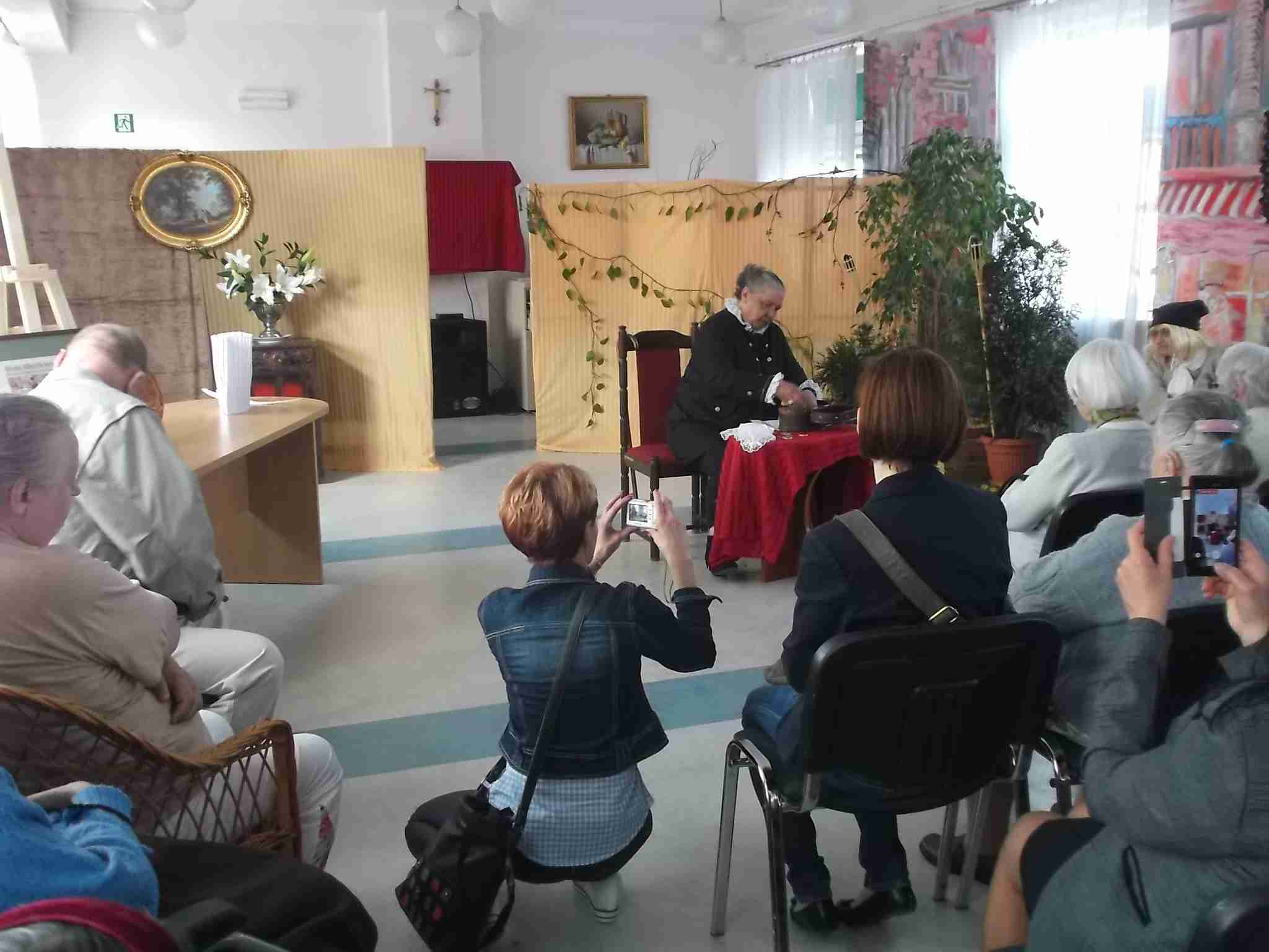Naszą Grupę Teatralną „Albercik” w dn. 12.05.2016 oglądała liczna grupa uczestników WTZ z ul. Kryształowej i mieszkańców DPS-ów: im. prof. Kępińskiego, im. Jana Pawła II oraz im. Florentyny Malskiej. Widzowie docenili starania naszych aktorek, mieszkanki odbierały komplementy i gratulacje za które serdecznie dziękujemy. Po przedstawieniu robiliśmy pamiątkowe zdjęcia.