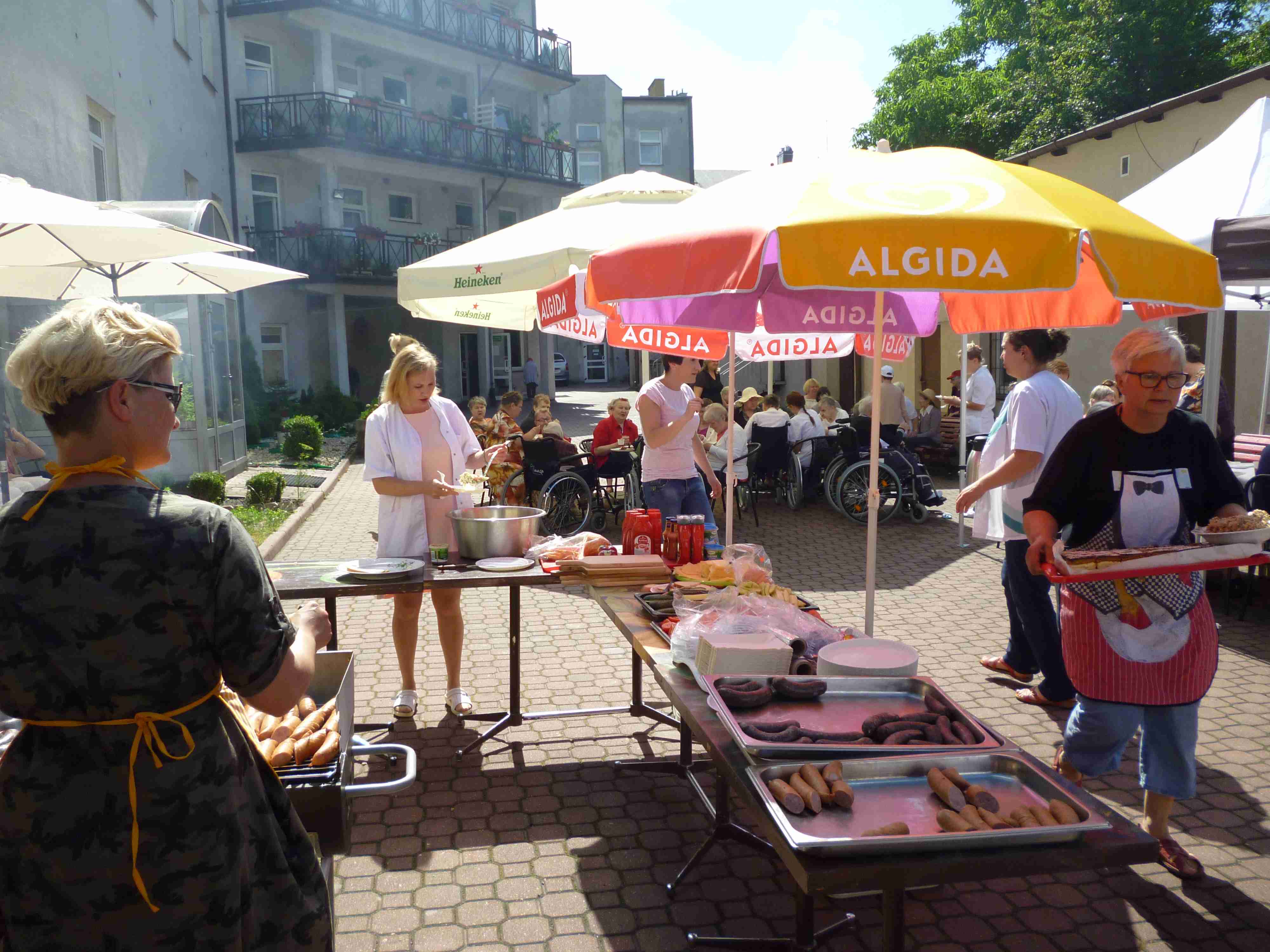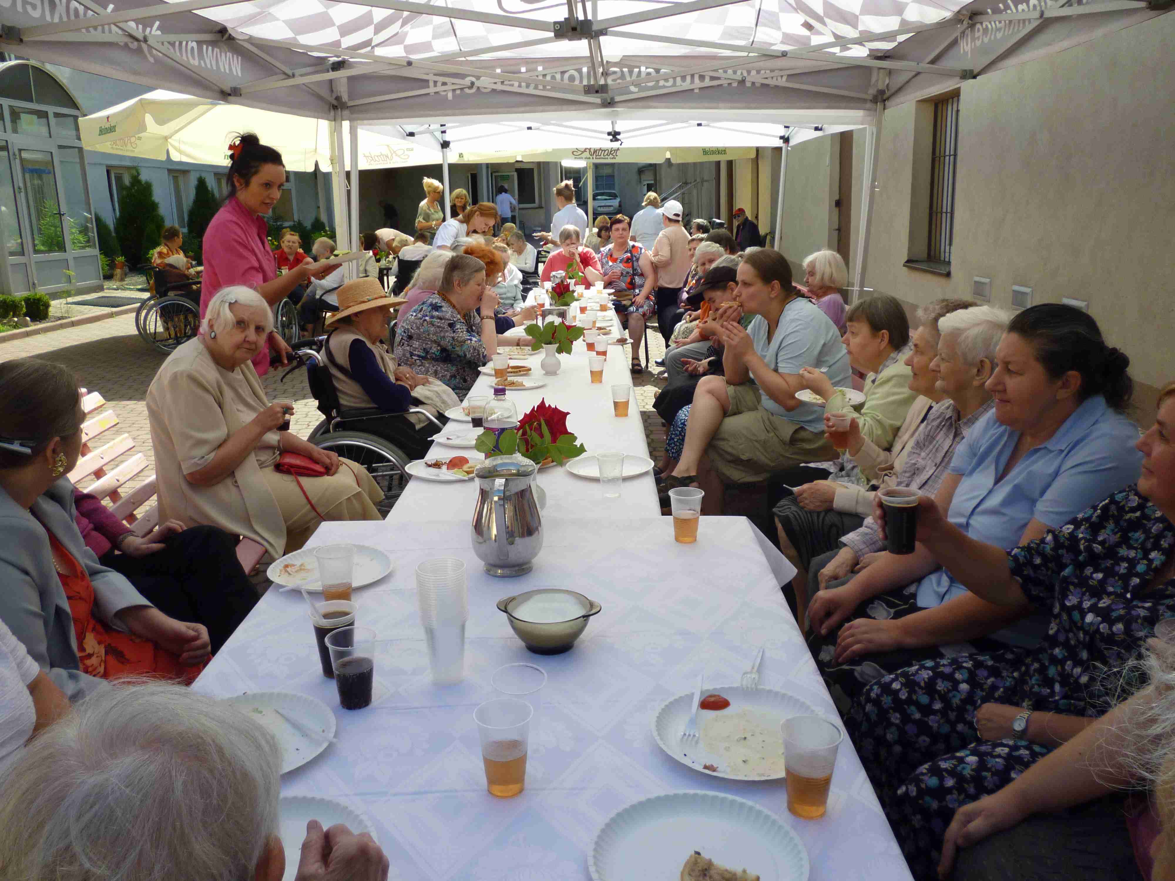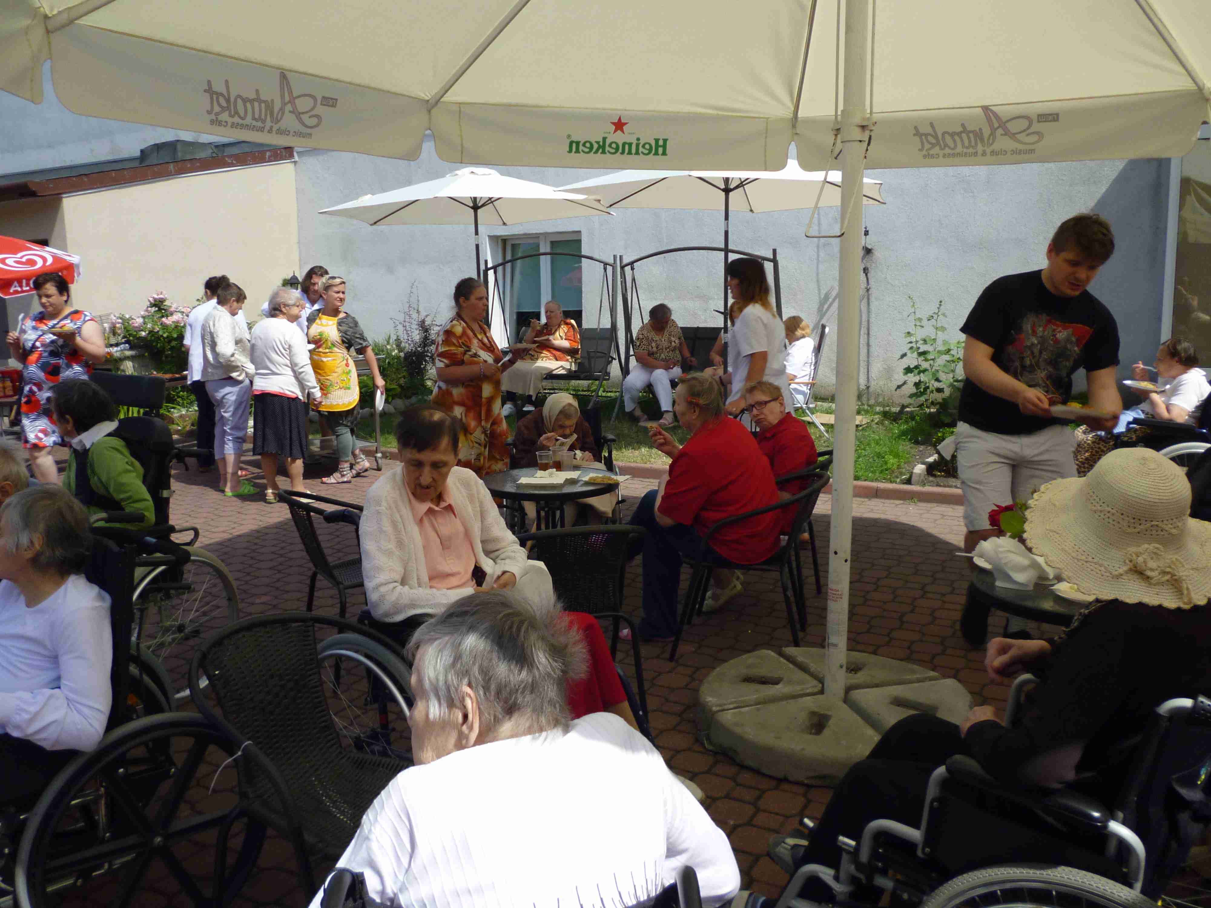 W dn. 16.06.2016 świętowaliśmy Dzień Patrona Domu – Św. Brata Alberta. Po uroczystej mszy św. w naszej kaplicy rozpoczęliśmy wspólne biesiadowanie w ogrodzie. Mieszkanki i pracownicy w tym dniu razem grillowali – kuchnia przygotowała prawdziwe, świąteczne pyszności! Poza tradycyjną kiełbaską i kaszanką mieliśmy pieczone ziemniaki, młodą kapustkę, smalec i ciasta. Szczególne podziękowania składamy kierownictwu restauracji ANTRAKT za użyczenie parasoli ogrodowych na naszą imprezę. Dzięki Wam spędziliśmy nasze święto naprawdę komfortowo!