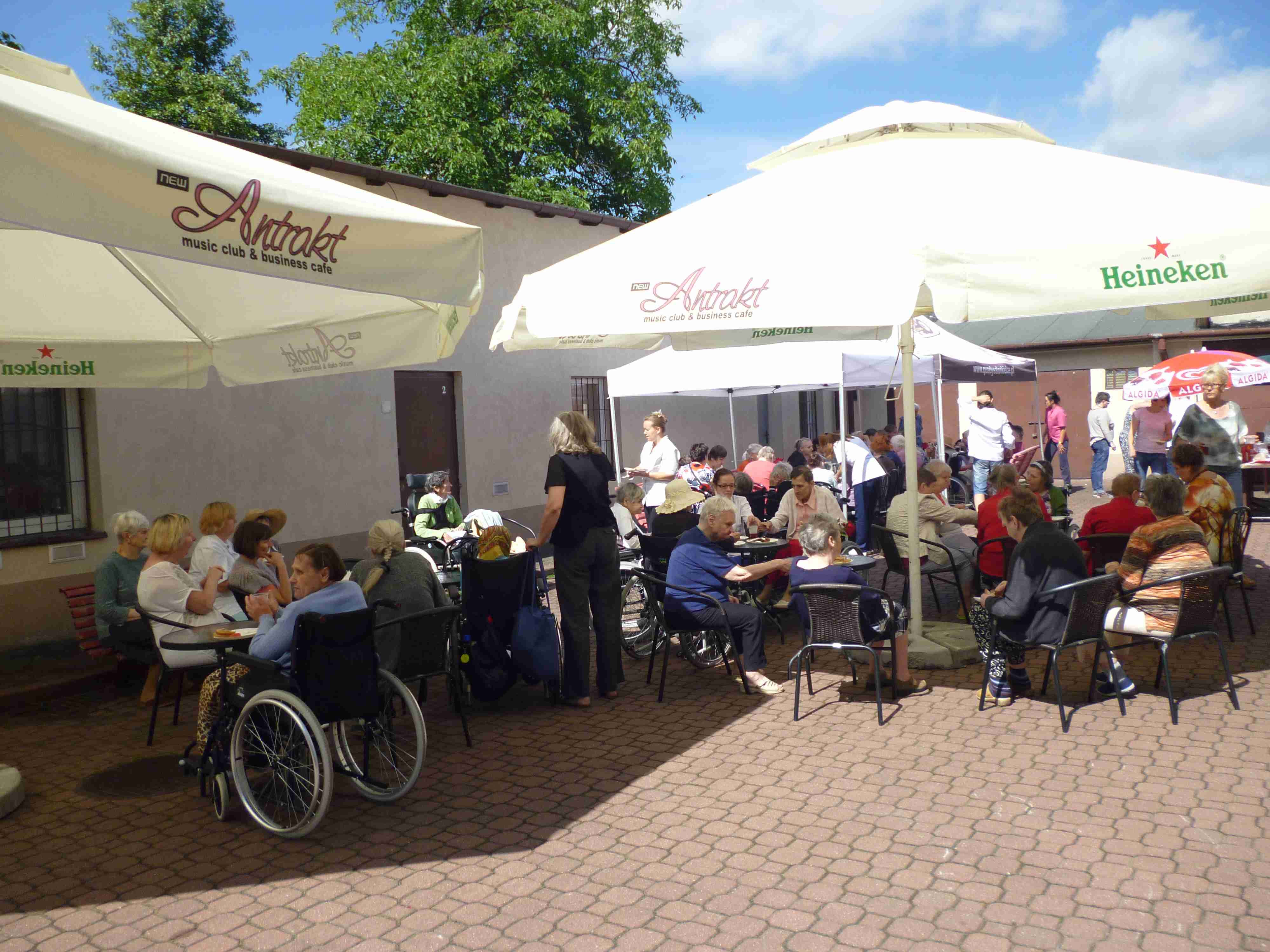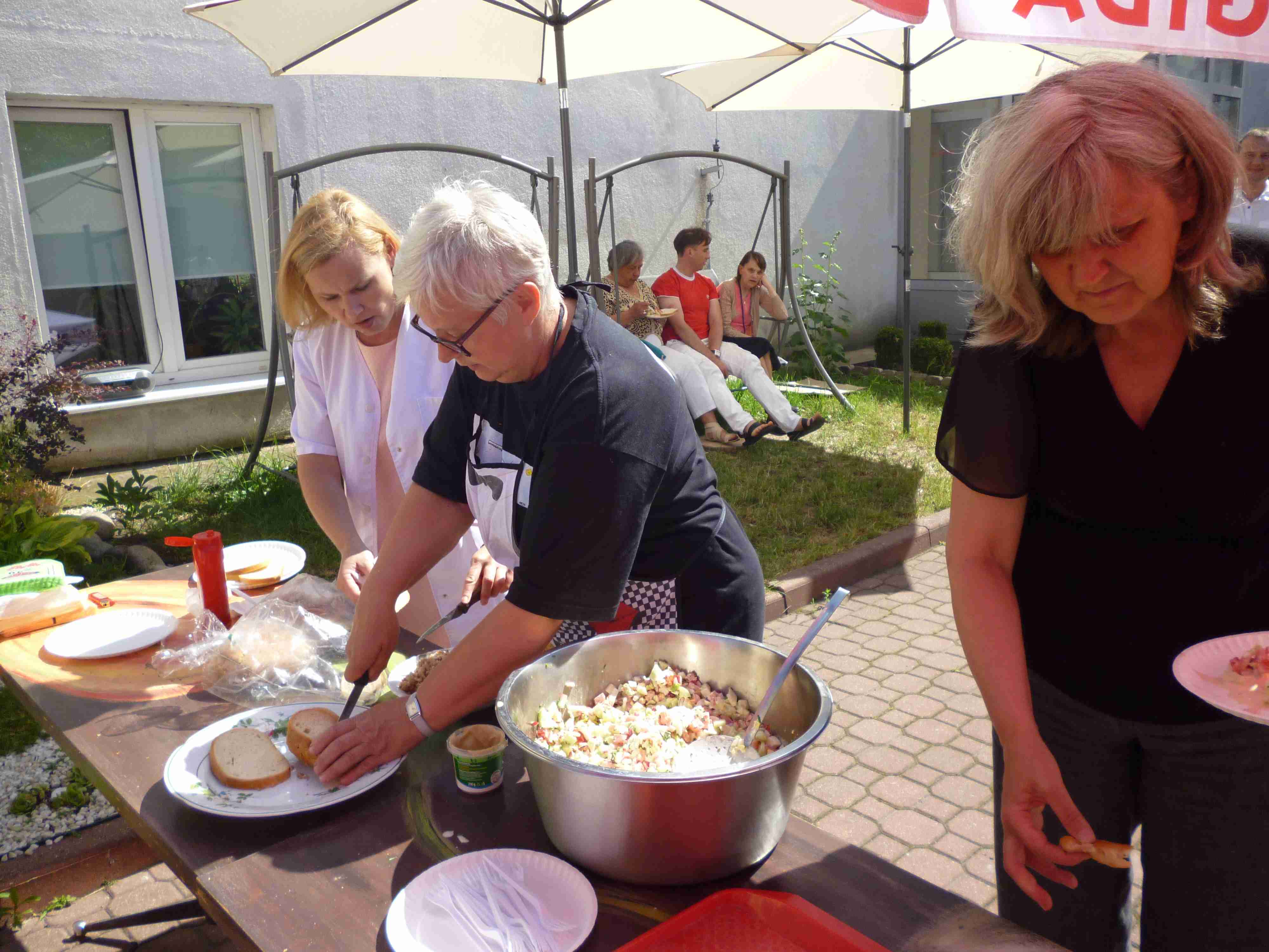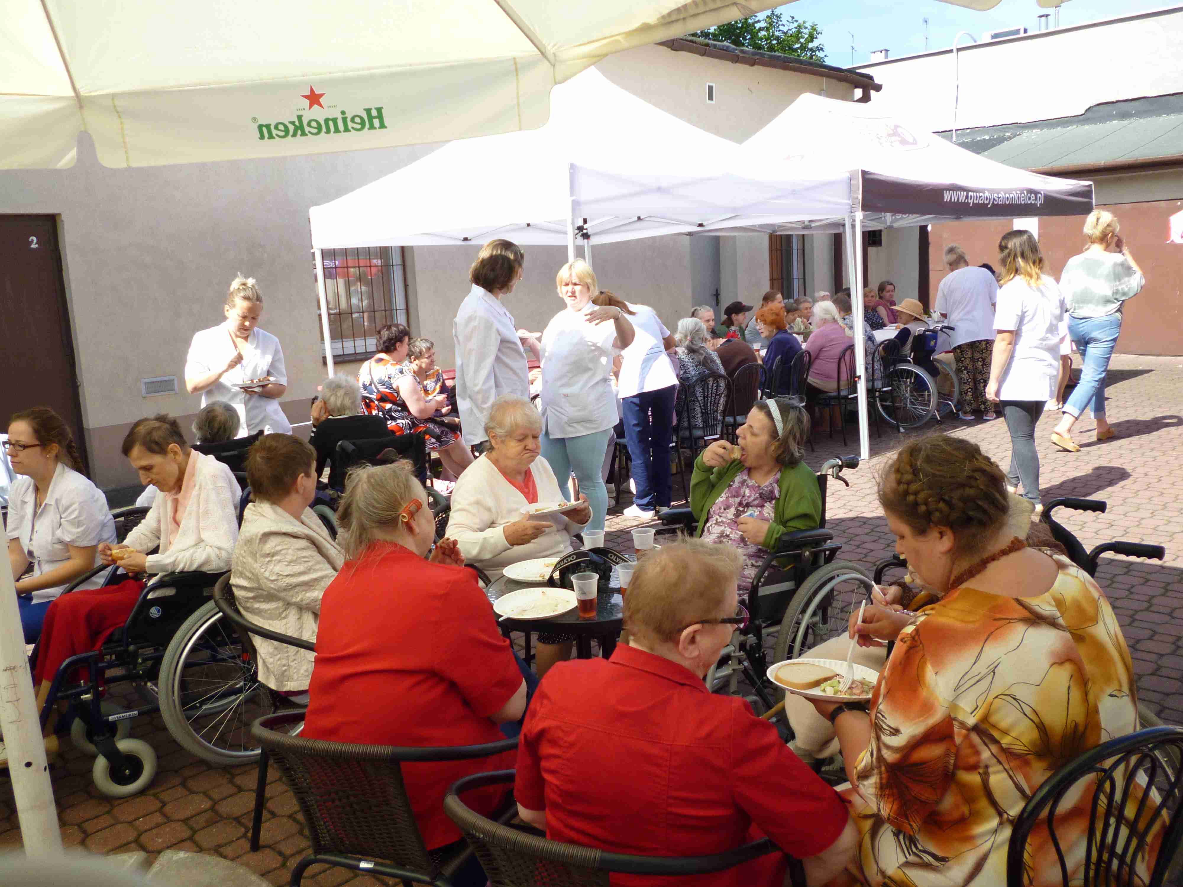 W dn. 16.06.2016 świętowaliśmy Dzień Patrona Domu – Św. Brata Alberta. Po uroczystej mszy św. w naszej kaplicy rozpoczęliśmy wspólne biesiadowanie w ogrodzie. Mieszkanki i pracownicy w tym dniu razem grillowali – kuchnia przygotowała prawdziwe, świąteczne pyszności! Poza tradycyjną kiełbaską i kaszanką mieliśmy pieczone ziemniaki, młodą kapustkę, smalec i ciasta. Szczególne podziękowania składamy kierownictwu restauracji ANTRAKT za użyczenie parasoli ogrodowych na naszą imprezę. Dzięki Wam spędziliśmy nasze święto naprawdę komfortowo!