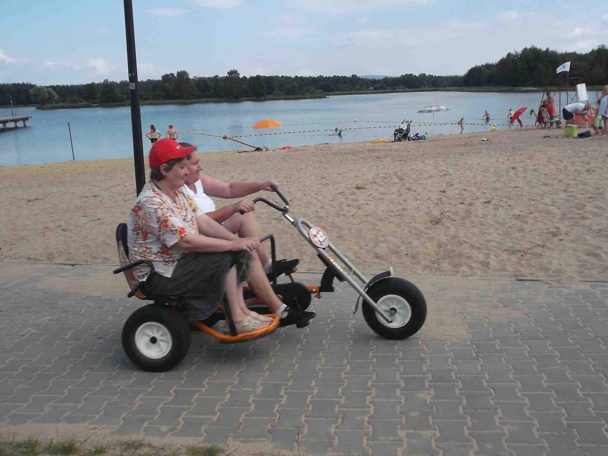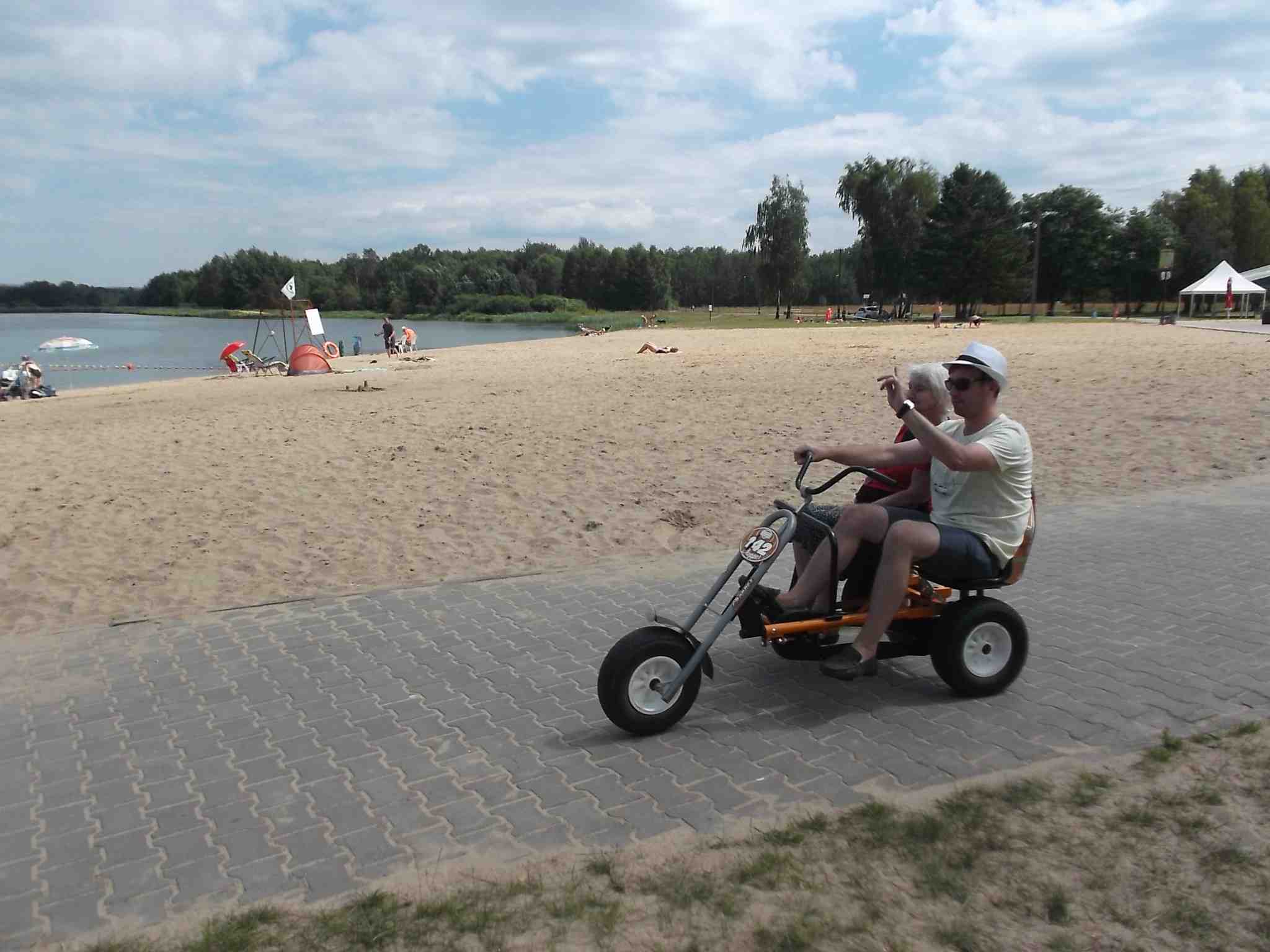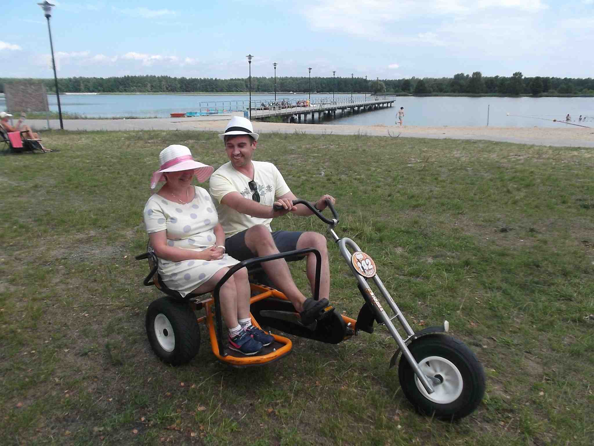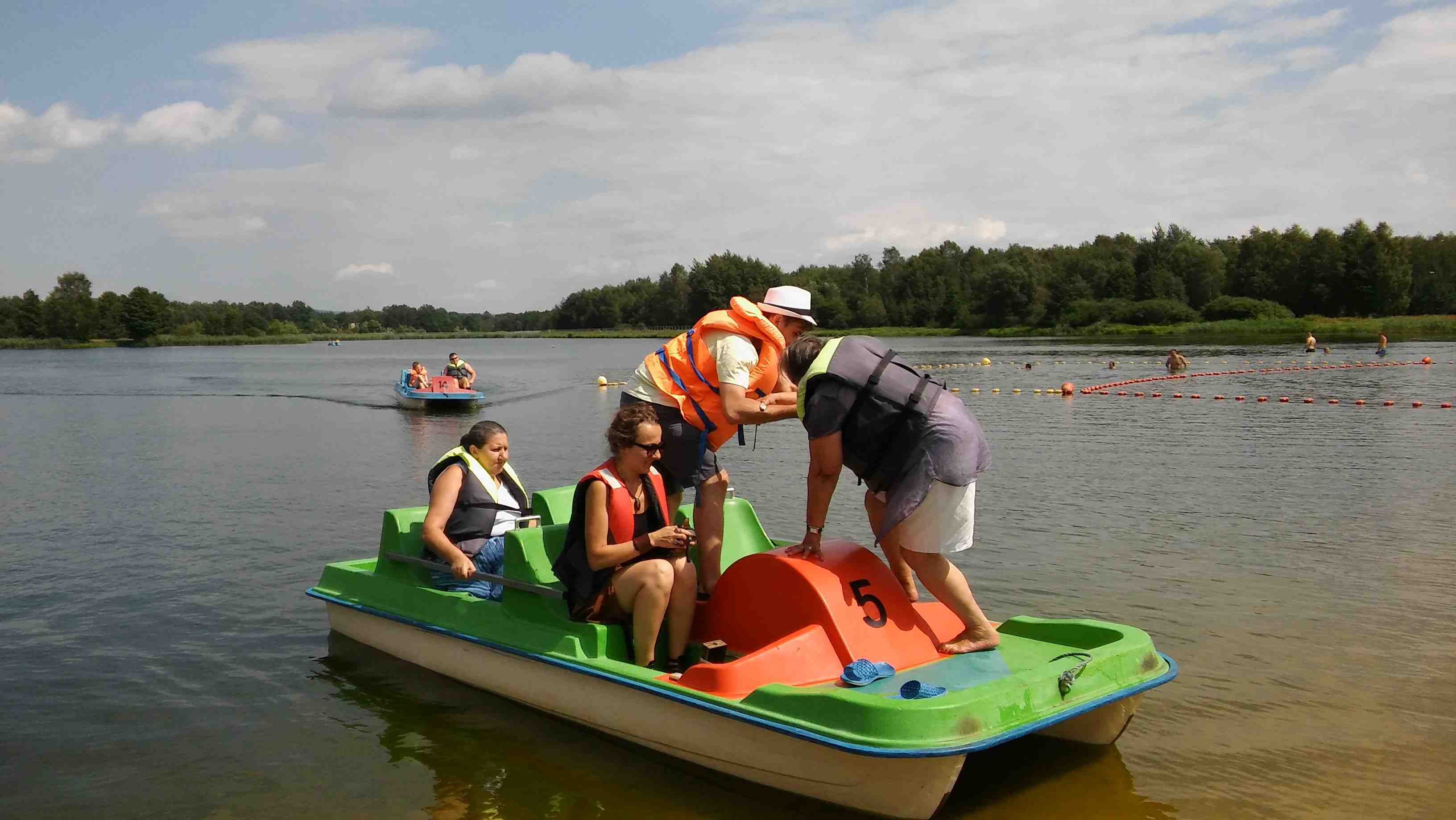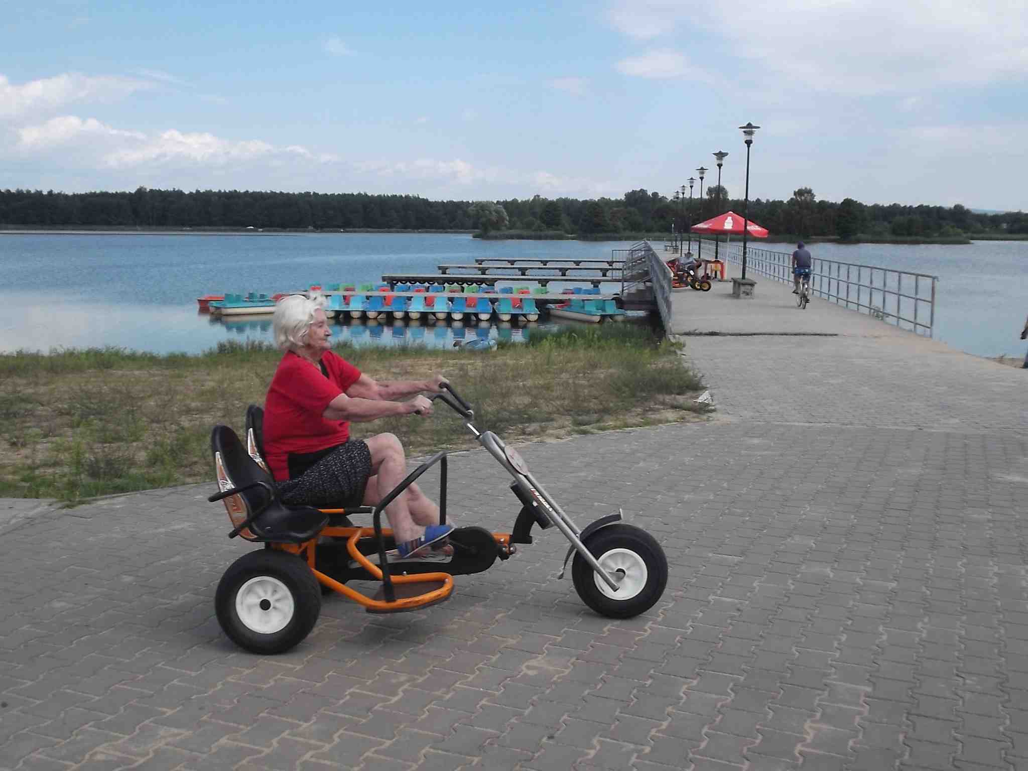 Nasz kolejny wyjazd do Borkowa obfitował w nowe atrakcje – poza gokartami, które mają już wśród naszych pań swoje zwolenniczki, pojawiły się też ochotniczki na „rejs” rowerem wodnym! Większa część grupy wybiera jednak spokojny wypoczynek – spacery i plażowanie z książką.