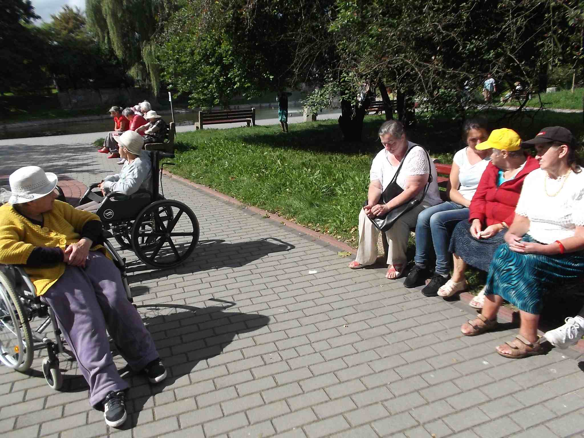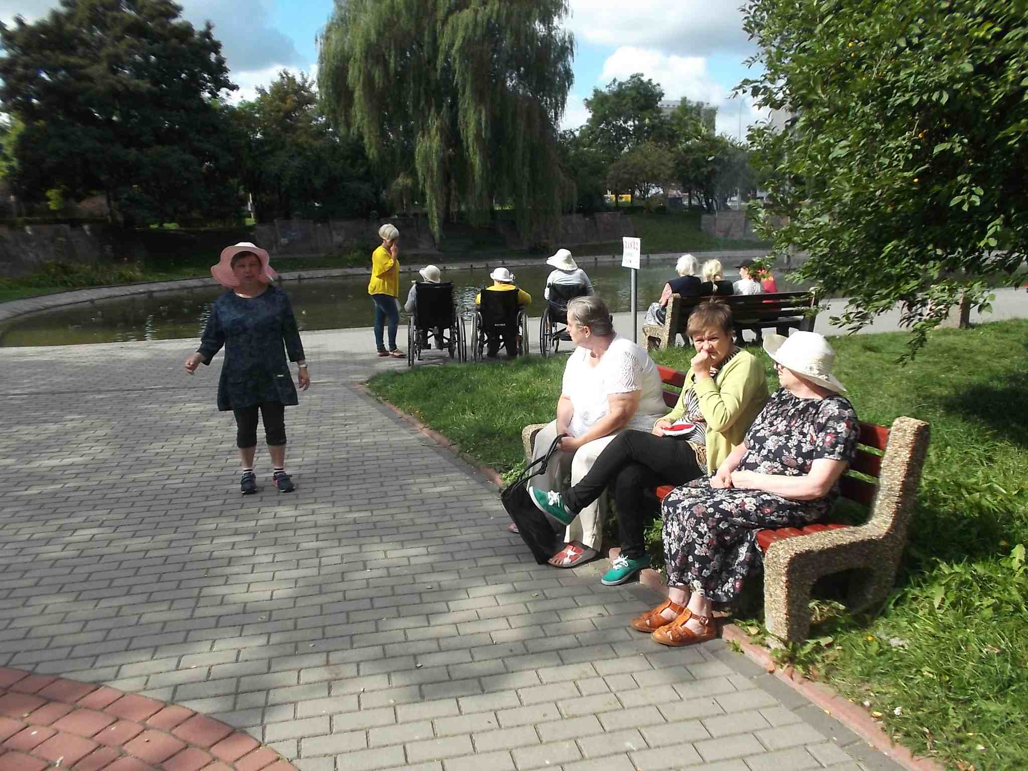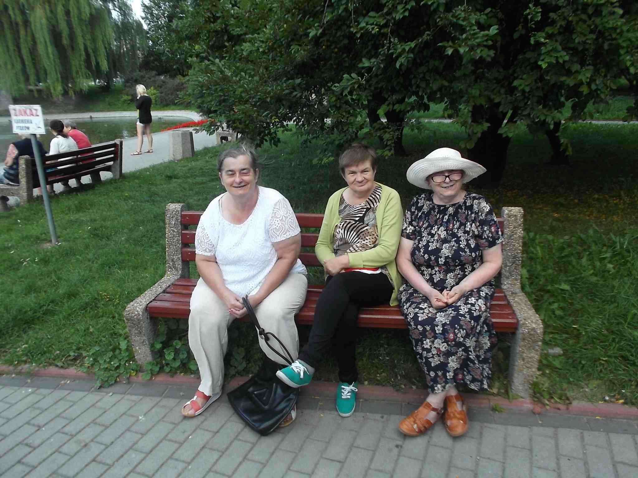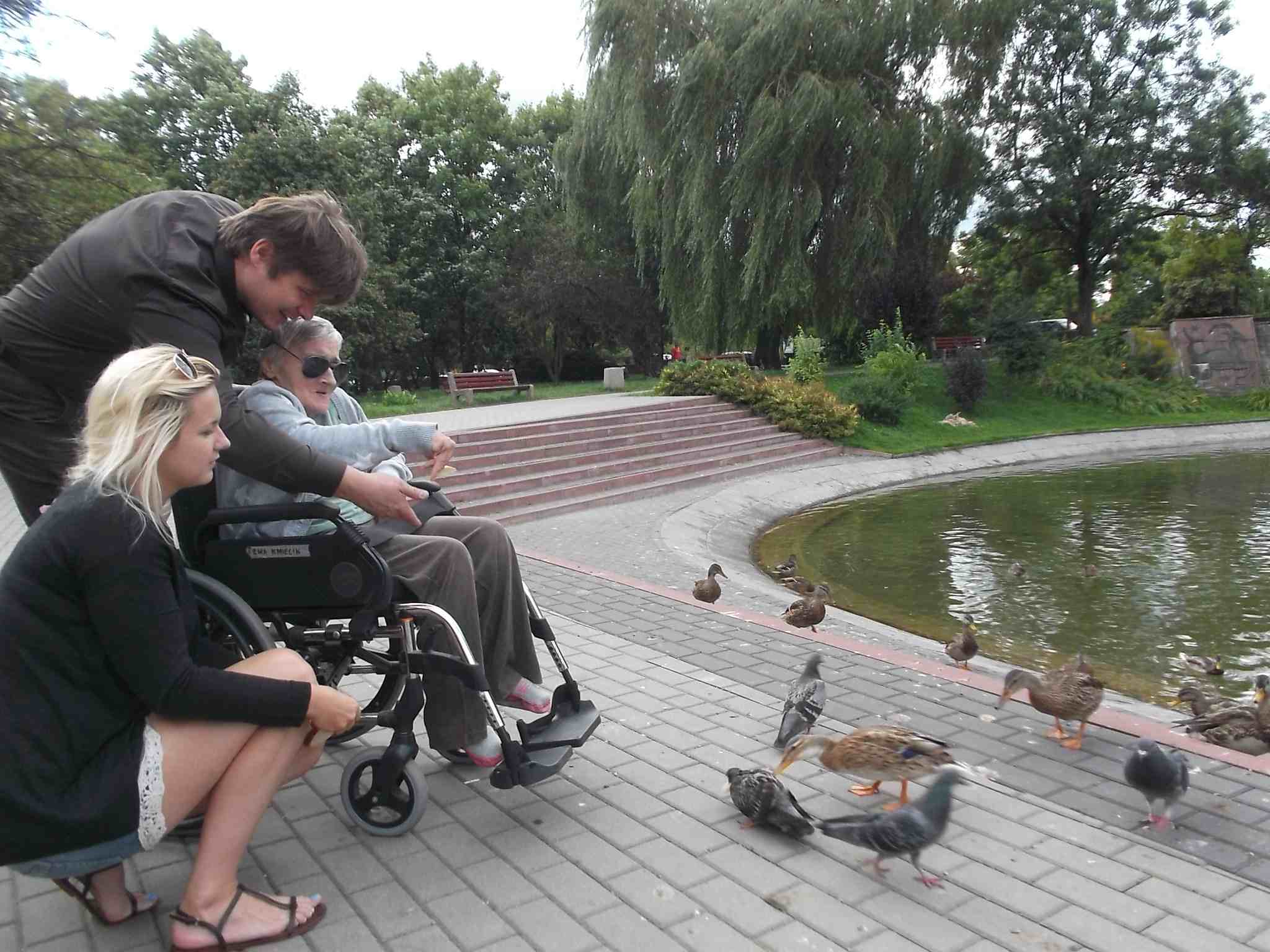 Wybraliśmy się większą grupą na skwer przy ul. Bohaterów Warszawy pokarmić kaczki przy fontannie. Mieszkanki bardzo lubią nasze wspólne spacery!